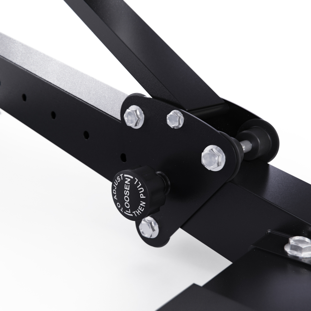 Прямая скамья для пресса предназначена для укрепления мышц пресса и спины. Встроенная рукоятка позволяет выполнять обратные скручивания Скамья регулируется по углу наклона в широком диапазоне, до 24°, включая отрицательный. Всего 6 уровней регулировки. Фиксация ног с помощью 4 удобных мягких валиков. Рама скамьи изготовлена из высококачественного стального профиля размером 50х75 и толщиной 1,5 мм. Порошковая покраска в черный цвет. Обивка скамьи из прочного кожзама и мягкой вставкой для комфортных занятий. Резиновые ножки для надежной установки на полу. Не царапают поверхность. Скамья оснащена встроенными колесами для легкого перемещения в помещении. Размер скамьи 90 х 30 х 6 см. Высота скамьи в горизонтальном положении от пола 45 см. * Высота тренажера от 78 до 108 см - по рукоятке.