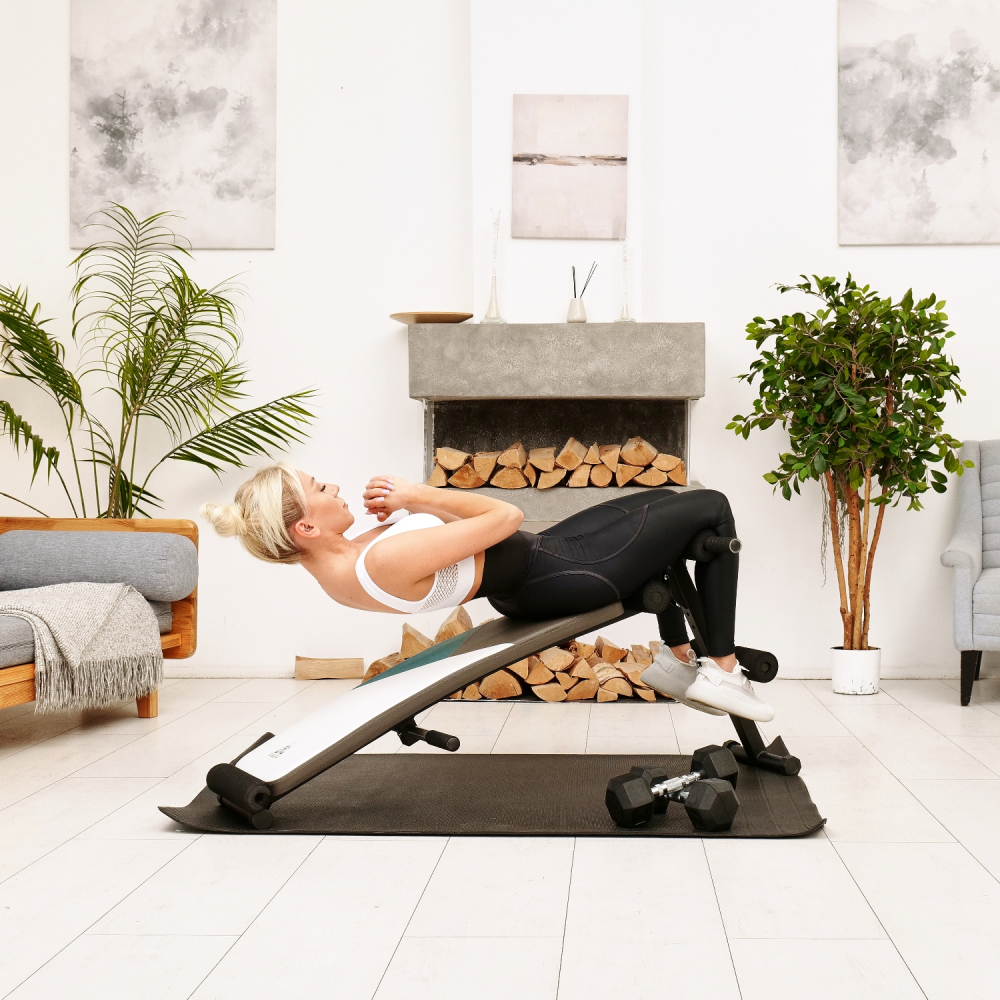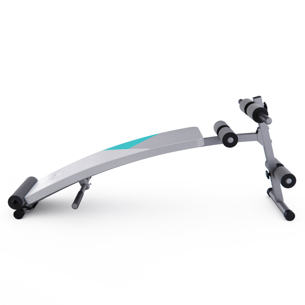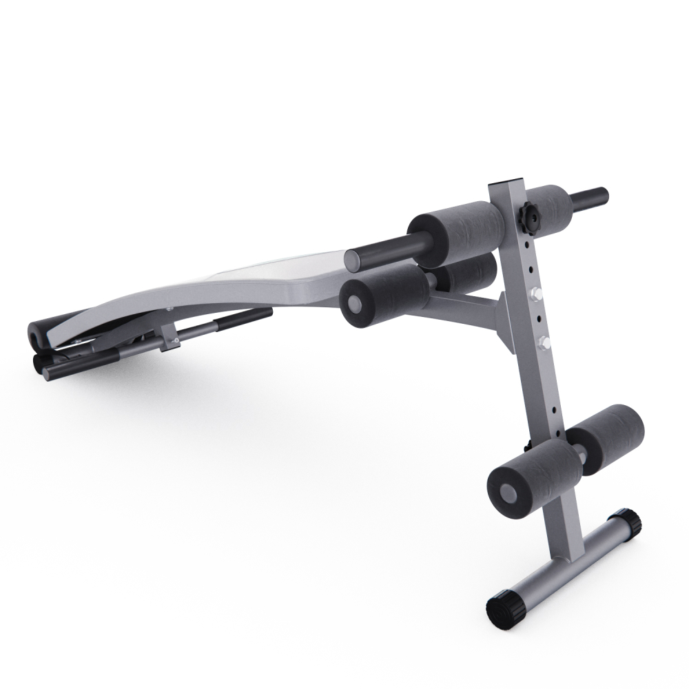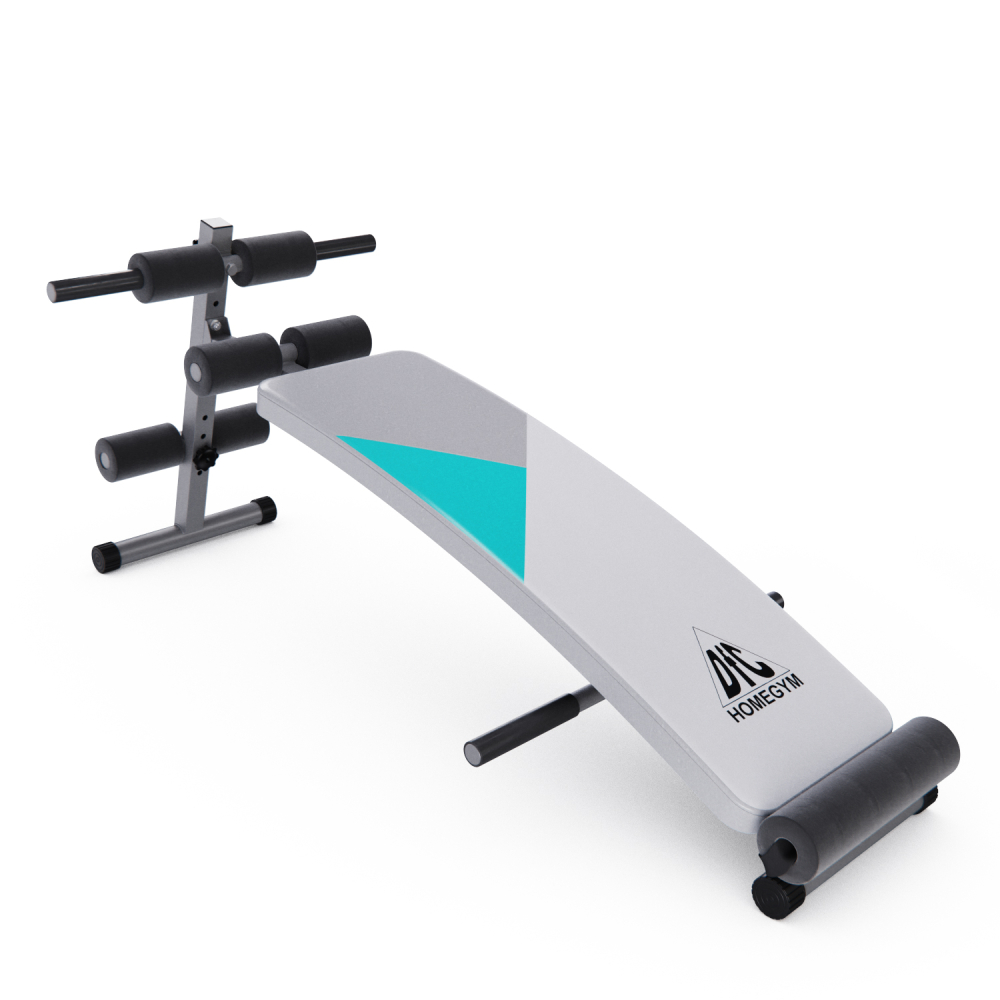 Скамья для пресса DFC. Тренажер предназначен для домашнего использования. Изогнутая поверхность. Удобные валики. Регулируемый угол наклона скамьи. В комплекте две ручки по краям тренажера для помощи в подъеме во время тренировки. Надежная стальная конструкция из профиля размером 38х38 мм. Материалы: рама - сталь, скамья - искусственная кожа (винил) Вес пользователя: до 120 кг