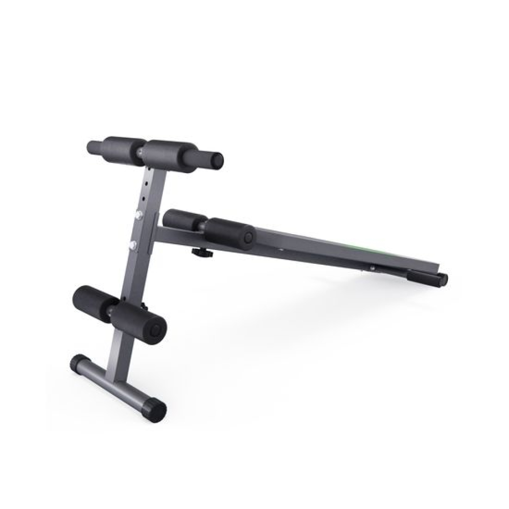 Скамья для пресса DFC DB127/2 с зеленым рисунком – надежный тренажер для домашних тренировок! Эта скамья спортивная сочетает в себе прочность, функциональность и удобство.Стальная рама из профиля 38 х 38 х 1,2 мм гарантирует прочность и устойчивость даже при интенсивных нагрузках. Максимальный вес пользователя составляет 120 кг, что делает скамью подходящей для большинства пользователей.5 уровней регулировки угла наклона скамьи для жима позволяют менять нагрузку и эффективно прорабатывать разные группы мышц. Вы можете выполнять подъемы корпуса для прокачки пресса, подъемы ног для нижнего отдела живота, а также использовать скамью для упражнений с гантелями. Эргономичные регулируемые валики из вспененного материала обеспечивают комфорт во время тренировки. Нижние валики регулируются на 4 уровня, что позволяет надежно фиксировать стопы. Дополнительные удобства включают стойку для отжиманий и упоры, расширяющие спектр упражнений.Кор-доска отличается устойчивостью благодаря прорезиненным ножкам, которые защищают пол от царапин и предотвращают скольжение. Обивка выполнена из водонепроницаемой экокожи, что облегчает уход за тренажером.