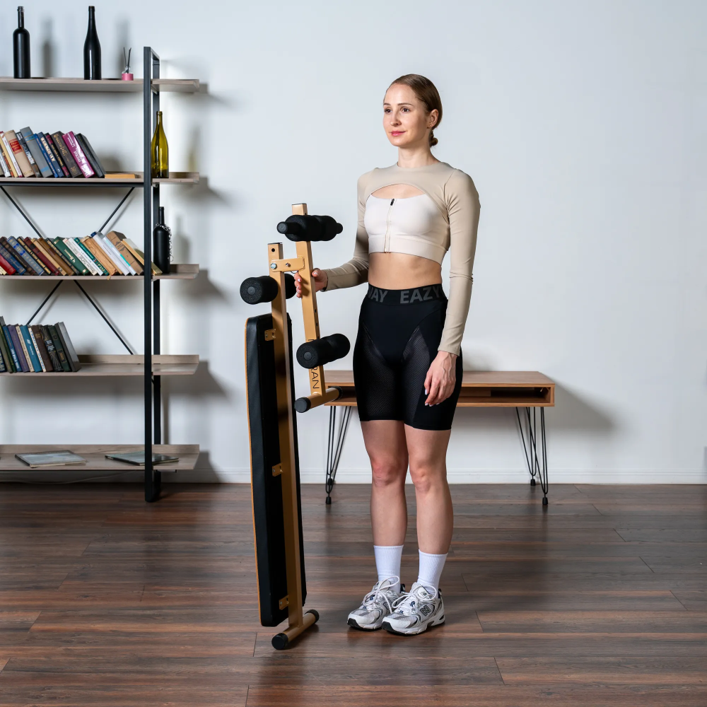 Скамья для пресса MORAN имеет складную конструкцию, что позволяет значительно сэкономить жилую площадь. Угол наклона регулируется по высоте, что делает ее незаменимой для выполнения самых разнообразных тренировок. Удобно структурированные регулируемые валики-держатели для ног обеспечивают точную стабилизацию ног, изолируя мышцы верхней части тела. Повышенный комфорт на протяжении всей тренировки обеспечивает эргономичное сиденье с поролоновой подушкой. MORAN оснащен стальной рамой размером 50*50 мм. Однослойное покрытие устойчиво к воде и коррозии. Выдерживает максимальный вес пользователя до 150 кг.