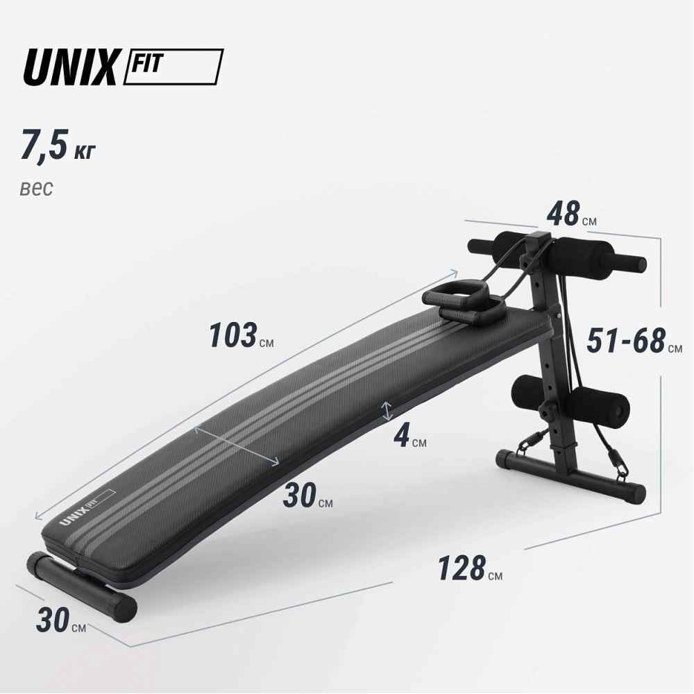 Скамья для пресса UNIX Fit SIT-UP 140 — это необходимый тренажер для тех, кто хочет улучшить свою физическую форму и сформировать красивый пресс. Он позволяет работать над мышцами живота, боковыми мышцами и областью талии, что делает его идеальным для тех, кто хочет получить рельефный пресс. Тренажер для пресса изогнутой формы с 2 эспандерами оснащен удобным сиденьем и подушкой для спины, что обеспечивает комфортную работу в течение длительного времени. Она также имеет 5 регулировок угла наклона, что позволяет настраивать интенсивность тренировки в зависимости от вашего уровня подготовки. Благодаря дополнительным упорам, тренажер можно использовать как скамью для отжиманий. Скамья для пресса и спины с мягкими валиками 128 х 47,5 см занимает мало места, что делает ее идеальным выбором для домашнего использования. Прорезиненные антискользящие ножки гарантируют устойчивость и неподвижность тренажёра во время упражнений, а также защищает напольное покрытие от царапин. Прочная стальная рама обеспечивает безопасность во время занятий, а износостойкая обивка и упругий поролон гарантируют долговечность и комфорт. Если вы хотите получить рельефный пресс и улучшить физическую форму, то доска для пресса — это идеальный выбор для вас. Тренируйтесь с удовольствием и с UNIX Fit! .