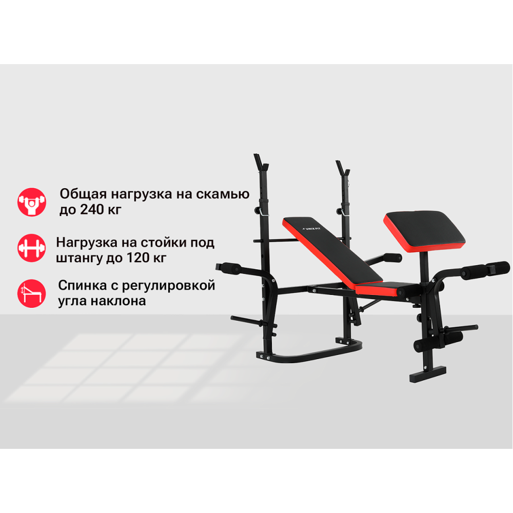 Технические характеристики Скамья силовая со стойками UNIX Fit BENCH 120P
