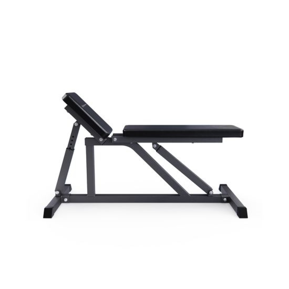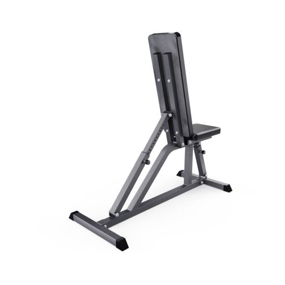Скамья силовая для жима DFC GYRONETICS GN006 — это идеальное решение для тех, кто хочет организовать полноценный тренажерный зал у себя дома. Этот надежный и многофункциональный домашний тренажер предназначен для выполнения различных упражнений, направленных на развитие грудных мышц, спины, плеч, пресса и бедер. Скамья универсальная, подходит как для новичков, так и для опытных атлетов, обеспечивая комфорт и безопасность во время тренировок.Скамья для жима лежа способна выдерживать максимальную статичную нагрузку до 280 кг, что делает её надежным и безопасным выбором для тренировок. Скамья изготовлена из легированной стали, обеспечивая высокую прочность и долговечность. Профили рамы размером 45 х 45 х 1,5 мм и 38 х 35 х 1,2 мм гарантируют, что скамья будет оставаться стабильной даже при максимальных нагрузках.Обивка спортивной скамьи изготовлена из высококачественной эко-кожи, что обеспечивает максимальный комфорт даже во время силовых тренировок с большим весом, позволяет снизить мышечную усталость и обеспечивает отличную поддержку. Кроме того, обивочные чехлы водо- и потоотталкивающие.Скамья спортивная имеет 8 уровней регулировки спинки и 3 уровня регулировки сиденья, чтобы быстро преобразовать ее для тренировки в прямое или наклонное положение. Высота от сиденья до пола равна 46 см.Нескользящие ножки скамьи для фитнеса обеспечивают прочное и устойчивое сцепление. Они оснащены черными резиновыми торцевыми заглушками. Помимо надежной подставки, они также защищают пол и предотвращают повреждения.