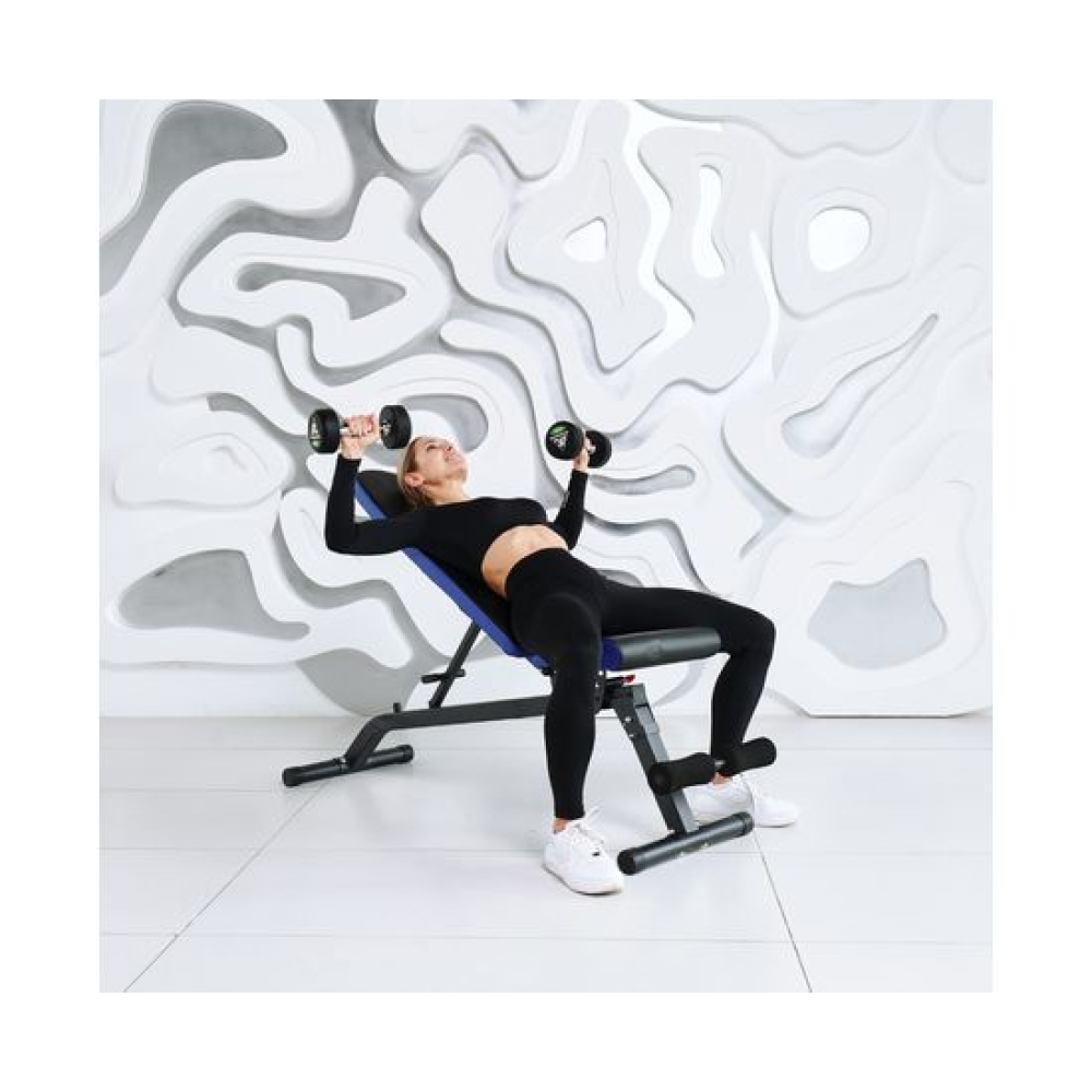 Скамья силовая универсальная DFC Pro Fitness – идеальный выбор для тех, кто стремится к развитию силы и выносливости. Это многофункциональное оборудование, которое обеспечивает комфорт и безопасность во время тренировок.Максимальная нагрузка на скамью составляет 180 кг. Благодаря складной конструкции, скамья не займет много места при хранении .Одним из главных преимуществ скамьи Pro Fitness является возможность регулировки сиденья и спинки, доступен отрицательный угол наклона. Угол наклона сиденья можно настроить на 3 разных уровня от 0 до 35°, а угол наклона спинки – на целых 5 уровней от -20 до 90°! Это позволяет подобрать наиболее удобное и эффективное положение для выполнения различных упражнений.С помощью скамьи Pro Fitness можно выполнять множество различных упражнений, направленных на развитие мышц верхней и нижней части тела. Упражнения на пресс, отжимания, приседания, при наличии снарядов - тяга гантелей и штанги, жим лежа – вот лишь некоторые из них.