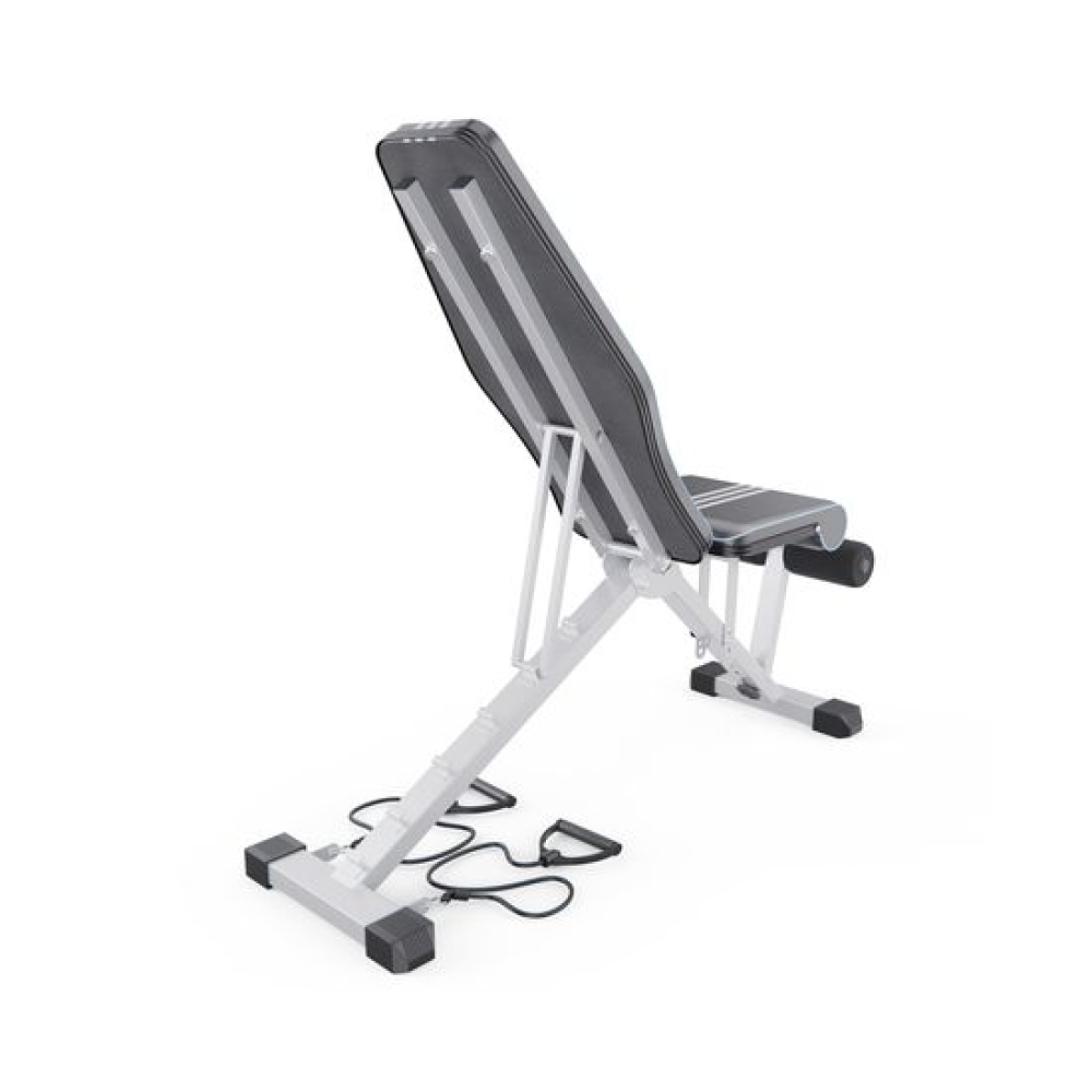 Скамья силовая универсальная DFC DT029 с эспандерами – это складная силовая скамья, которая подходит для широкого спектра упражнений и станет отличным решением для домашнего фитнеса. Конструкция рассчитана на пользователей весом до 110 кг и обеспечивает надежную поддержку во время тренировок.Скамья оснащена 8 уровнями регулировки угла наклона спинки, в том числе с отрицательным углом, что позволяет выполнять как силовые упражнения, так и упражнения для пресса и растяжку. Сиденье регулируется в 4 положениях, а мягкие валики для фиксации ног из вспененного материала имеют 4 уровня регулировки, что делает тренировки удобными для людей разного роста.Мягкие валики из вспененного материала обеспечивают комфорт и надежную фиксацию ног, а устойчивая рама гарантирует безопасность даже при интенсивных занятиях. В комплект входят эспандеры, которые позволяют добавить нагрузку на мышцы рук, плеч и груди, делая ваши тренировки более функциональными.Скамья легко складывается, что позволяет экономить место в доме или квартире. Вы сможете хранить ее вертикально или под кроватью, быстро раскладывая перед каждой тренировкой.Гарантия на детали подверженные естественному износу в процессе эксплуатации — до 6 месяцев с момента установки тренажера при условии регулярного планового ТО. Важно: гарантия не распространяется на преждевременный износ из-за чрезмерной эксплуатации тренажера.