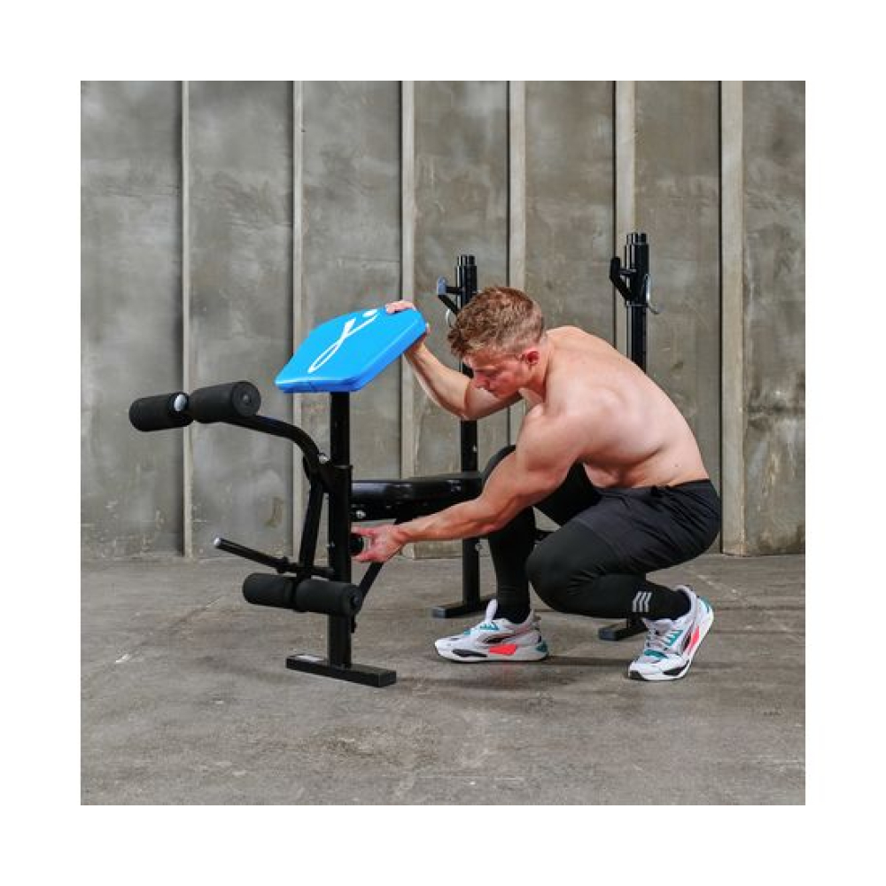 Скамья под штангу с партой для бицепсов DFC Fytter 04X - это универсальный тренажер, предназначенный для выполнения различных упражнений со штангой. Он позволяет тренировать мышцы груди, спины, плеч, а также бицепсы и трицепсы. Максимальный вес, который способна выдержать данная скамья, составляет 180 килограмм.Расстояние между стойками скамьи составляет 63 сантиметра, что позволяет использовать большинство видов штанг. Угол наклона скамьи регулируется, что дает возможность выполнять различные виды жима лежа и другие упражнения.Парта для бицепсов имеет 4 уровня регулировки высоты, что позволяет подобрать оптимальное положение для выполнения упражнений на бицепсы с гантелями или штангой.Профиль рамы скамьи выполнен из прочного стального сплава толщиной 60х2 мм, что обеспечивает ее надежность и устойчивость. Благодаря своей стальной конструкции скамья способна выдерживать интенсивные тренировки.Валики для жима можно утяжелять с помощью дисков. Это делает тренировку более интенсивной и эффективной, позволяя максимально проработать целевые мышцы.