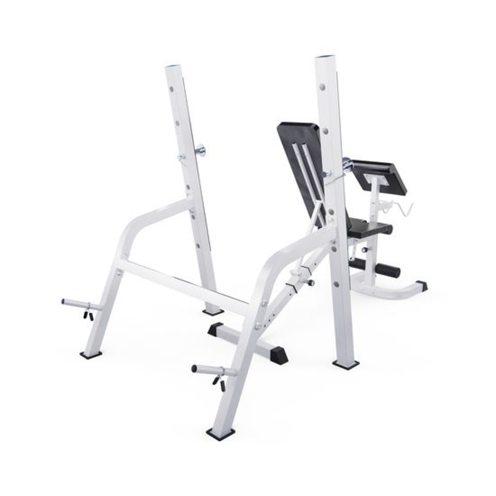 Скамья со стойками под штангу DFC GORILLA белая, с партой для бицепса