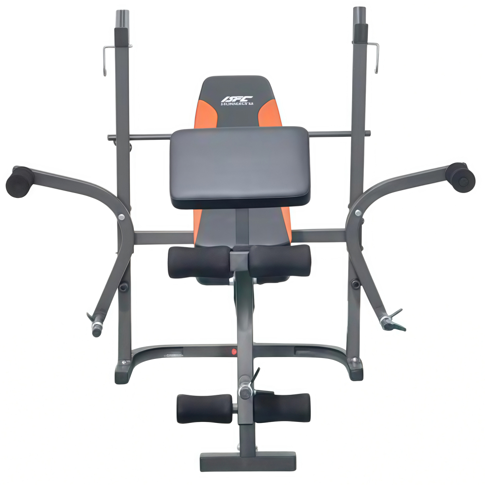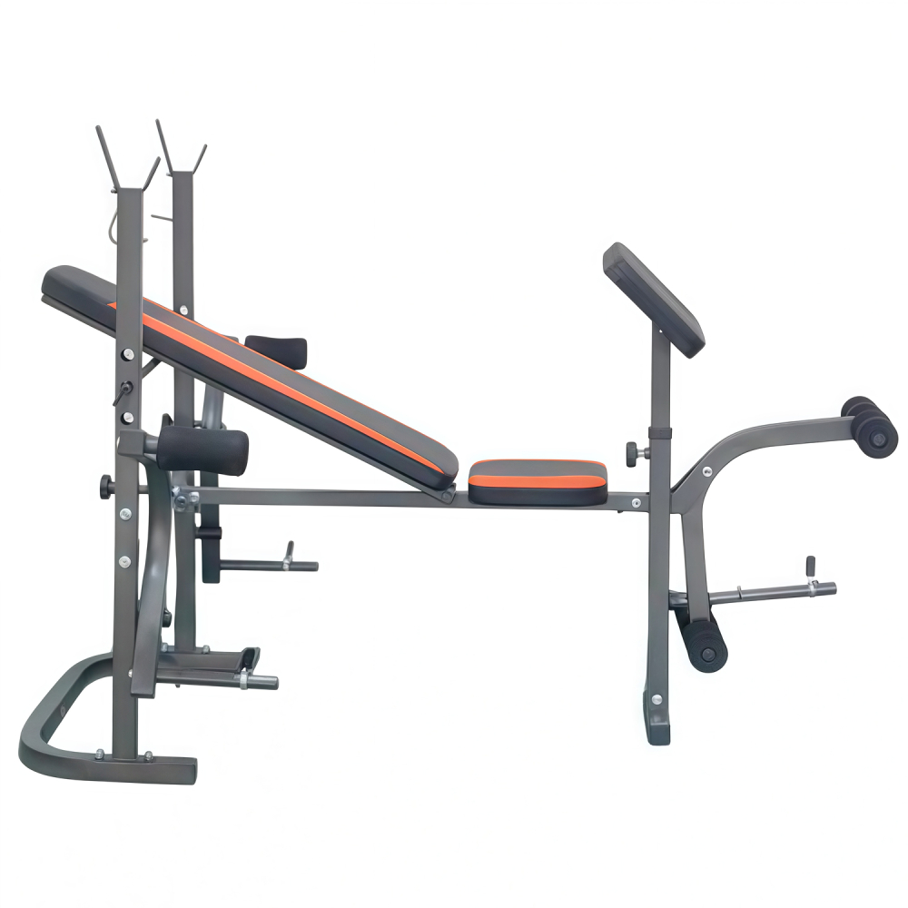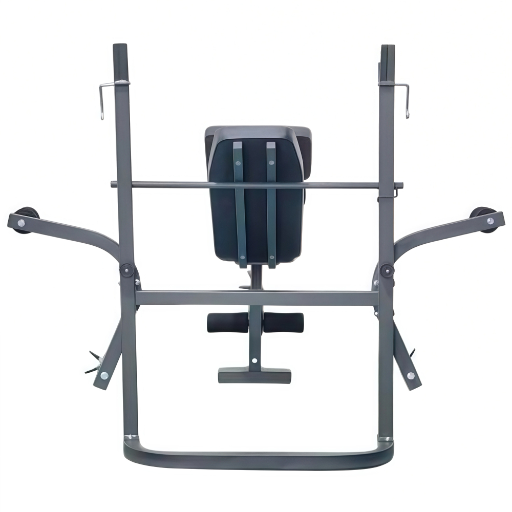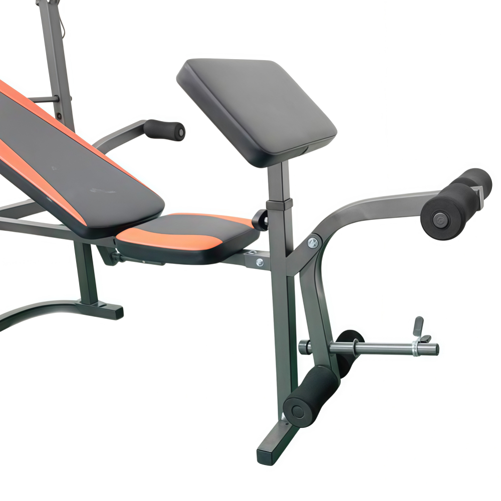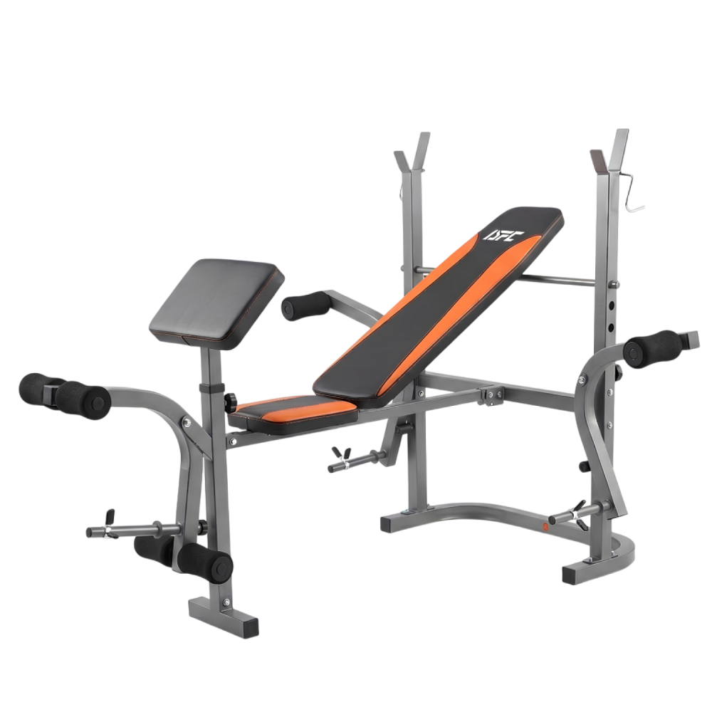 Скамья со стойками под штангу с опциями DFC D126 предназначена для домашнего использования и подходит для базовых силовых тренировок. Конструкция скамьи позволяет эффективно прорабатывать грудные мышцы, плечи, руки, мышцы ног, ягодицы, пресс, а также задействовать мышцы спины в качестве стабилизаторов. Конструкция рассчитана на максимальный вес пользователя до 125 кг. Максимальная нагрузка на стойки составляет 100 кг, а нагрузка на каждую трубу для дисков — до 30 кг, что обеспечивает стабильность и безопасность во время тренировок. Прочная и устойчивая рама из стального профиля 40 х 40 х 1,3 мм обеспечивает долговечность и безопасное использование в домашних условиях. Скамья оснащена регулируемой спинкой с 4 уровнями наклона, что позволяет подобрать оптимальный угол под жим лёжа, разведение рук или упражнения на плечи в зависимости от уровня подготовки. Размер спинки — 85 х 27 х 4,5 см, сиденья — 26 х 26 х 4,5 см, высота от сиденья до пола — 50 см, обеспечивая стабильную и комфортную посадку для пользователей разных комплекций. Дополнительно предусмотрена партa для бицепса размером 35 х 23 х 4,5 см с 4 уровнями регулировки, которая расширяет функциональность скамьи и повышает удобство при тренировке рук. Мягкие верхние и нижние валики обеспечивают комфорт при выполнении упражнений на пресс и фиксацию ног, минимизируя нагрузку на суставы. Расстояние между стойками составляет 68 см, что обеспечивает безопасное и удобное положение при работе со штангой. Посадочный диаметр дисков — 25 мм, благодаря чему скамья совместима с большинством стандартных дисков для домашнего фитнеса. Модель выполнена в складном формате, что позволяет удобно хранить скамью и экономить пространство в домашних условиях. Многофункциональное оборудование подходит для различных упражнений: жим лёжа, жим под углом, разведение рук, упражнения на бицепс и трицепс, тренировки с гантелями и штангой. Конструкция безопасна, устойчива и рассчитана на регулярные домашние тренировки. Гарантия на детали подверженные естественному износу в процессе эксплуатации — до 6 месяцев с момента установки тренажера при условии регулярного планового ТО. Важно: гарантия не распространяется на преждевременный износ из-за чрезмерной эксплуатации тренажера.