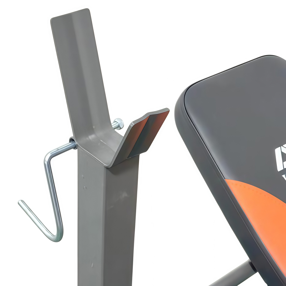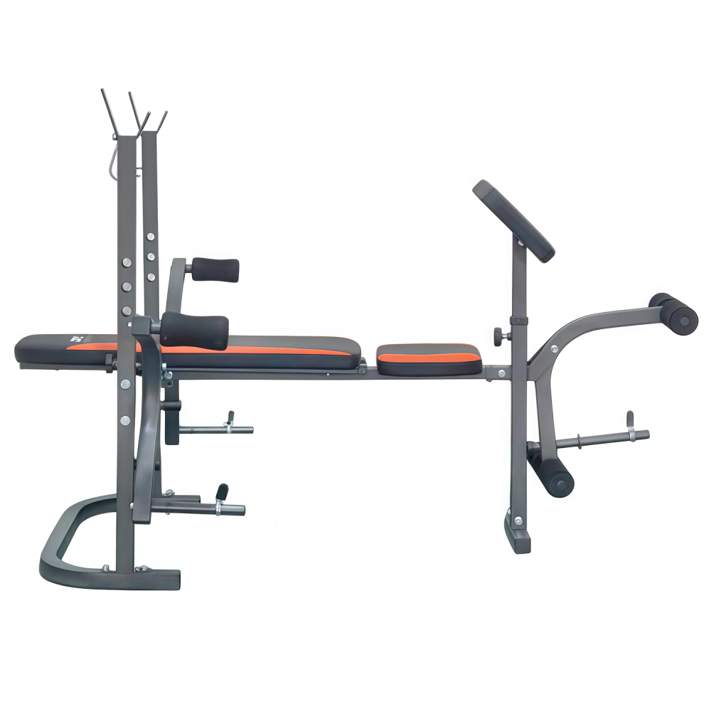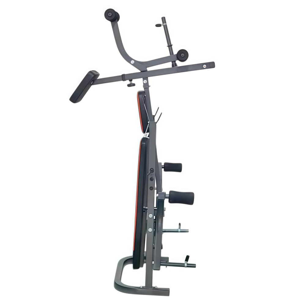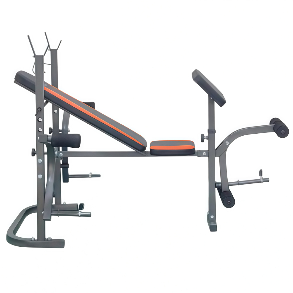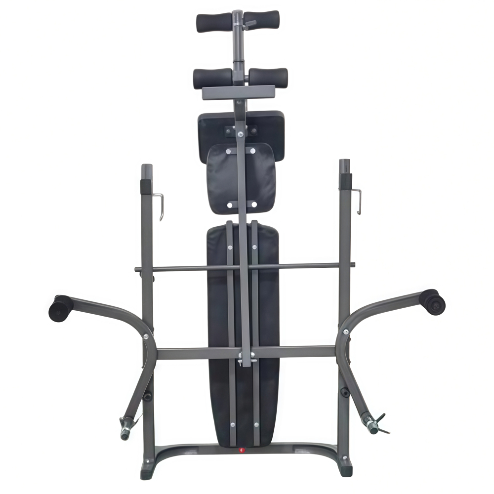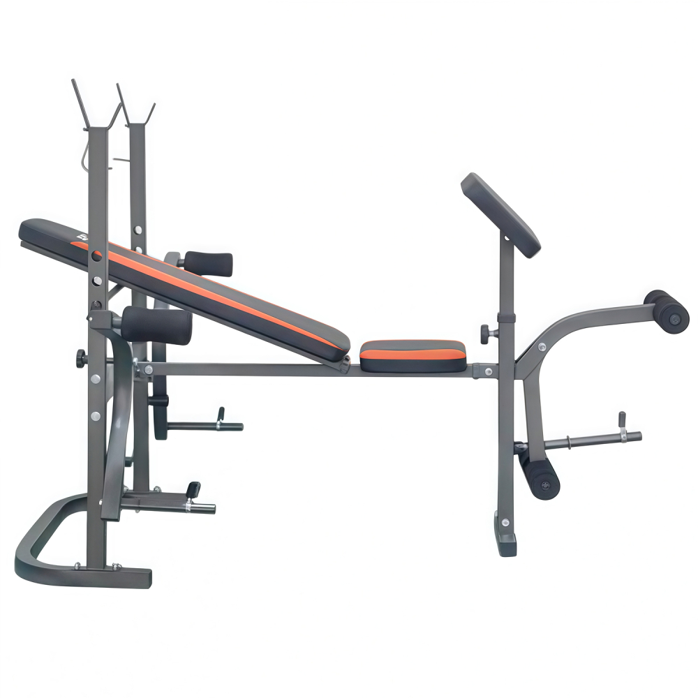 Скамья со стойками под штангу с опциями DFC D126 предназначена для домашнего использования и подходит для базовых силовых тренировок. Конструкция скамьи позволяет эффективно прорабатывать грудные мышцы, плечи, руки, мышцы ног, ягодицы, пресс, а также задействовать мышцы спины в качестве стабилизаторов. Конструкция рассчитана на максимальный вес пользователя до 125 кг. Максимальная нагрузка на стойки составляет 100 кг, а нагрузка на каждую трубу для дисков — до 30 кг, что обеспечивает стабильность и безопасность во время тренировок. Прочная и устойчивая рама из стального профиля 40 х 40 х 1,3 мм обеспечивает долговечность и безопасное использование в домашних условиях. Скамья оснащена регулируемой спинкой с 4 уровнями наклона, что позволяет подобрать оптимальный угол под жим лёжа, разведение рук или упражнения на плечи в зависимости от уровня подготовки. Размер спинки — 85 х 27 х 4,5 см, сиденья — 26 х 26 х 4,5 см, высота от сиденья до пола — 50 см, обеспечивая стабильную и комфортную посадку для пользователей разных комплекций. Дополнительно предусмотрена партa для бицепса размером 35 х 23 х 4,5 см с 4 уровнями регулировки, которая расширяет функциональность скамьи и повышает удобство при тренировке рук. Мягкие верхние и нижние валики обеспечивают комфорт при выполнении упражнений на пресс и фиксацию ног, минимизируя нагрузку на суставы. Расстояние между стойками составляет 68 см, что обеспечивает безопасное и удобное положение при работе со штангой. Посадочный диаметр дисков — 25 мм, благодаря чему скамья совместима с большинством стандартных дисков для домашнего фитнеса. Модель выполнена в складном формате, что позволяет удобно хранить скамью и экономить пространство в домашних условиях. Многофункциональное оборудование подходит для различных упражнений: жим лёжа, жим под углом, разведение рук, упражнения на бицепс и трицепс, тренировки с гантелями и штангой. Конструкция безопасна, устойчива и рассчитана на регулярные домашние тренировки. Гарантия на детали подверженные естественному износу в процессе эксплуатации — до 6 месяцев с момента установки тренажера при условии регулярного планового ТО. Важно: гарантия не распространяется на преждевременный износ из-за чрезмерной эксплуатации тренажера.