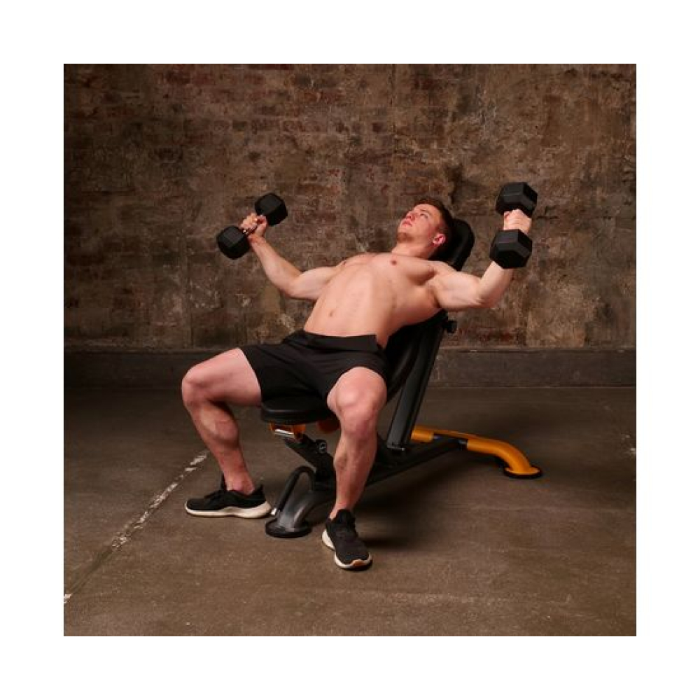 Силовая универсальная скамья STONERISE StormShape – функциональная модель для различных видов тренировок.Скамья состоит из двух независимых регулируемых частей. Однако устойчивость конструкция и надежность остались на высоком уровне. Толщина материала, из которого изготовлены сиденье и спинка составляет 5 мм, что делает его долговечным и защищённым от протирания.Тренажёр обладает расширенным диапазоном регулировок, что увеличивает количество упражнений, для которых подходит скамья. Спинка настраивается по углу наклона на 8 уровней, а сиденье – на 3. Профиль основной трубы 50х50 мм, а его толщина 2 мм. Скамья StormShape выдерживает нагрузку до 250 кг. Транспортировочные ролики и удобная ручка служат для лёгкого перемещения скамьи в помещении.