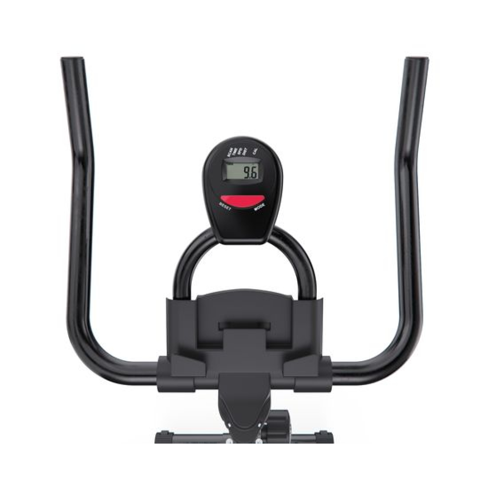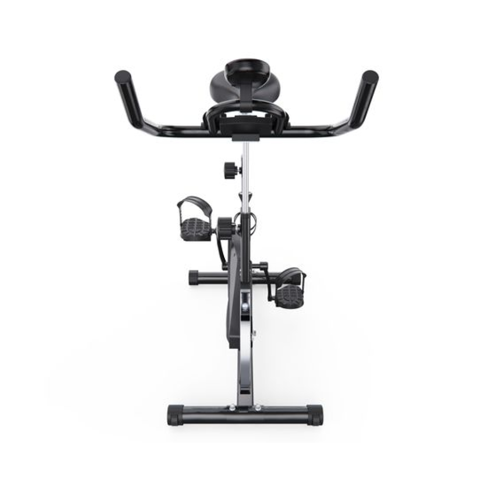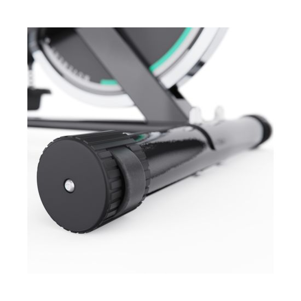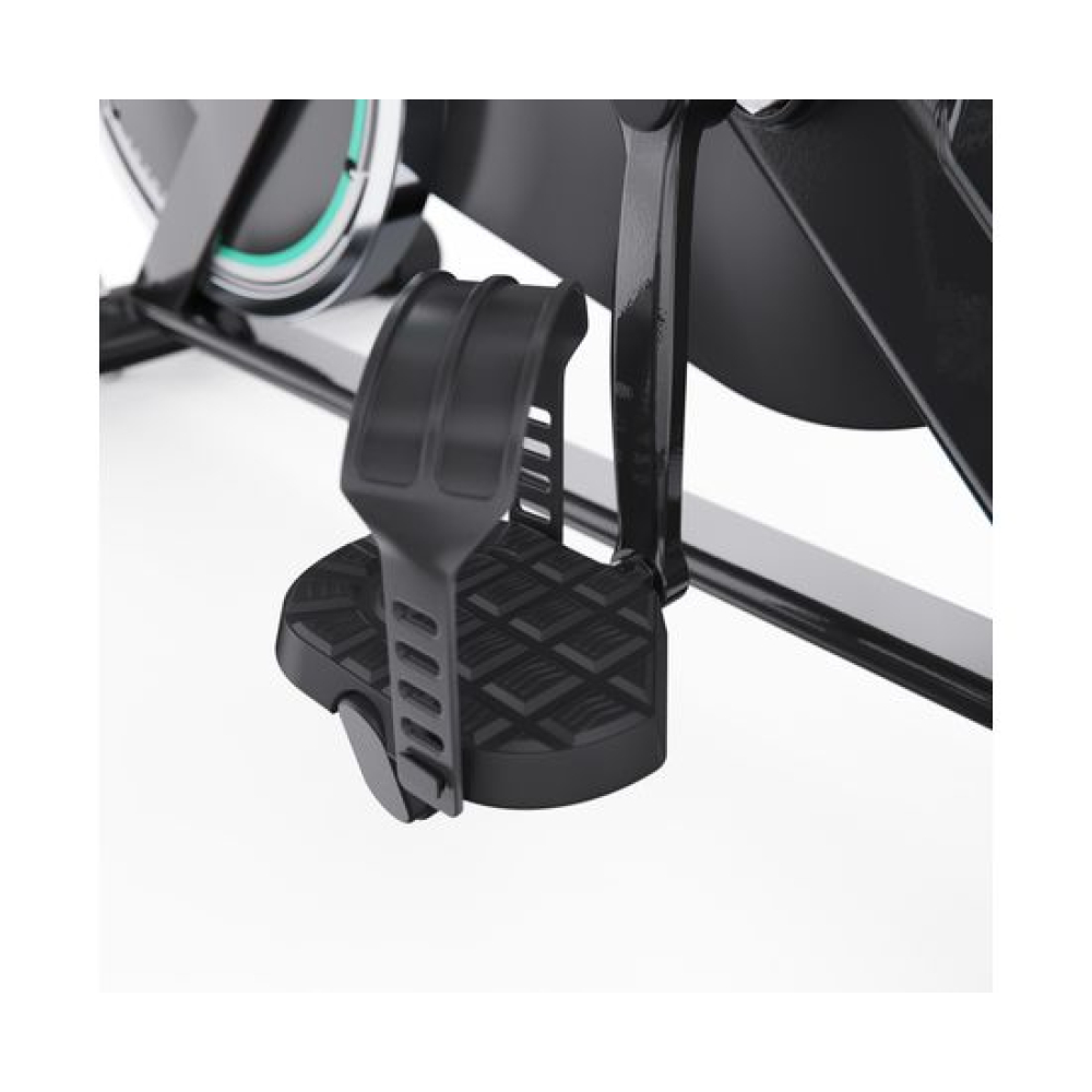 Спин-байк DFC URBANFIT PRO черного цвета — это идеальное решение для домашних кардиотренировок. Этот тренажер кардио-типа сочетает в себе функциональность, эргономику и прочность. Он прекрасно подойдёт как начинающим, так и продвинутым пользователям. Компактные размеры позволяют установить велотренажёр домашний даже в ограниченном пространстве, при этом он обеспечивает полную имитацию велотренировки в спортзале.Максимальный вес пользователя — 110 кг, что делает этот тренажер для ног универсальным и надёжным решением для разных категорий пользователей. Прочные стальные опоры и антискользящие ножки обеспечивают устойчивость и безопасность даже при интенсивных занятиях. Встроенные компенсаторы неровности пола гарантируют надёжную установку на любой поверхности.Механическая колодочная система нагрузки с бесступенчатой регулировкой обеспечивает плавный и стабильный ход. Маховик с инерционным весом 12 кг даёт ощущение натуральной езды, что делает этот велотренажёр для ног особенно эффективным в проработке нижней части тела.Регулируемое сиденье и руль обеспечивают максимальный комфорт во время занятий. Сиденье настраивается по вертикали на 5 уровней, по горизонтали — бесступенчато, а также по углу наклона. Руль регулируется по высоте также на 5 уровней. Это помогает точно подстроить посадку под рост и индивидуальные предпочтения.LCD-дисплей выводит всю необходимую информацию: время тренировки, скорость, пройденную дистанцию, количество сожжённых калорий и режим сканирования. Это позволяет отслеживать прогресс и корректировать нагрузку в реальном времени. Для работы консоли требуется 2 ААА батарейки (не входят в комплект).Кардиотренажер для ног и рук домашний оснащён транспортировочными роликами, которые позволяют легко перемещать его по комнате. В конструкции предусмотрены держатель для бутылки и подставка под планшет — можно смотреть видео, слушать музыку или использовать тренировочные приложения. Велотренажёр домашний формирует удобную тренировочную среду прямо у вас дома.Размер тренажёра в рабочем виде — 103 х 46 х 103-113,5 см, благодаря компактному вертикальному дизайну и мобильности он легко впишется даже в небольшую квартиру. Этот велотренажёр — не только функциональный спортивный снаряд, но и стильное дополнение к интерьеру домашнего спортзала.DFC URBANFIT PRO — современный, удобный и надёжный кардиотренажер для дома. Он поможет вам поддерживать форму, улучшать выносливость, эффективно прорабатывать ноги и укреплять сердечно-сосудистую систему. Ваш идеальный тренажёр для ног и кардионагрузок — всегда под рукой!