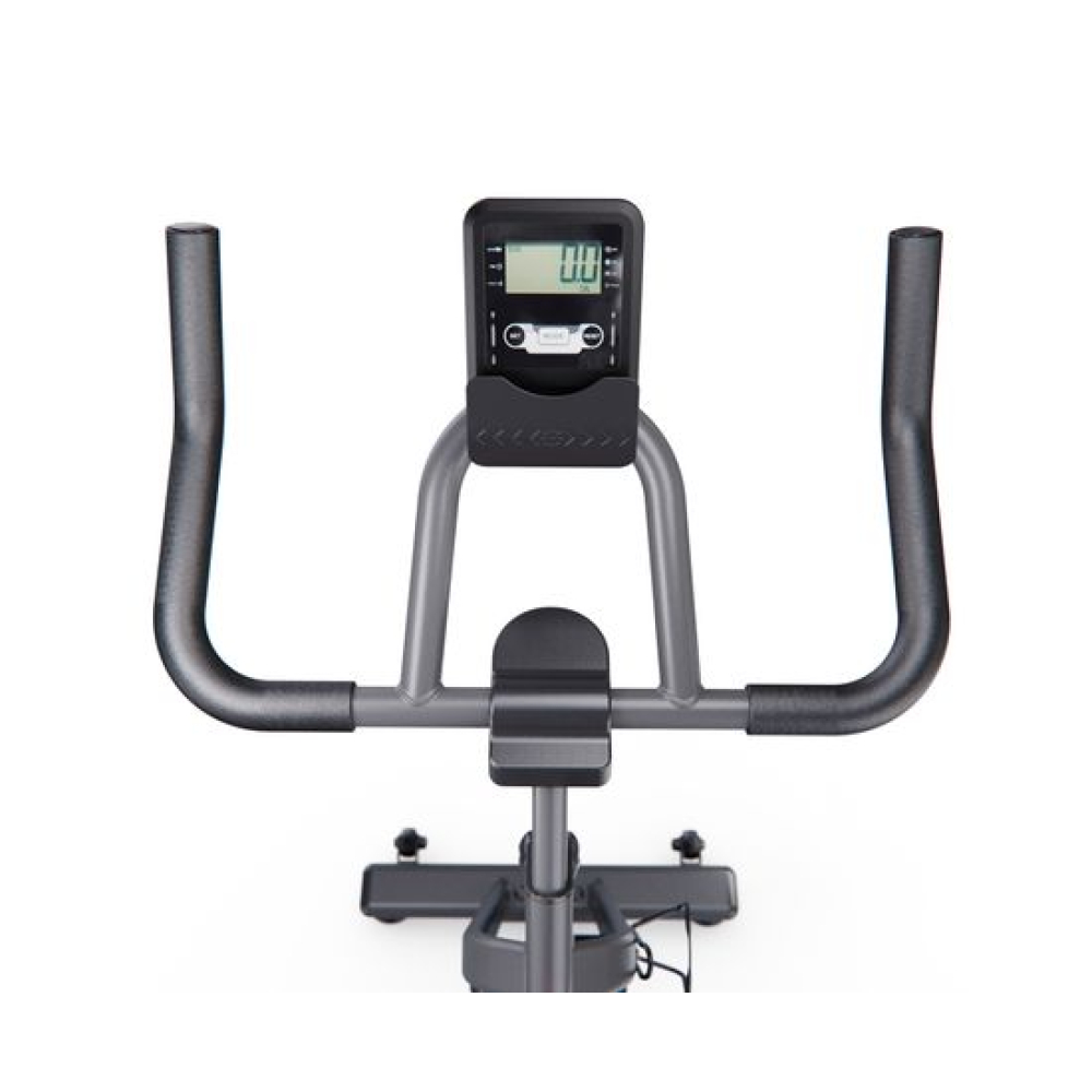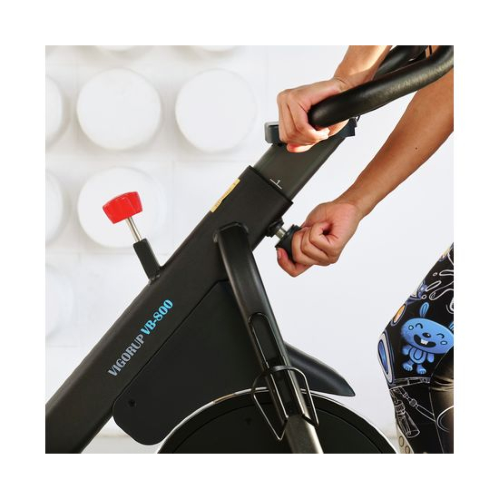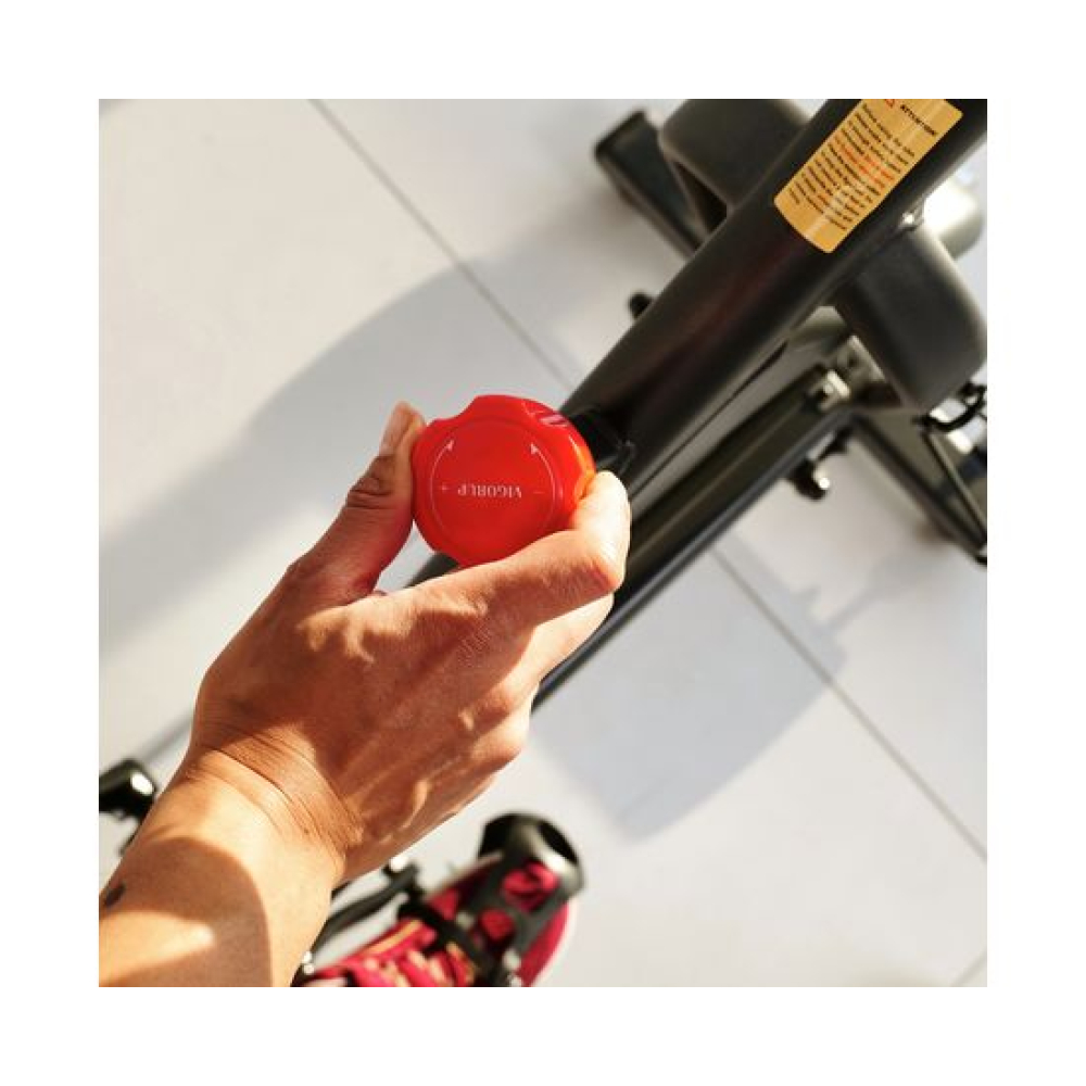 Спин-байк DFC VIGORUP VB-800 - эффективный тренажер для кардиотренировок дома, который имитирует езду на обычном велосипеде. Руль с положением рук Bullhorn и противоскользящим и устойчивым к поту покрытием обеспечивает комфорт и безопасность во время тренировки. А удобств во время тренировок добавит карман для спортивной бутылки.Спортивное сиденье регулируется не только по высоте и горизонтали, но и углу наклона, таким образом меняя интенсивность тренировки и положение пользователя в седле. Руль регулируется по высоте, делая тренировки комфортнее и продуктивнее. Спин-байк рассчитан на пользователя весом до 110 кг.Маховик с инерционным весом 15 кг обеспечит плавное вращение и регулировку нагрузки. Педали можно крутить вперед и назад. Ремень маховика не превышает уровень шума до 52 дБ, что делает Спин-байк DFC VIGORUP VB-800 хорошим выбором для квартиры или большой семьи.Монохромный LCD дисплей отображает такие параметры как время, скорость, дистанция, калории, количество оборотов в минуту. Он работает от 2-х батареек ААА, идущих в комплекте с тренажёром.
