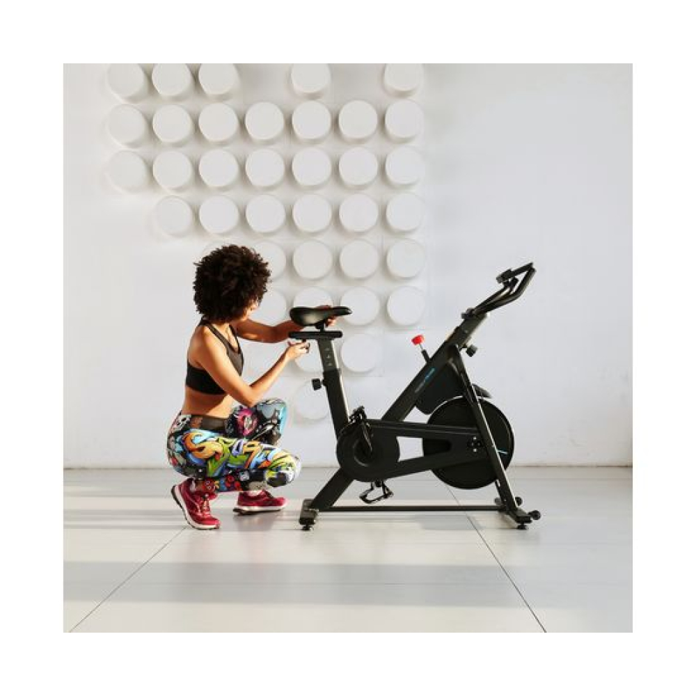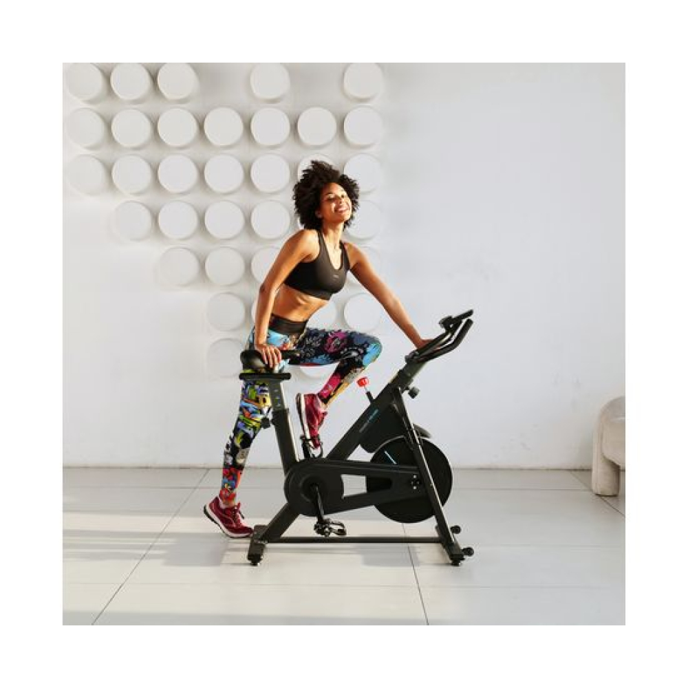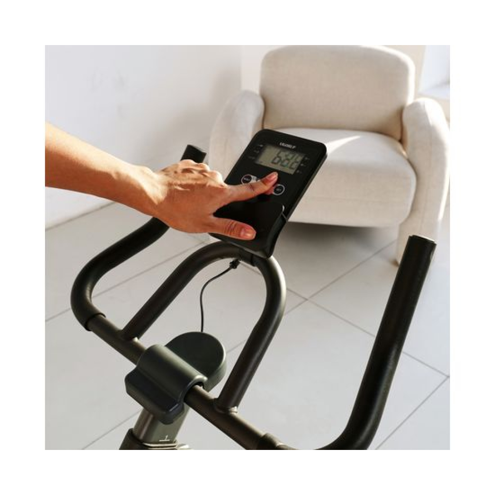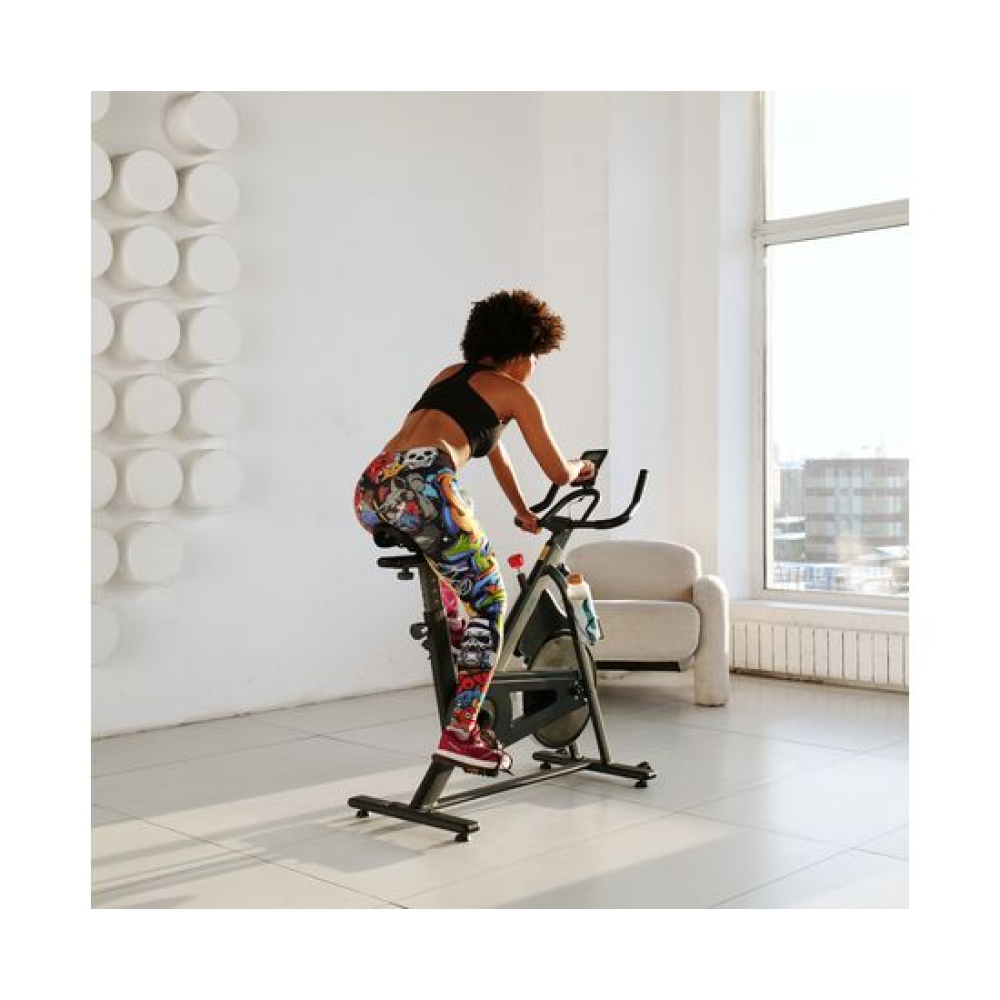 Спин-байк DFC VIGORUP VB-800 - эффективный тренажер для кардиотренировок дома, который имитирует езду на обычном велосипеде. Руль с положением рук Bullhorn и противоскользящим и устойчивым к поту покрытием обеспечивает комфорт и безопасность во время тренировки. А удобств во время тренировок добавит карман для спортивной бутылки.Спортивное сиденье регулируется не только по высоте и горизонтали, но и углу наклона, таким образом меняя интенсивность тренировки и положение пользователя в седле. Руль регулируется по высоте, делая тренировки комфортнее и продуктивнее. Спин-байк рассчитан на пользователя весом до 110 кг.Маховик с инерционным весом 15 кг обеспечит плавное вращение и регулировку нагрузки. Педали можно крутить вперед и назад. Ремень маховика не превышает уровень шума до 52 дБ, что делает Спин-байк DFC VIGORUP VB-800 хорошим выбором для квартиры или большой семьи.Монохромный LCD дисплей отображает такие параметры как время, скорость, дистанция, калории, количество оборотов в минуту. Он работает от 2-х батареек ААА, идущих в комплекте с тренажёром.