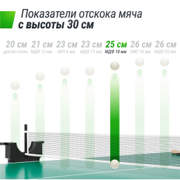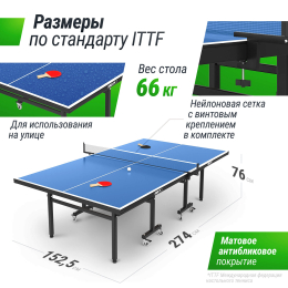 - Размер в рабочем состоянии, см. 274 х 152,5 х 76 (стандарт ITTF)