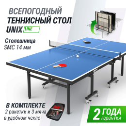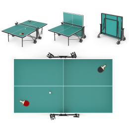 - Комплектация теннисного стола сетка, набор: 2 ракетки, 3 шарика в сумке