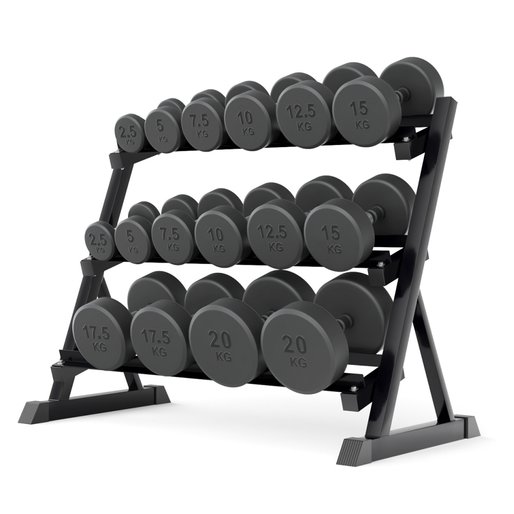 Стойка для гантелей UNIX Fit DumRack PRO станет незаменимым аксессуаром для тренажерного зала или домашнего спортивного уголка. Стойка под гантели сочетает в себе прочность, функциональность и стильный дизайн. Максимальная нагрузка гантельной стойки 300 кг. Подставка для гантелей изготовлена из особопрочной стали Q235, которая используется для производства деталей с большим уровнем нагрузки, например для строительства мостов и зданий. Такая конструкция с толщиной стали 1,2 мм обеспечивает надежное и безопасное хранение гантелей различного веса, защищая их от повреждений, сохраняя порядок в тренировочном пространстве. Трехрядная конструкция с противоскользящими ножками обеспечивает удобный доступ к гантелям во время тренировок. Ширина полки для гантелей по внешним границам 22 см, по внутренним границам 11 см. Стойка с размерами 133,3 х 56,5 х 87 см стойка идеально впишется в любой интерьер и поможет оптимизировать пространство в вашем доме или зале. Окраска распылением придает эстетический вид стойке для хранения спортивного инвентаря и не скалывается от соприкосновения с металлом гантелей. Тренируйтесь с удовольствием с UNIX Fit!. .