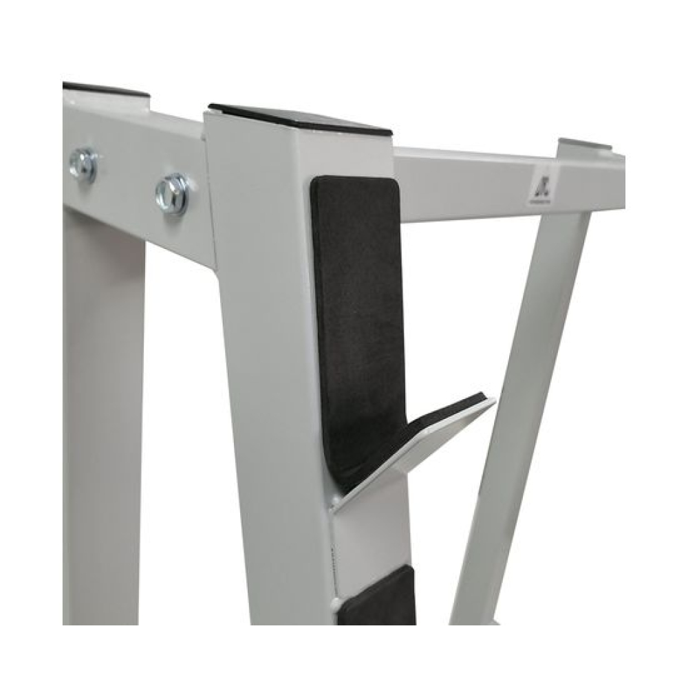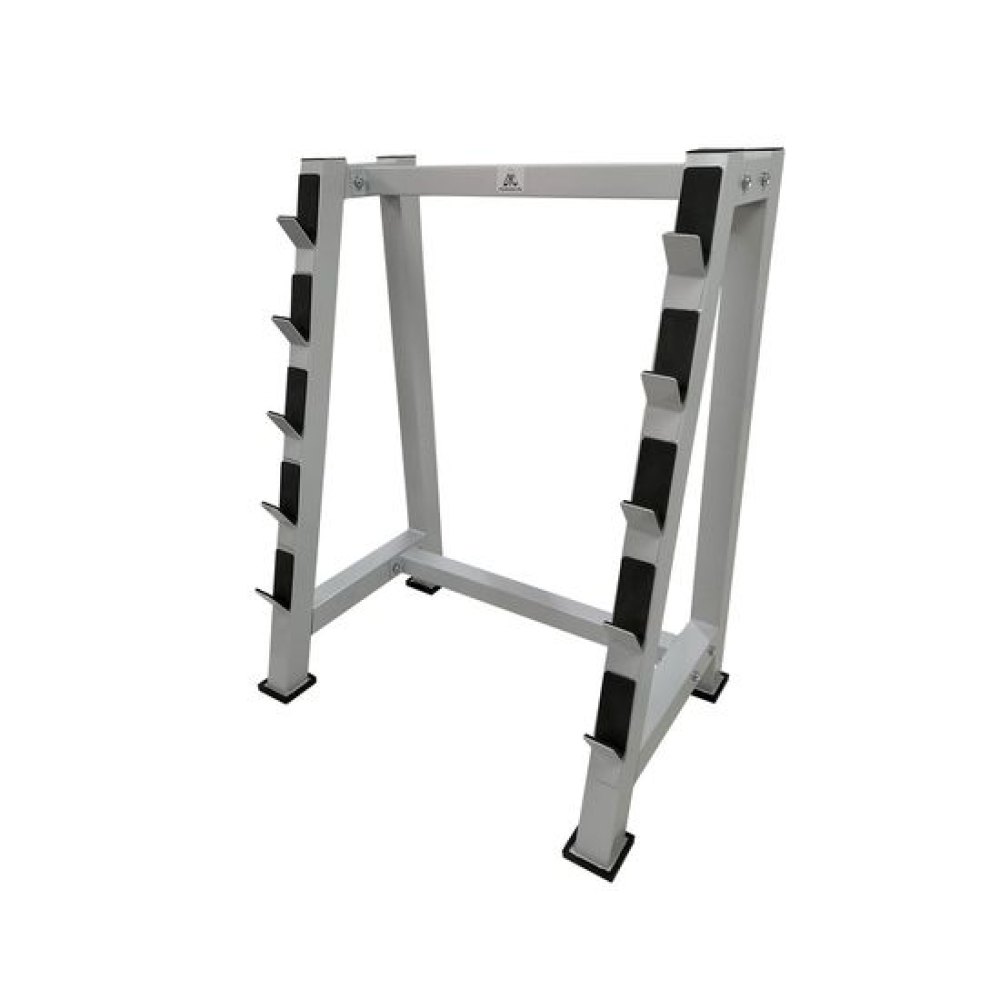 Стойка для хранения 5 грифов. Нагрузка на 1 место - до 100 кг, что позволяет хранить гриф с дисками.Мощная рама изготовлена из высококачественного стального профиля, размер 60*60 и 50*50, толщина 1,5 мм.Посадочные места имеют защитное покрытие. Расстояние между местами хранения 17,5 см.