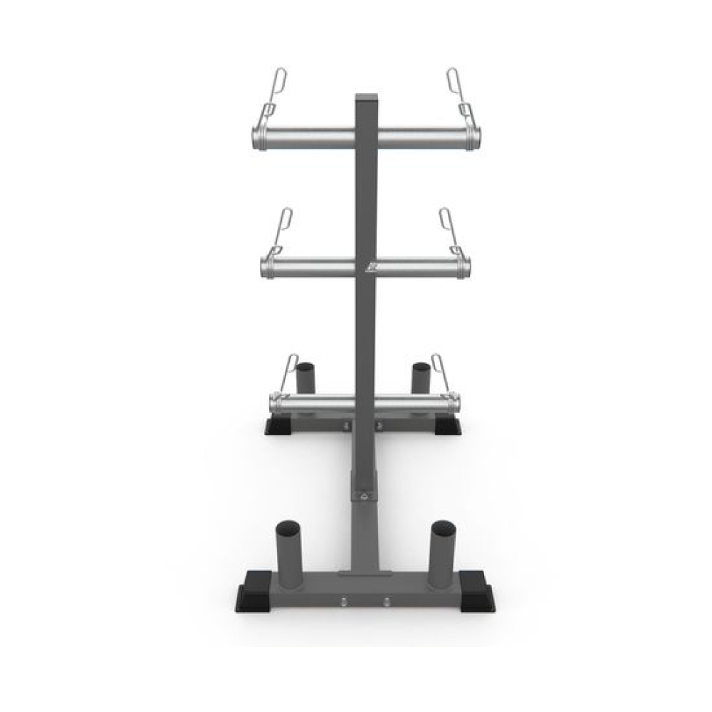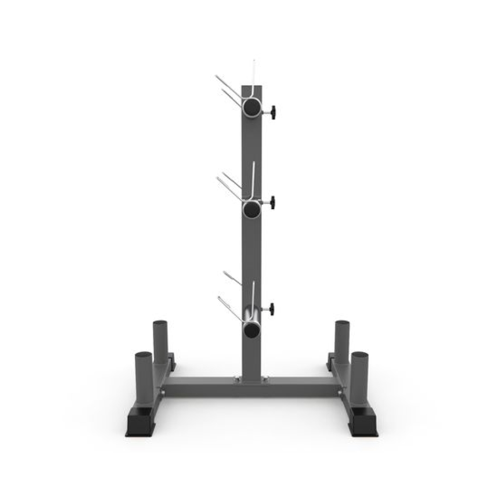 Стойка для хранения дисков и грифов DFC RA021 – удобный и компактный аксессуар для домашнего использования. Установите всего одну компактную стойку, чтобы организовать все спортивные снаряды в 1 месте и иметь к ним удобный доступ.Стойка выдерживает нагрузки до 100 кг и подходит для хранения с посадочным диаметром 50 и 51 мм, а также для грифов диаметром 50 мм. 6 замков-пружин надежно фиксируют диски. Профиль трубы в основании – 50 х 70 х 1,2 мм. Длина посадочного места 22,6 см.Напольная компактная стойка удобно размещается в любом помещении: как в отдельно углу, так и между другими тренажерами. Для дополнительной устойчивости конструкции соблюдайте порядок размещения снарядов: сверху вниз, от самых легких до самых тяжелых и объемных.