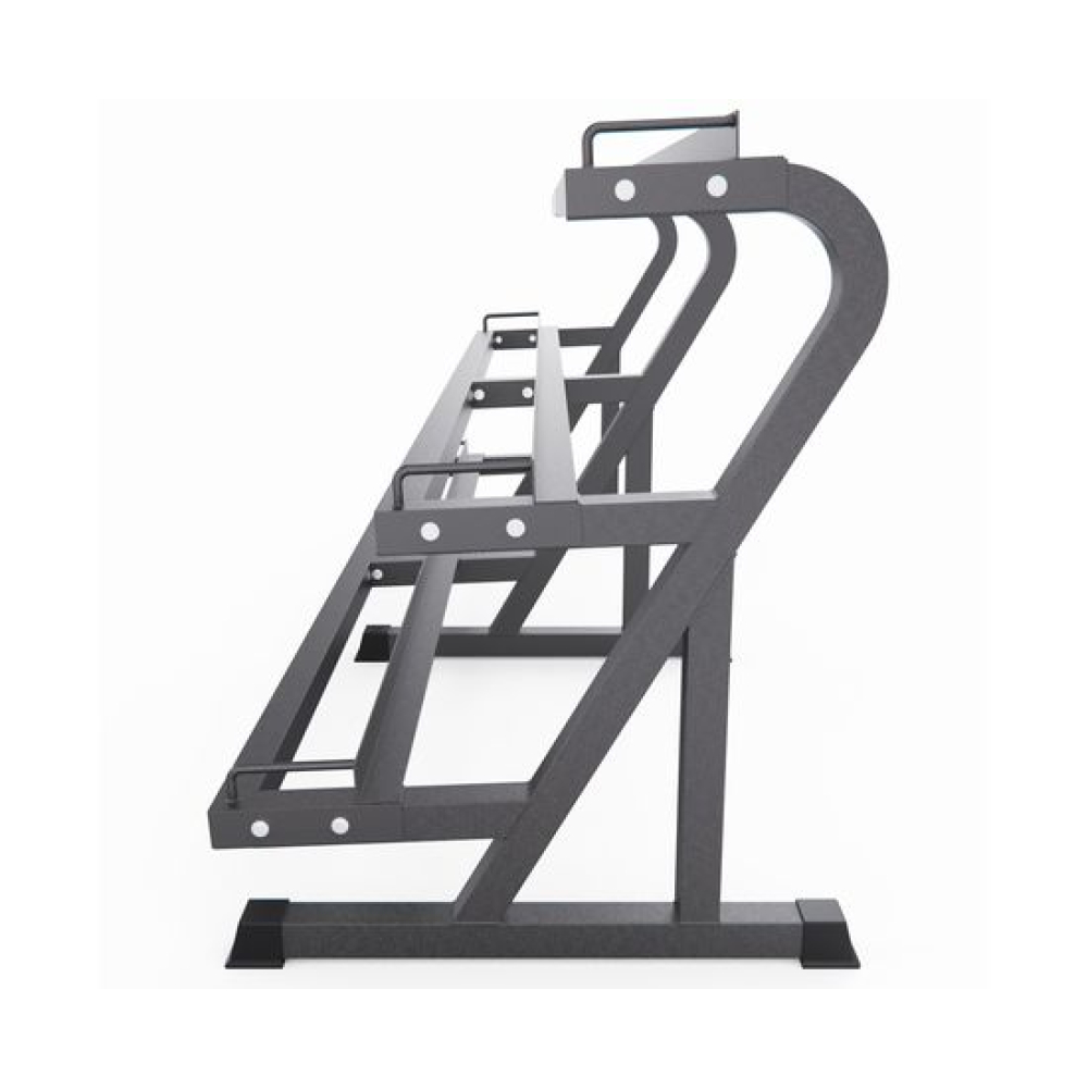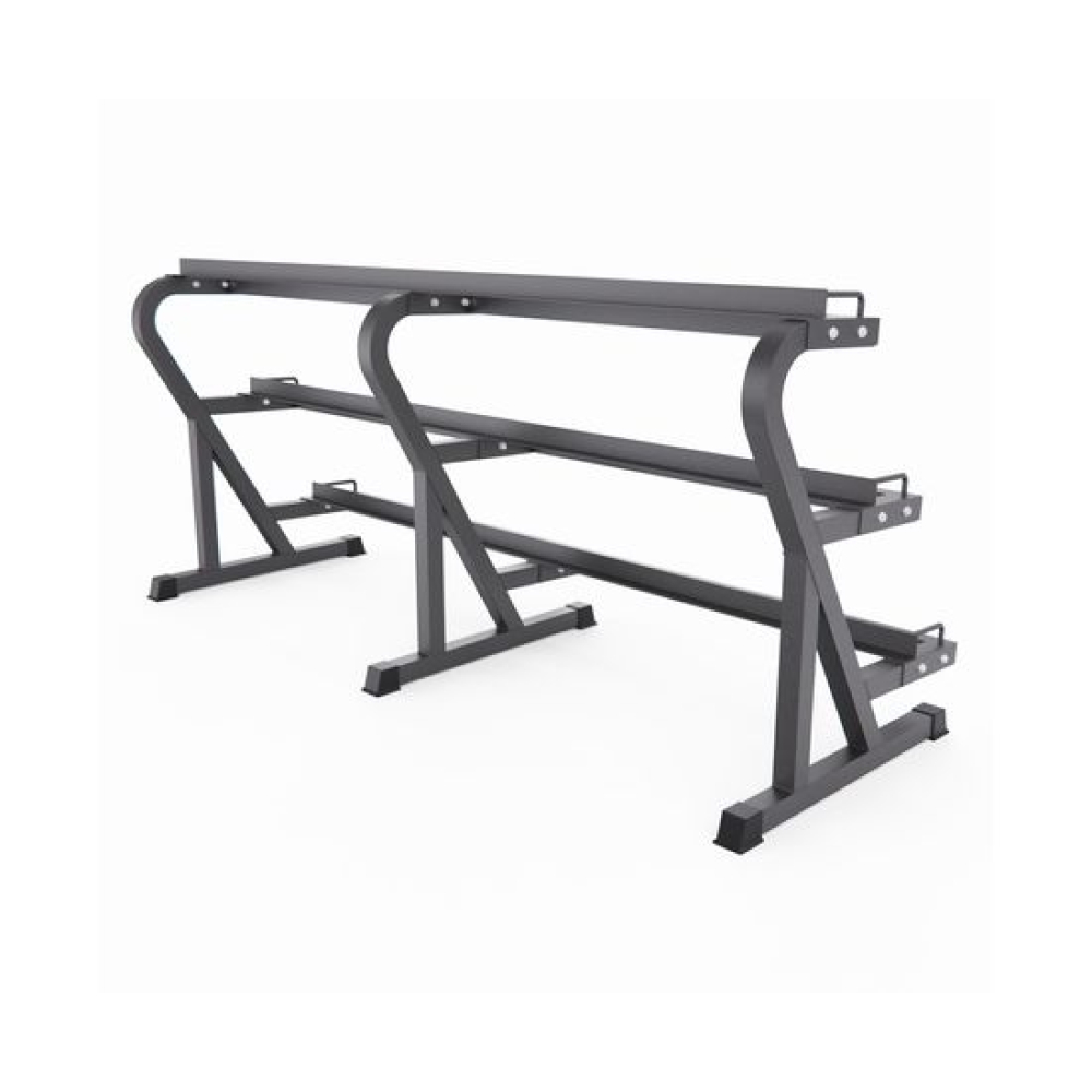 Стойка для хранения гантелей DFC RA100 — это практичное решение для организации домашнего пространства и создания комфортных условий для тренировок. Она позволяет аккуратно разместить гантели разного веса, избавляя от беспорядка и делая спортивную зону более функциональной и безопасной.Конструкция стойки рассчитана на максимальную нагрузку до 250 кг и выполнена из прочного стального профиля, что гарантирует её устойчивость, долговечность и безопасность при использовании. Надёжная рама выдерживает значительные нагрузки без деформации, а защитное металлическое покрытие предотвращает появление коррозии и царапин, сохраняя привлекательный внешний вид даже при длительной эксплуатации.Трёхъярусная конструкция стойки позволяет удобно разместить гантели различных размеров и весов. Оптимальное расстояние между полками обеспечивает лёгкий доступ к каждой паре гантелей, а сама стойка экономит пространство, сохраняя порядок в домашнем спортзале.Внутреннее расстояние между стойками составляет 209 см, внешнее — 17,3 см, а внутренний зазор — 12 см. Эти параметры обеспечивают устойчивость конструкции и удобное размещение спортивного инвентаря любого формата.Стойка для гантелей DFC RA100 обеспечивает безопасное хранение спортивного инвентаря, исключая риск случайного падения или повреждения снарядов. Рационально расположенные уровни позволяют размещать гантели разного веса и размера без перегрузки конструкции.Гарантия на детали подверженные естественному износу в процессе эксплуатации — до 6 месяцев с момента установки тренажера при условии регулярного планового ТО. Важно: гарантия не распространяется на преждевременный износ из-за чрезмерной эксплуатации тренажера.