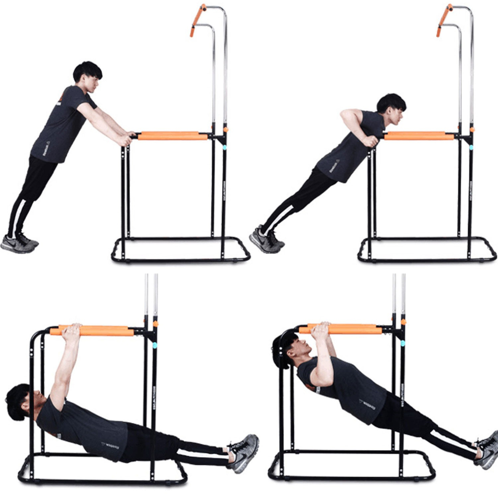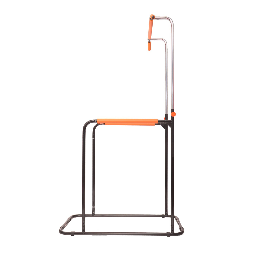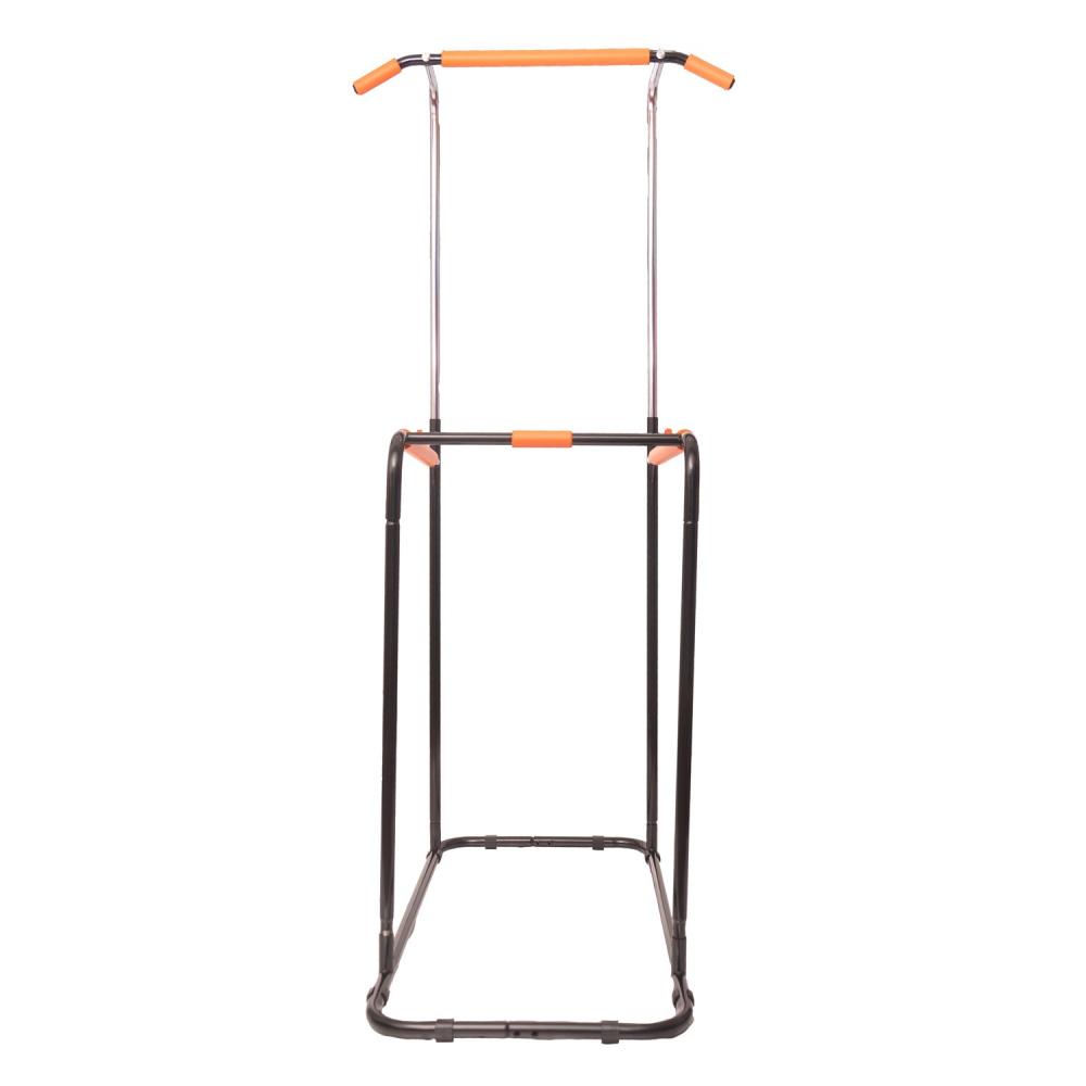Тренажер DFC POWER TOWER G006 Тренажер предназначен для выполнения 3 типов упражнений: подтягивания на турнике, отжимания на брусьях, и прокачки пресса, воздействуя на разные группы мышц тела на одном тренажере. Занятия на этом тренажере способствуют развитию мышц рук, плечевого пояса, спины и пресса. Турник позволяет подтягиваться разным хватом, смещая нагрузку на желаемые участки мышц спины. Узко расположенный турник нагружает во время подтягиваний мышцы, расположенные ближе к центру спины, в то время как подтягивания широким хватом отлично растят ваши широчайшие! Достаточная длина каждой рукояти позволит подобрать ширину комфортного хвата любому атлету, вне зависимости от его антропометрических данных. Турник регулируется по высоте от 190 до 218 см, промежуточная фиксация с помощью 2 болтов с ручками.