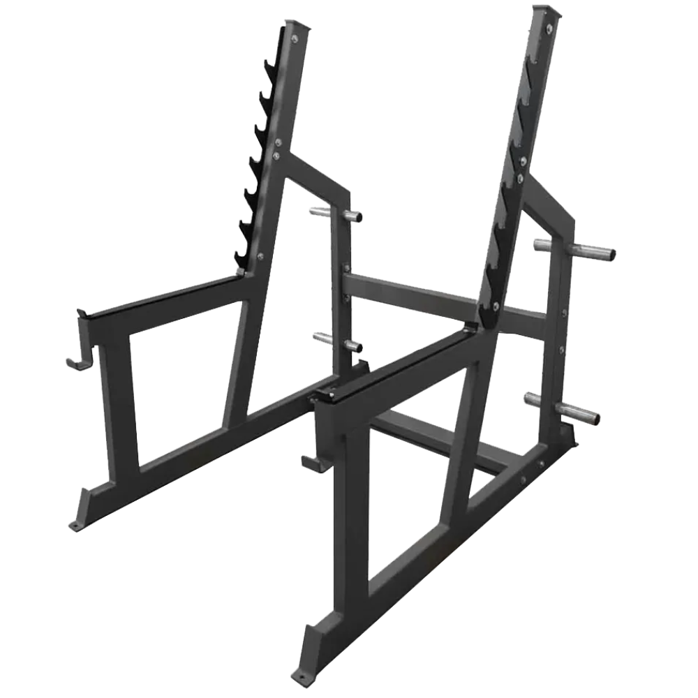 Регулируемые по высоте ограничители и упоры под штангу дают возможность подстроить стойку под рост спортсмена и особенности техники. Прочная стальная рама гарантирует долговечность и устойчивость, а компактные размеры позволяют использовать стойку как в профессиональном зале, так и дома.