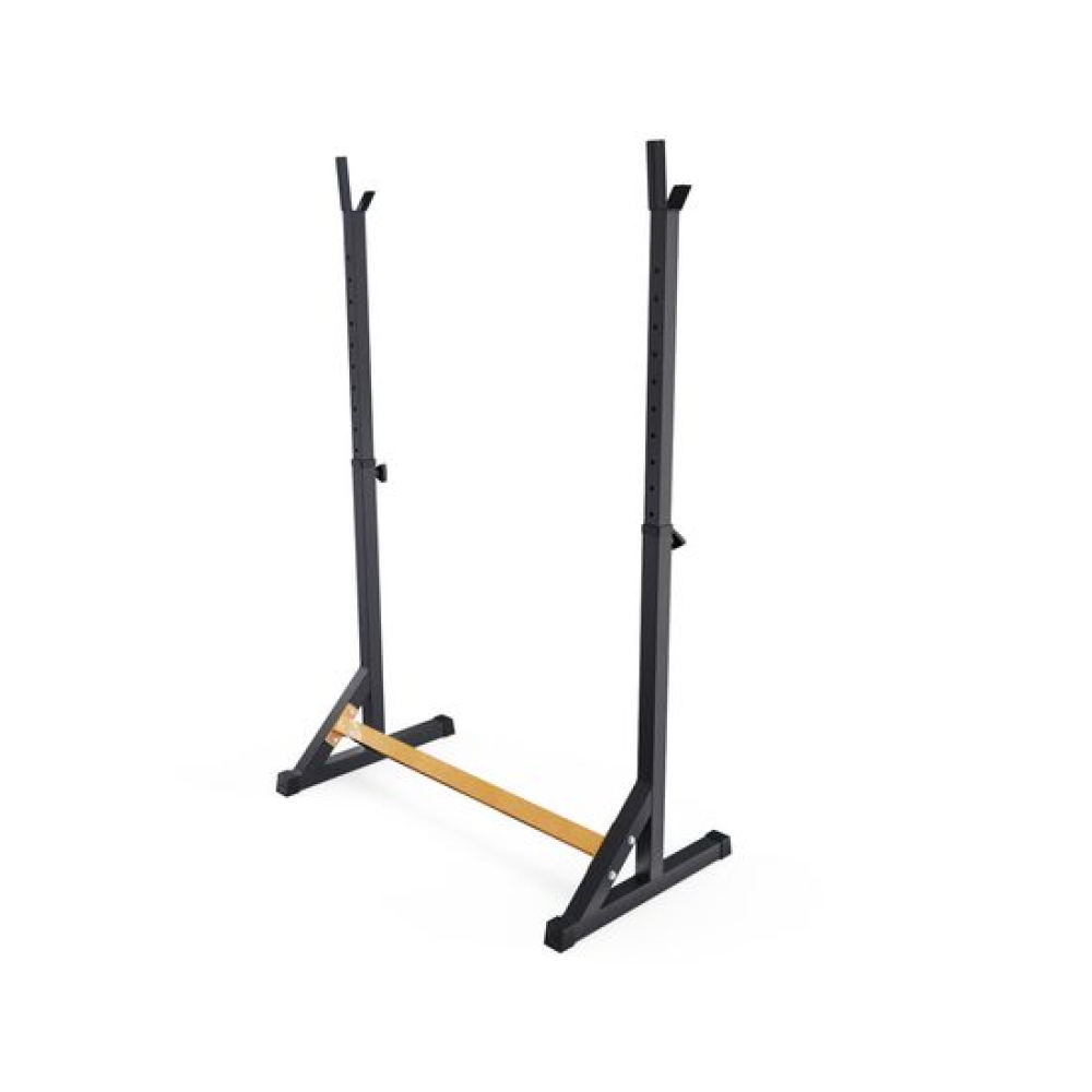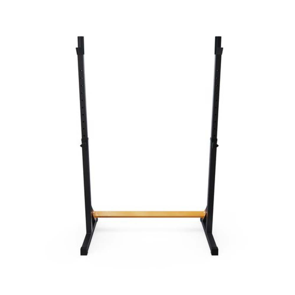 Стойка для штанги DFC Y-GYM TF-61 - многофункциональная стойка для домашнего спортзала. Серия Y-GYM – это тренажеры в современном дизайне, где динамичный желтый цвет гармонично сочетается с элегантным черным. Продуманная геометрия и контрастное цветовое решение позволят тренажеру гармонично вписаться в любую комнату и стать ярким акцентом вашего интерьера. Это идеальное решение для тех, кто ценит функциональность и эстетику в каждой детали своего дома.Устойчивое основание стойки для приседаний из высокопрочной профильной трубы 50 х 50 х 1,5 мм выдерживает динамическую нагрузку до 150 кг (динамическая нагрузка – нагрузка на элементы конструкции в движении). Подходит для выполнения полного спектра упражнений со штангой: от приседаний и становой тяги до жима лежа.Высота держателей под штангу легко регулируется без дополнительных инструментов при помощи ручки. Держатели под штангу стойки для жима регулируются по высоте на 7 уровней в диапазоне от 100 до 170 см (шаг 10 см). Нескользящие ножки надежно устанавливаются на полу и не царапают поверхность.