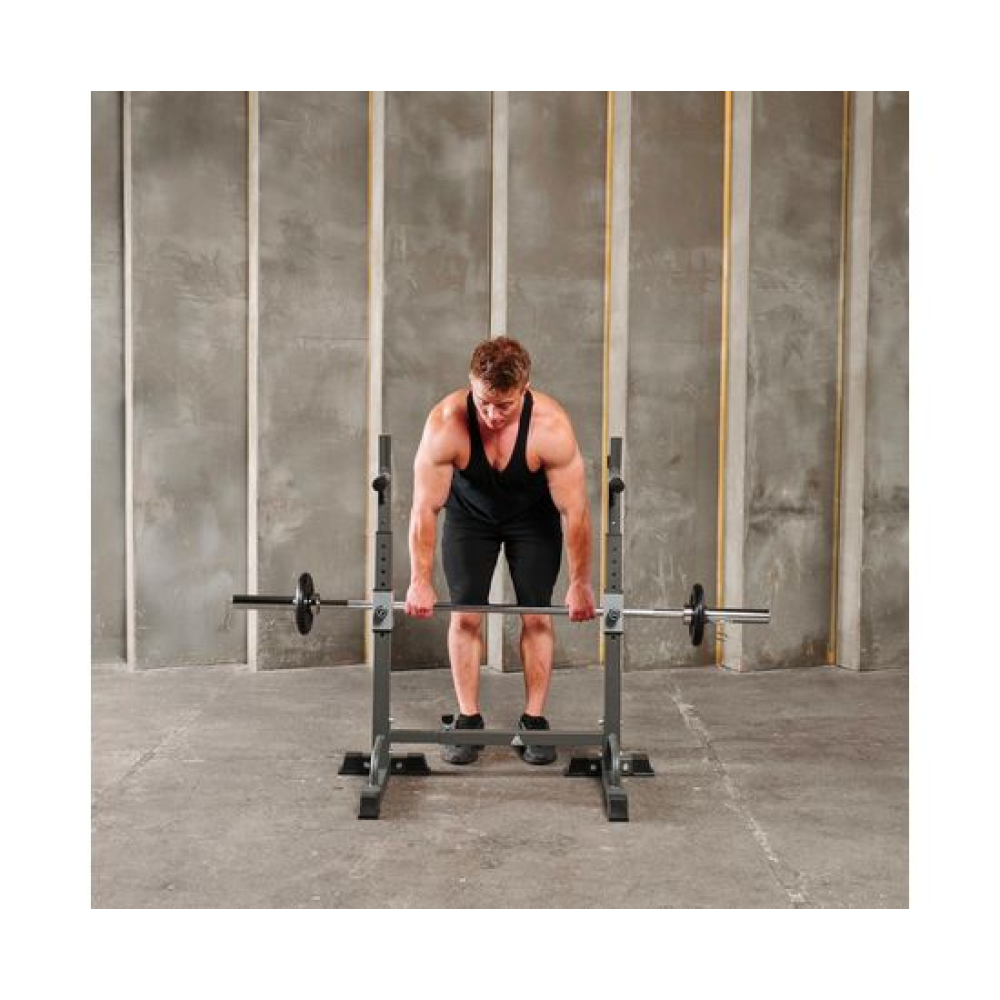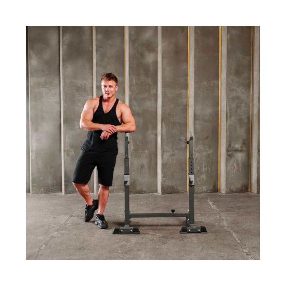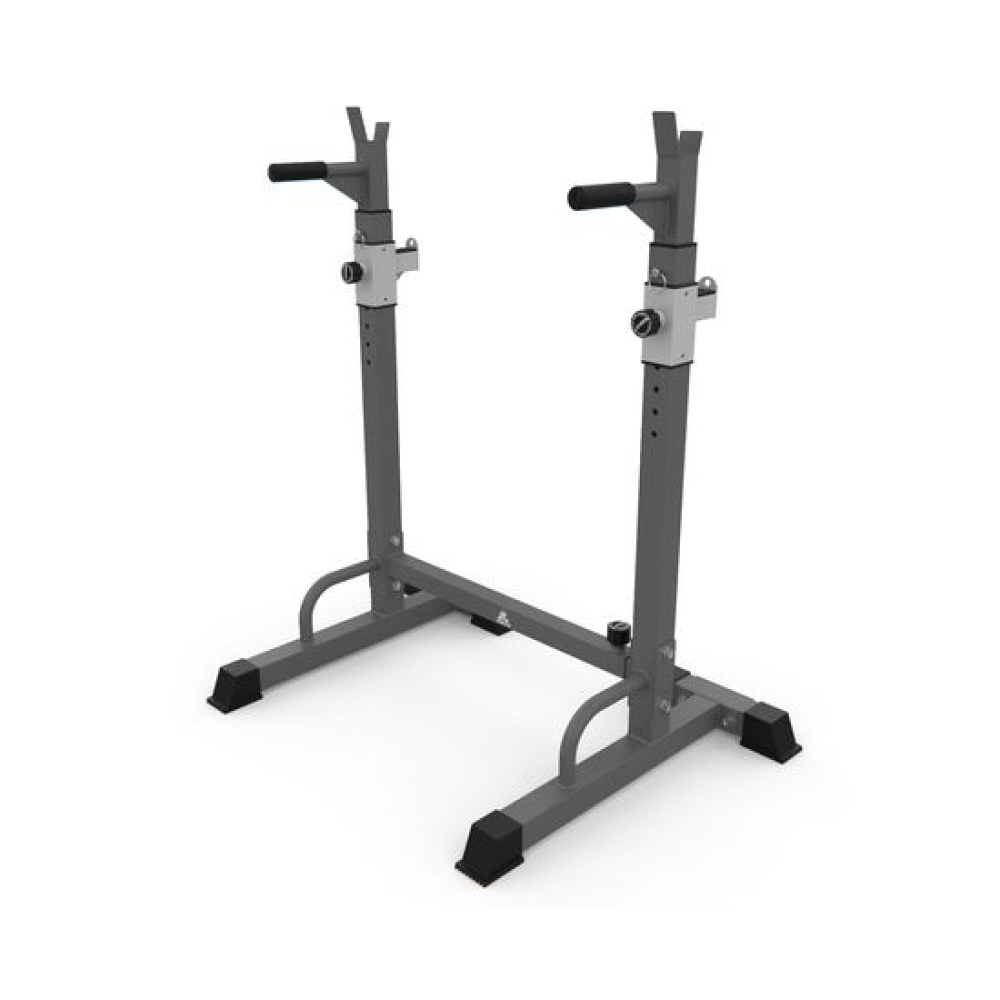 Многофункциональная стойка для домашнего спортзала. Подходит для выполнения полного спектра упражнений со штангой: от приседания и становой тяги до жима лежа. Приятное дополнение – стойки для отжиманий от пола.Устойчивое основание из высокопрочной профильной трубы выдерживает нагрузку до 100 кг. Подвижный держатель подойдет для весов до 50 кг.Высота брусьев и ширина стойки легко регулируется без дополнительных инструментов. 12 уровней на верхних ручках и 8 уровней - на нижних. Внутренняя ширина регулируется в диапазоне от 54 до 99 см.