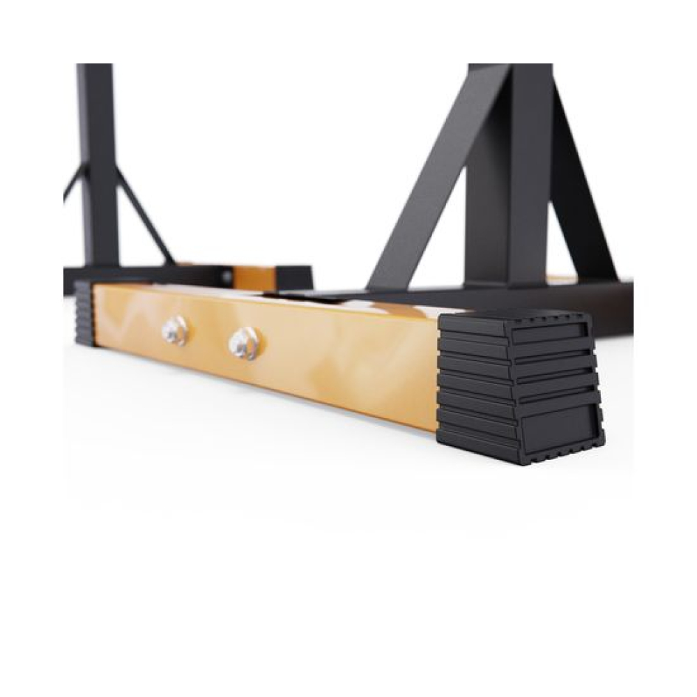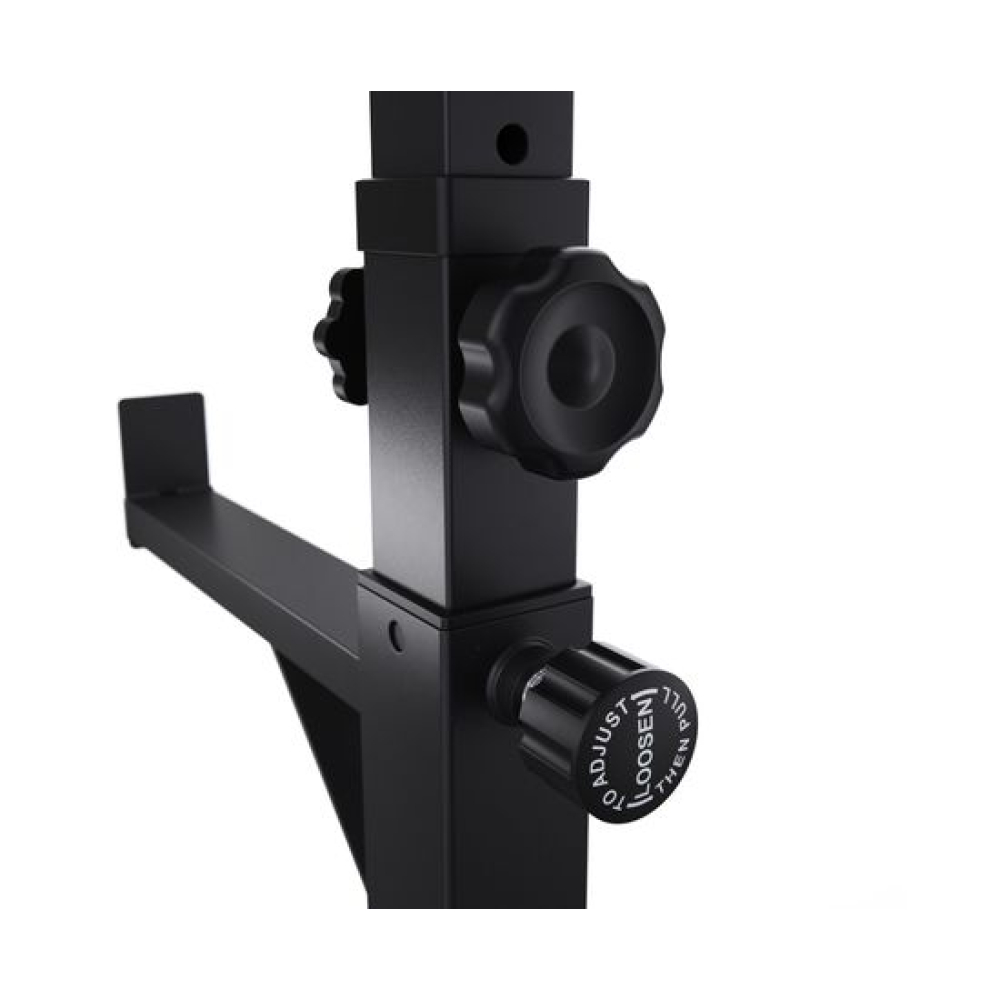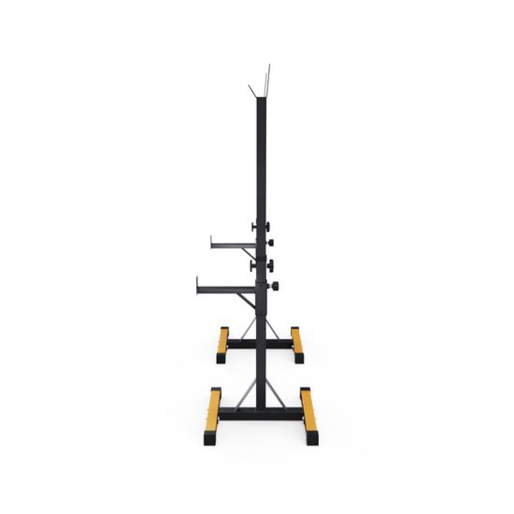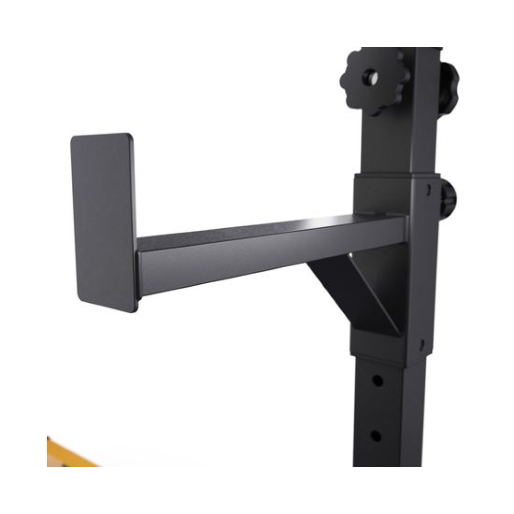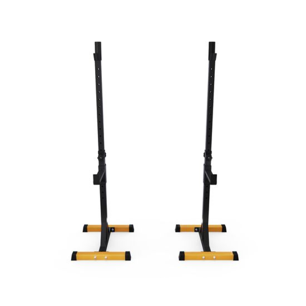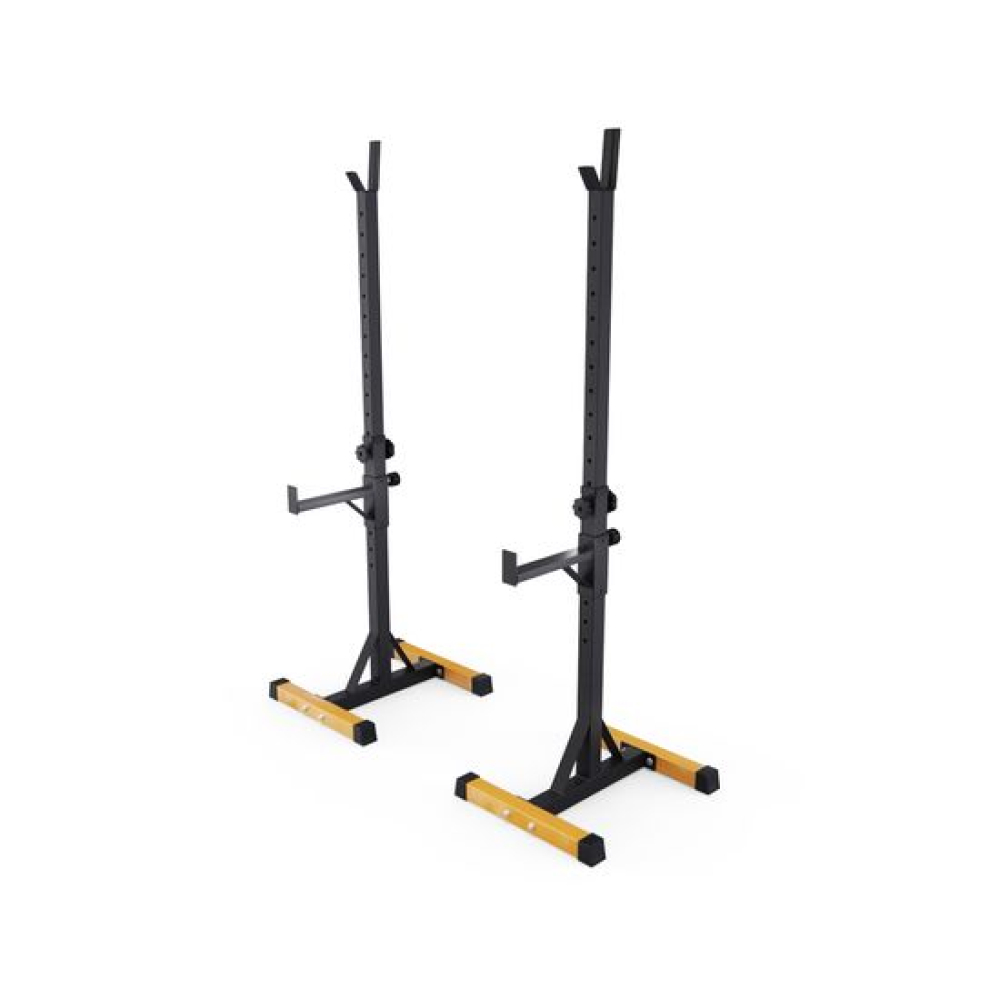 Стойки для штанги с подстраховкой DFC Y-GYM TF-56 – многофункциональные стойки для домашнего спортзала. Серия Y-GYM – это тренажеры в современном дизайне, где динамичный желтый цвет гармонично сочетается с элегантным черным. Продуманная геометрия и контрастное цветовое решение позволят тренажеру гармонично вписаться в любую комнату и стать ярким акцентом вашего интерьера. Это идеальное решение для тех, кто ценит функциональность и эстетику в каждой детали своего дома.Устойчивое основание стойки для приседаний из высокопрочной профильной трубы 45 х 45 х 1,5 мм выдерживает динамическую нагрузку до 120 кг (динамическая нагрузка – нагрузка на элементы конструкции в движении). Стойки подходят для выполнения полного спектра упражнений со штангой: от приседаний и становой тяги до жима лежа.Высота держателей под штангу легко регулируется без дополнительных инструментов. Держатели под штангу регулируются по высоте в диапазоне от 47,5 до 72,5 см нижний и от 99 до 169 см верхний уровень. 15 уровней на верхних ручках и 6 уровней на нижних с шагом 4 см.Две отдельные стойки для жима позволяют установить их на любом удобном расстоянии друг от друга. Нескользящие ножки надежно устанавливаются на полу и не царапают поверхность.