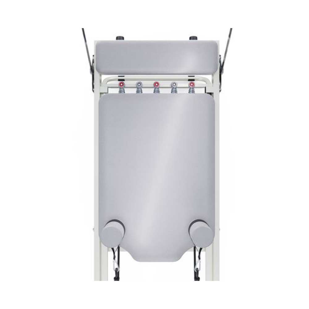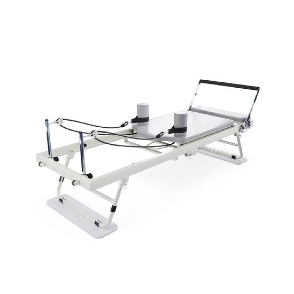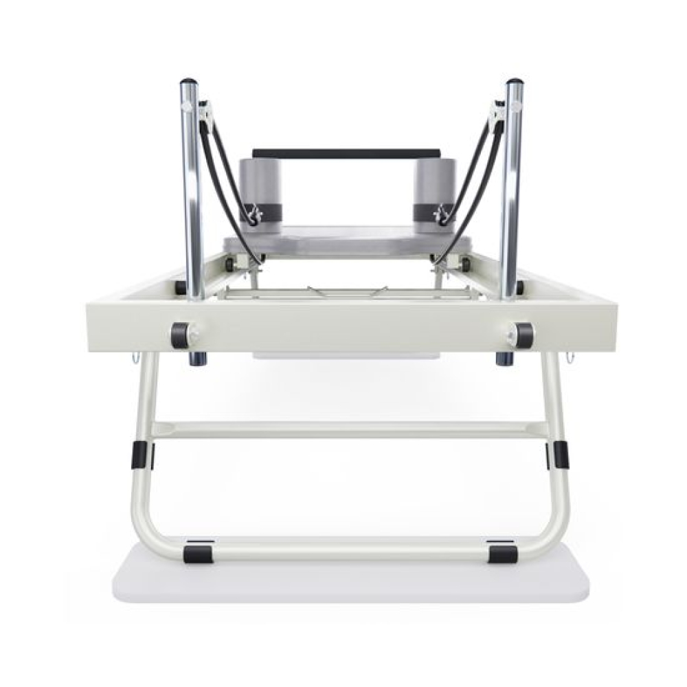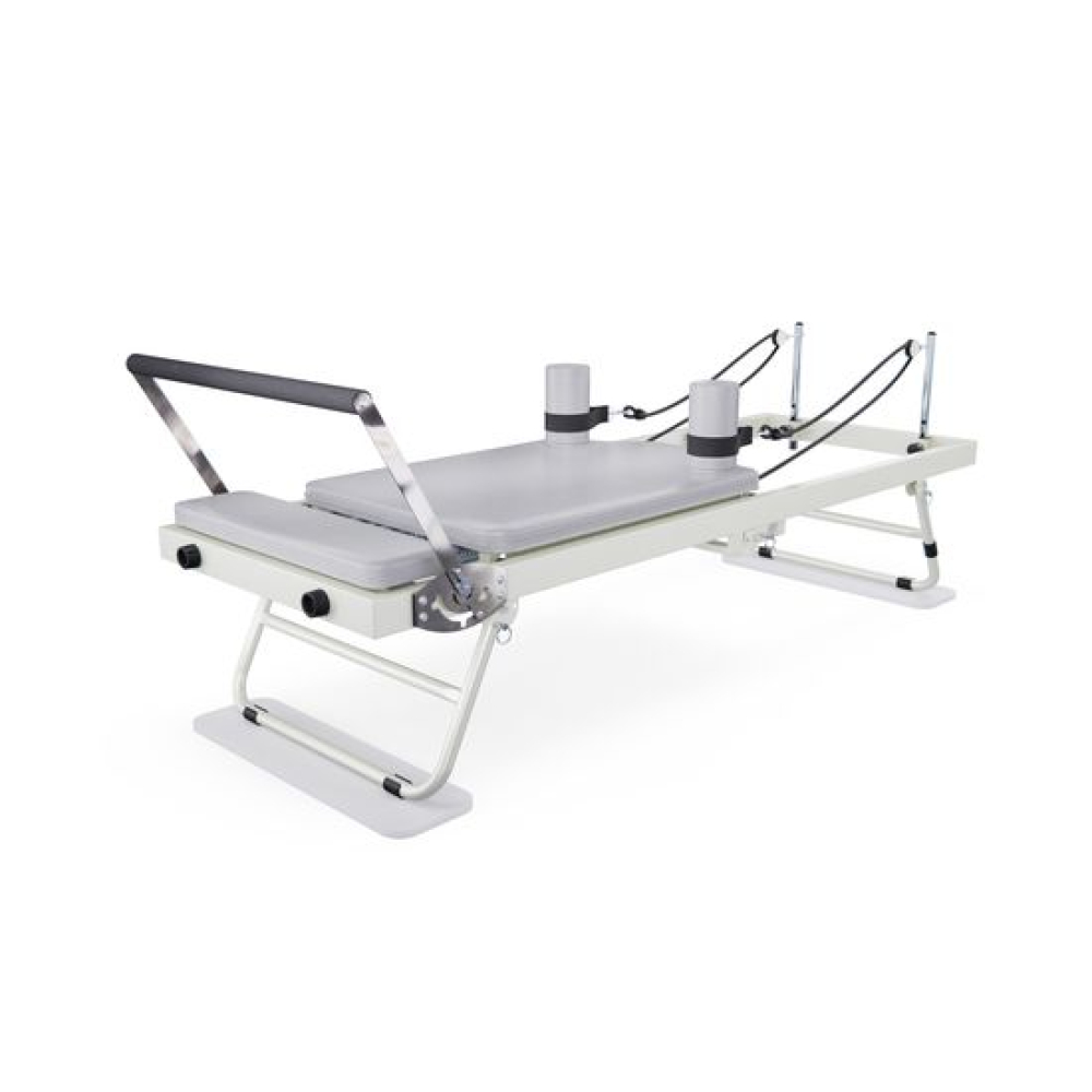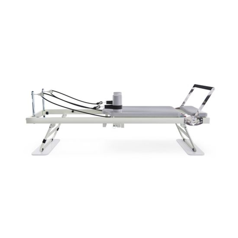 Стол для пилатеса (реформер) DFC PLT07 — компактный тренажёр для домашнего пилатеса. Это идеальный выбор для тех, кто хочет заниматься пилатесом в домашних условиях. Тренажёр сочетает в себе функциональность профессионального оборудования и компактность, позволяя проводить полноценные тренировки без необходимости посещения студии. Отличие реформера от силовых тренажеров в том, что его основа – каретка / нестабильная опора, которая практически не закреплена и постоянно движется во время тренировки. Это вынуждает держать мышцы в дополнительном напряжении и сохранять баланс, что быстрее делает тело гибким, сильным, красивым и гармоничным. Подходит для начинающих и продвинутых пользователей, а также для растяжки или восстановления после травм.Реформер выполнен из высококачественных материалов и рассчитан на рост пользователя до 175 см и максимальный вес 120 кг. Размер подвижного сиденья 84,5 х 49 х 5 см обеспечивает комфорт при выполнении различных упражнений, а его особая форма помогает сохранить правильное положение головы и шеи. Расстояние от сиденья до пола — 44 см, что делает посадку максимально удобной.Основное преимущество данной модели — возможность сложить тренажёр для экономии пространства. Размер в сложенном виде составляет всего 30 х 57,5 х 114 см, что позволяет легко хранить его дома даже в ограниченном пространстве.Реформер оснащён 5-ю пружинами для настройки уровня сопротивления и регулировкой поручня в 3-х положениях. Эспандеры расширяют диапазон упражнений, позволяя проработать все группы мышц. Размер подставки под ноги — 48 х 15 х 5,5 см — обеспечивает устойчивость и комфорт во время занятий. 2 защитные подкладки под ножки тренажера предотвращают скольжение и появление царапин на поверхности пола.Реформер DFC PLT07 универсален, удобен и эффективен, он позволяет максимально проработать мышцы, снимая при этом лишнюю нагрузку с позвоночника и суставов. Тренажёр будет полезен пользователям, желающим улучшить осанку, укрепить мышцы кора, повысить гибкость и снизить уровень стресса. Он также подойдёт для восстановления после травм, а также людям, ведущим малоподвижный образа жизни.