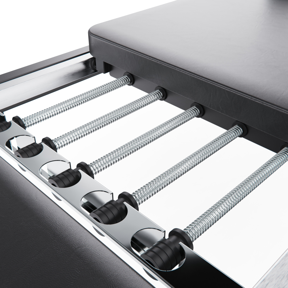 Стол для пилатеса (реформер) DFC SQ-S1001A — это современный и многофункциональный тренажёр, предназначенный для эффективных и комфортных занятий пилатесом дома. Он позволяет комплексно прорабатывать основные группы мышц, включая мышцы рук и плеч, грудные мышцы, спину, пресс и мышцы кора, ягодицы, бёдра и мышцы ног. Тренажёр выполнен на прочной и устойчивой стальной раме, обеспечивающей надёжность и стабильность во время тренировок. Конструкция рассчитана на максимальный вес пользователя до 125 кг и подходит для людей с ростом от 150 до 190 см, что делает реформер универсальным решением для домашнего использования всей семьёй. Основой тренажёра является пружинная система нагрузки с 5 уровнями сопротивления, обеспечивающая плавное и контролируемое усилие во время выполнения упражнений. Механическая регулировка нагрузки позволяет легко адаптировать интенсивность тренировок под уровень подготовки пользователя — от мягкой растяжки до силовых упражнений. Эспандеры длиной 68,5 см расширяют функциональность и позволяют разнообразить тренировки для рук, ног и корпуса. Складная модель делает стол для пилатеса удобным решением для дома и квартиры, позволяя адаптировать пространство под тренировки. Встроенные транспортировочные ролики обеспечивают лёгкое перемещение тренажёра по полу, упрощая смену места занятий и повседневное использование. Стол для пилатеса (реформер) DFC SQ-S1001A — это надёжное и функциональное оборудование для домашних тренировок, сочетающее безопасность и удобство хранения. Отличный выбор для тех, кто ищет реформер для пилатеса для дома, подходящий как для начинающих, так и для опытных пользователей. Гарантия на детали подверженные естественному износу в процессе эксплуатации — до 6 месяцев с момента установки тренажера при условии регулярного планового ТО. Важно: гарантия не распространяется на преждевременный износ из-за чрезмерной эксплуатации тренажера.