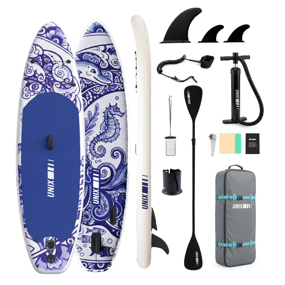 Сап-борды UNIX для профессионального и любительского сапсерфинга. Сапборд UNIX Line - идеальное сочетание активного отдыха и спокойного времяпрепровождения на воде! Надувной двухслойный SUP-борд станет вашим верным спутником в любых приключениях на воде! Прогулочная САП-доска предназначена для катания как на высокой волне, так и на спокойной глади. Высокие стандарты качества обеспечивают устойчивость, жесткость, долговечность и портативность. Идеально подойдет не только для опытных райдеров, но и для новичков. SUP-борд доска обладает исключительной прочностью и легкостью, благодаря использованию высококачественных материалов. Уникальная конструкция доски обеспечивает стабильность и управляемость даже в самых непредсказуемых условиях.Сочетание эргономичного дизайна и передовых технологий делает SUP-доску идеальным выбором как для начинающих любителей SUP-серфинга, так и для опытных профессионалов. Легко надувается и быстро собирается, что позволяет вам быстро выйти на воду и наслаждаться каждым мгновением.Большое количество ярких дизайнов позволит выбрать надувную доску, которая подчеркнет вашу индивидуальность и будет мотивировать вас к новым свершениям!Почувствуйте себя свободным с безопасным и стильным SUP-бордом от UNIX Line, наслаждаясь кристально чистой водой и живописными пейзажами! Преимущества надувных сап-бордов Семейное сап-путешествиеСап-доска подходит для водных путешествий всей семьей. Подходит для передвижения с детьми и домашними животными. В комплектацию входит страховочный лиш – это гарантия безопасности и комфорта во время сапсерфинга, кайтинга или виндсерфинга. Он обеспечивает надежное соединение между ногой спортсмена и доской. Благодаря этому серфер может сосредоточиться на безмятежной прогулке, выполнении трюков или повышении своей техники на доске, ни о чем не беспокоясь. Для профессионаловSUP-борд устойчив на воде благодаря гидродинамическим свойствам. Надувная, широкая конструкция с заостренным носом способствует быстрому, легкому ходу по прямой траектории. Модель с повышенной грузоподъемностью рассчитана на максимальный вес в 200 килограммов и подойдет для всей семьи. САП-доски UNIX оснащены антискользящим покрытием и обладают повышенными износостойкими и водоотталкивающим свойствами. Это покрытие не боится воздействия агрессивных сред, обладает прекрасным сцеплением даже при попадании большого количества влаги и служит дополнительной защитой поверхности. БезопасностьДоска сап-борд изготавливается из прочного двухслойного армированного ПВХ с плотностью 1000 г/м2 методом промышленного сваривания. По периметру доска усилена двойным слоем ПВХ. Надежна и ударопрочная конструкция с устойчивостью к проколам и механическим повреждениям. Качество SUP досок соответствует международным стандартам. Мы используем только лучшие сертифицированные материалы, это гарантирует безопасность и долговечность. На все SUP доски распространяется фирменная гарантия 2 года. ДизайнСап-борды разнообразной цветовой гаммы в ярких тонах для девушек и брутальной расцветки для мужчин. Каждая доска — это отражение вашего настроения и стиля: от нежных пастельных оттенков для спокойных прогулок до динамичных и насыщенных цветов для смелых и активных. Наши сап-борды — это не просто спортивный инвентарь, а яркий а