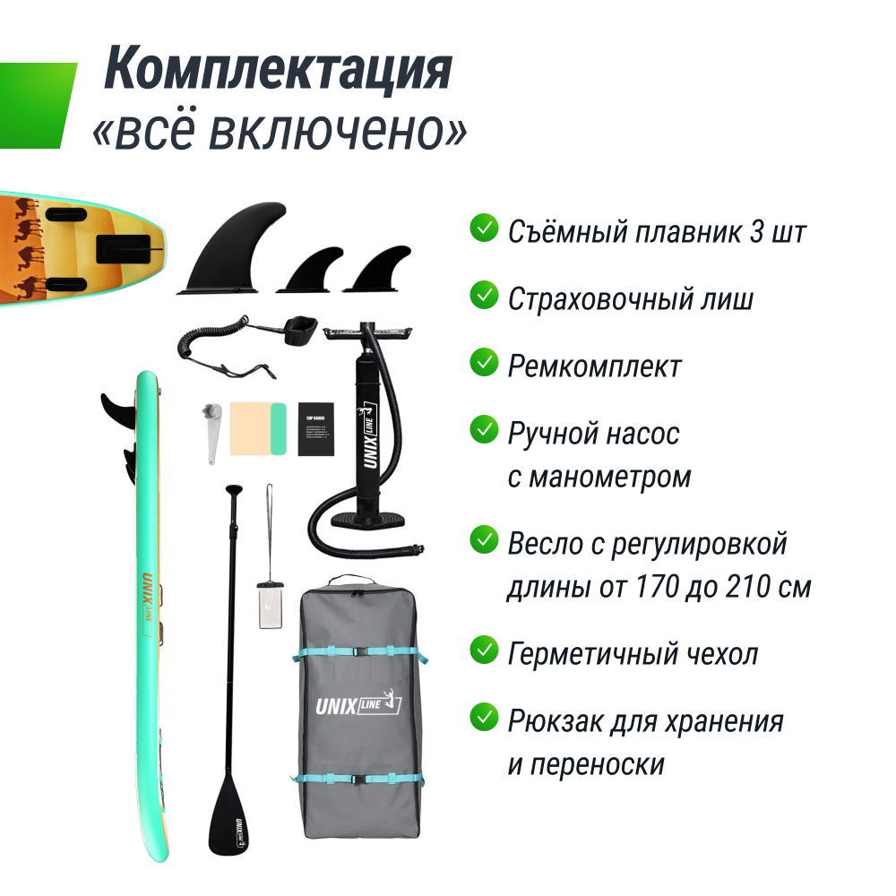 Сап-борды UNIX для профессионального и любительского сапсерфинга. Сапборд UNIX Line - идеальное сочетание активного отдыха и спокойного времяпрепровождения на воде! Надувной двухслойный SUP-борд станет вашим верным спутником в любых приключениях на воде! Прогулочная САП-доска предназначена для катания как на высокой волне, так и на спокойной глади. Высокие стандарты качества обеспечивают устойчивость, жесткость, долговечность и портативность. Идеально подойдет не только для опытных райдеров, но и для новичков. SUP-борд доска обладает исключительной прочностью и легкостью, благодаря использованию высококачественных материалов. Уникальная конструкция доски обеспечивает стабильность и управляемость даже в самых непредсказуемых условиях.Сочетание эргономичного дизайна и передовых технологий делает SUP-доску идеальным выбором как для начинающих любителей SUP-серфинга, так и для опытных профессионалов. Легко надувается и быстро собирается, что позволяет вам быстро выйти на воду и наслаждаться каждым мгновением.Большое количество ярких дизайнов позволит выбрать надувную доску, которая подчеркнет вашу индивидуальность и будет мотивировать вас к новым свершениям!Почувствуйте себя свободным с безопасным и стильным SUP-бордом от UNIX Line, наслаждаясь кристально чистой водой и живописными пейзажами! Преимущества надувных сап-бордов Семейное сап-путешествиеСап-доска подходит для водных путешествий всей семьей. Подходит для передвижения с детьми и домашними животными. В комплектацию входит страховочный лиш – это гарантия безопасности и комфорта во время сапсерфинга, кайтинга или виндсерфинга. Он обеспечивает надежное соединение между ногой спортсмена и доской. Благодаря этому серфер может сосредоточиться на безмятежной прогулке, выполнении трюков или повышении своей техники на доске, ни о чем не беспокоясь. Для профессионаловSUP-борд устойчив на воде благодаря гидродинамическим свойствам. Надувная, широкая конструкция с заостренным носом способствует быстрому, легкому ходу по прямой траектории. Модель с повышенной грузоподъемностью рассчитана на максимальный вес в 200 килограммов и подойдет для всей семьи. САП-доски UNIX оснащены антискользящим покрытием и обладают повышенными износостойкими и водоотталкивающим свойствами. Это покрытие не боится воздействия агрессивных сред, обладает прекрасным сцеплением даже при попадании большого количества влаги и служит дополнительной защитой поверхности. БезопасностьДоска сап-борд изготавливается из прочного двухслойного армированного ПВХ с плотностью 1000 den методом промышленного сваривания. По периметру доска усилена двойным слоем ПВХ. Надежна и ударопрочная конструкция с устойчивостью к проколам и механическим повреждениям. Качество SUP досок соответствует международным стандартам. Мы используем только лучшие сертифицированные материалы, это гарантирует безопасность и долговечность. На все SUP доски распространяется фирменная гарантия 2 года. ДизайнСап-борды разнообразной цветовой гаммы в ярких тонах для девушек и брутальной расцветки для мужчин. Каждая доска — это отражение вашего настроения и стиля: от нежных пастельных оттенков для спокойных прогулок до динамичных и насыщенных цветов для смелых и активных. Наши сап-борды — это не просто спортивный инвентарь, а яркий ак