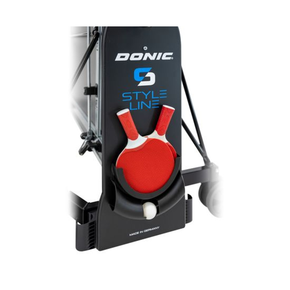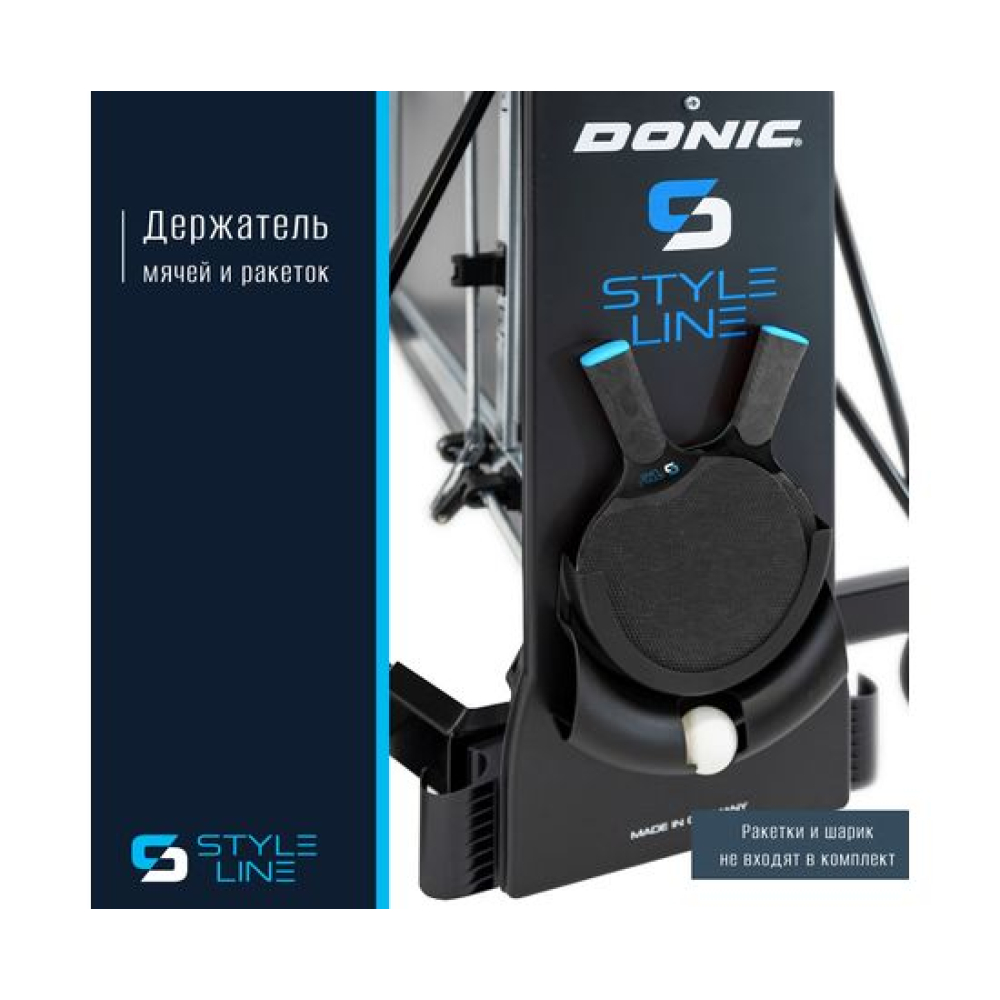 Премиум-стол для настольного тенниса DONIC OUTDOOR STYLE 1000. Этот стол отличается высоким качеством и превосходными игровыми характеристиками, что делает его идеальным выбором для профессиональных игроков и любителей настольного тенниса.Одним из ключевых преимуществ стола является его прочная поверхность из меламина, которая имеет толщину 6 мм и выполнена в антрацитовом цвете. Эта поверхность оптимизирована с использованием технологии меламиновой поверхности, что обеспечивает долговечность и отличные игровые свойства.Основная рама стола покрыта порошковой краской для долговременной защиты поверхности от коррозии и износа. Рама изготовлена из прочной профильной трубы размером 50х30 мм, что придает столу устойчивость и стабильность.Стол оснащен регулируемой по высоте сеткой для настольного тенниса, что позволяет адаптировать ее под любого игрока. Ножки стола также регулируются по высоте для обеспечения максимального комфорта и удобства игры.Для удобного хранения ракеток и мячей предусмотрен специальный держатель, который входит в комплект поставки. Стол оснащен четырьмя прорезиненными двойными роликами с плавным ходом диаметром 128 мм, которые обеспечивают легкое перемещение стола.Также стол оборудован механизмом защиты от опрокидывания, который включает систему двойной блокировки для дополнительной безопасности.Данный стол для настольного тенниса произведен в Германии, что гарантирует его высокое качество и соответствие всем стандартам. Если вы ищете надежный и удобный стол для игры в настольный теннис, то модель DONIC OUTDOOR STYLE 1000 станет отличным выбором.Ракетки и шарики приобретаются отдельно.