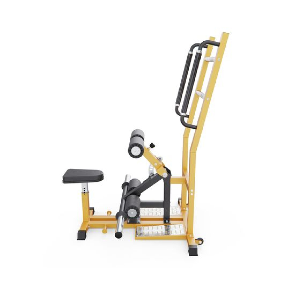 Тренажер для полуприседа DFC STONERISE D005 – это профессиональное решение для домашних тренировок, позволяющее эффективно развивать мышцы ног и ягодиц. Благодаря надежной конструкции и удобным регулировкам, тренажер подходит для пользователей разного уровня подготовки и гарантирует комфорт во время занятий.Конструкция выдерживает вес до 300 кг, а максимальная нагрузка на штангу до 200 кг. Каркас выполнен из прочной стали с профилем 70 х 50 х 2 мм, что обеспечивает высокую устойчивость даже при максимальной нагрузке. Размер тренажера в рабочем виде составляет 116,3 х 127,4 х 143,2 см, что делает его устойчивым и удобным для выполнения упражнений.Сиденье размером 32 х 26 см регулируется по высоте в 5 положениях, что позволяет подстроить тренажер под индивидуальные особенности спортсмена. Для фиксации ног предусмотрены удобные валики длиной 21 см и диаметром 11 см, также с 5 уровнями регулировки. Валики изготовлены из плотной пены и покрыты износостойким полиуретаном, что обеспечивает комфорт и долговечность.Гарантия на детали подверженные естественному износу в процессе эксплуатации — до 6 месяцев с момента установки тренажера при условии регулярного планового ТО. Важно: гарантия не распространяется на преждевременный износ из-за чрезмерной эксплуатации тренажера.