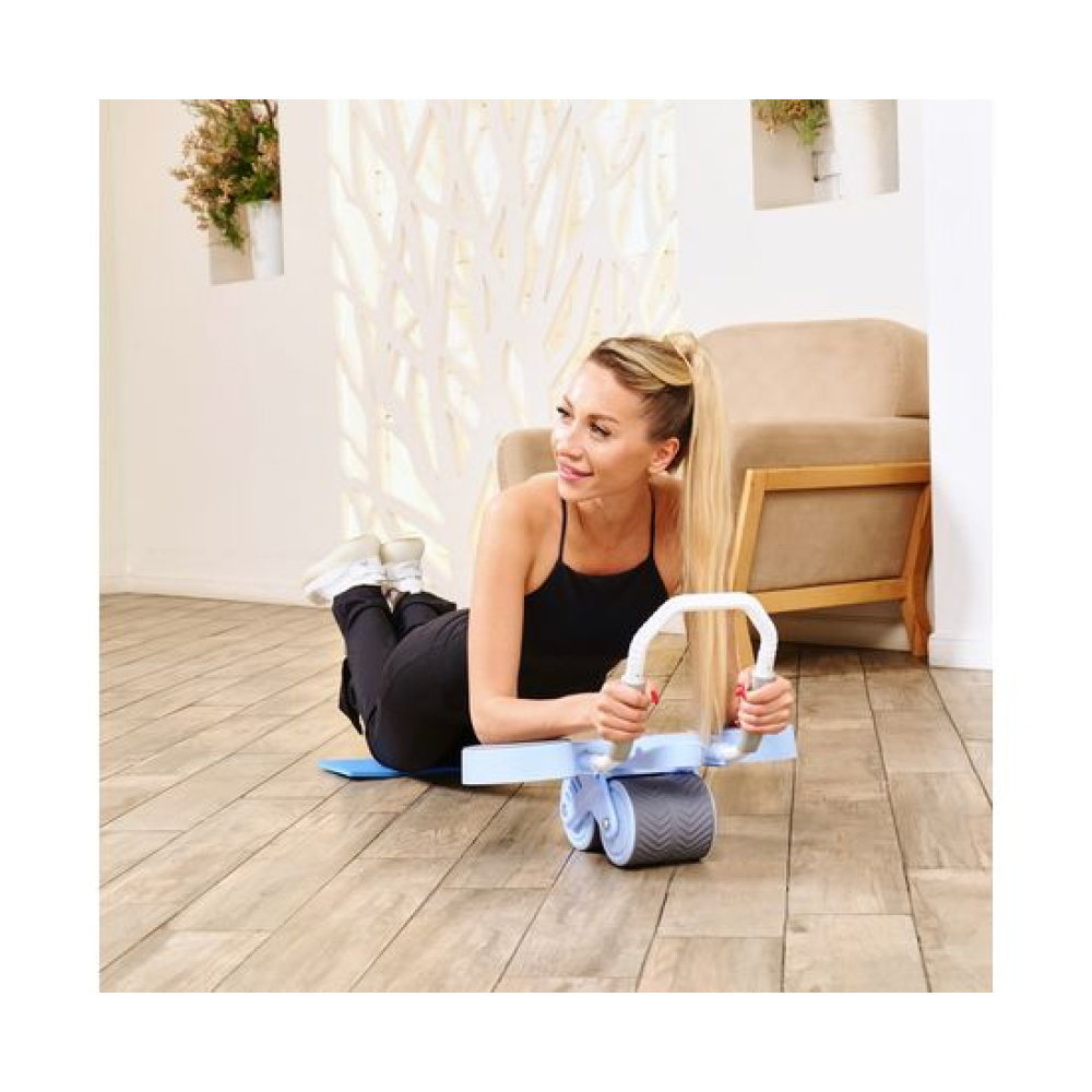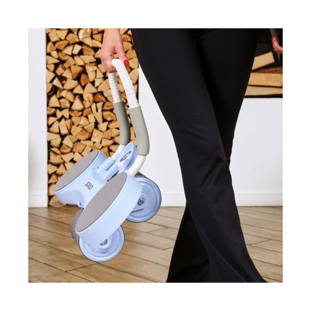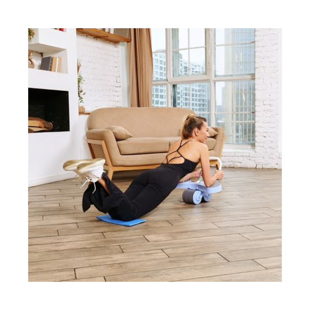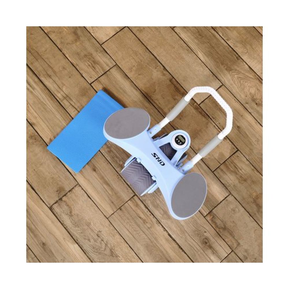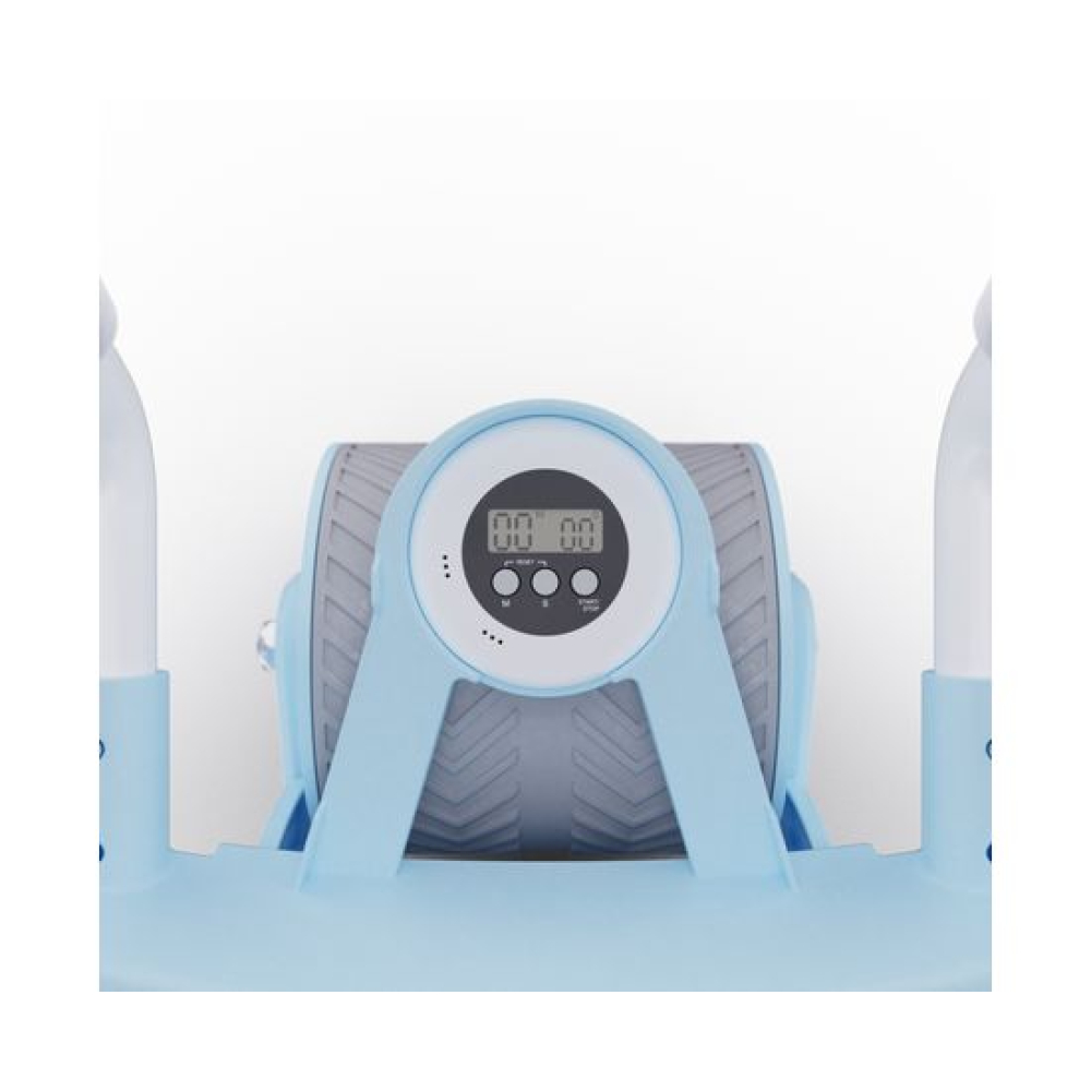 Тренажёр для пресса AB Roller голубого цвета — это идеальное решение для тех, кто хочет укрепить мышцы пресса и улучшить свою физическую форму.Он оснащён съёмным поручнем, который обеспечивает удобство использования и хранения. Поручень диаметром 2,1 см регулируется на 2 уровня по длине. В комплекте поставляется мягкий мат для коленей размерами 34 х 17 см и толщиной 6 мм.Монохромный LCD-дисплей диаметром 6,5 см отображает время тренировки. Дисплей работает от батарейки LR1130, не входит в комплект. Между подлокотниками располагается подставка под смартфон: разнообразьте свои тренировки просмотром фильма или подкаста.AB Roller имеет двойной ролик из двух колёс шириной 117 мм, что обеспечивает стабильность и комфорт во время выполнения упражнений. Автоматическая система возврата Healthy Back гарантирует безопасность тренировки, предотвращая падение спортсмена вперёд и защищая его от растяжения мышц.Анатомически правильное расположение поручней способствует корректной технике выполнения упражнений, что снижает риск получения травм. Тренажёр воздействует на различные группы мышц, включая бицепс, грудные мышцы, спину, ягодицы и ноги, делая вашу тренировку более эффективной и разнообразной.