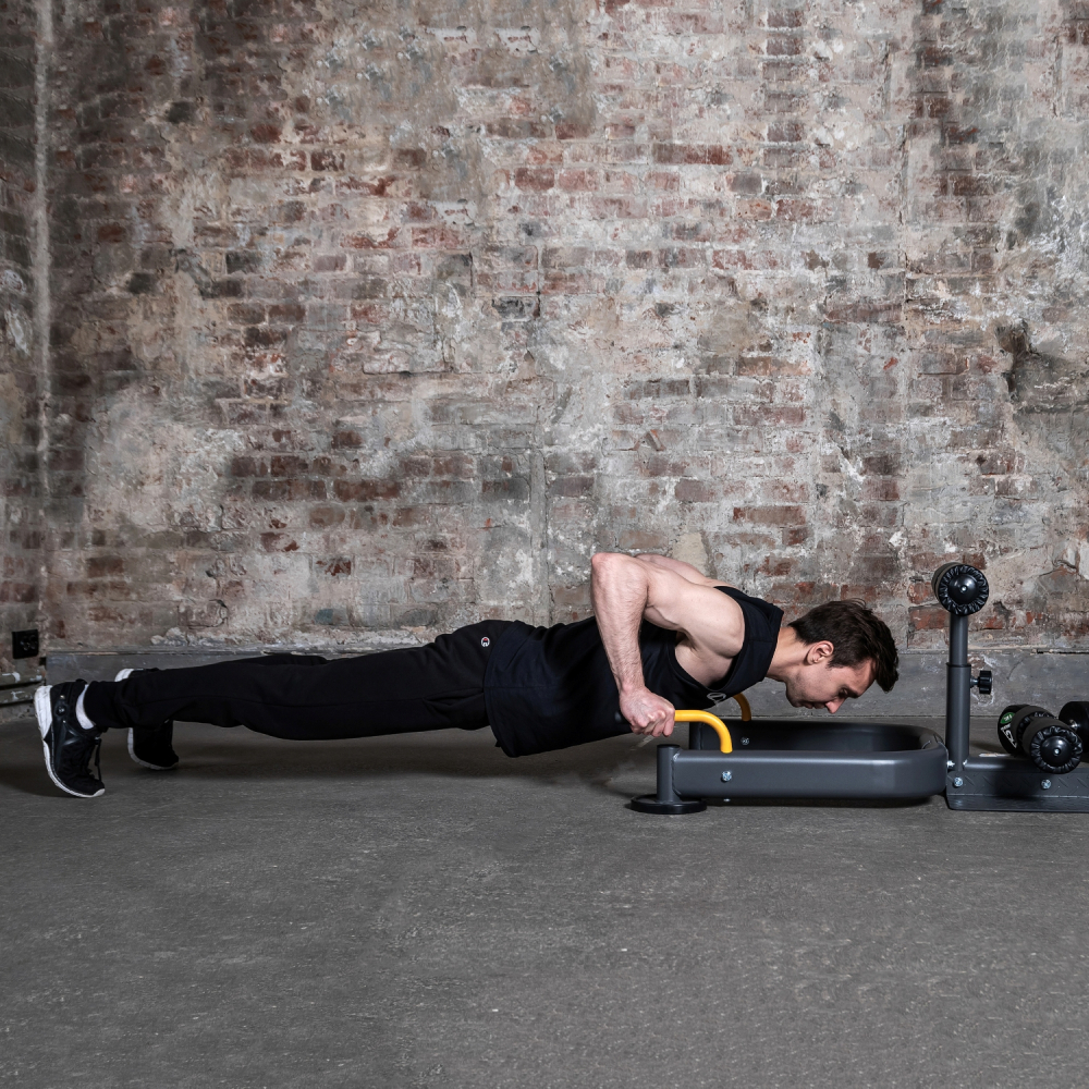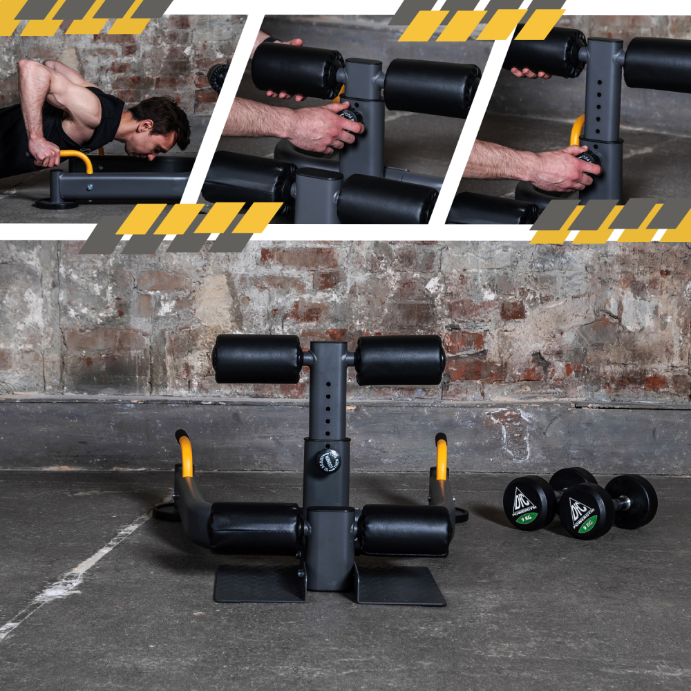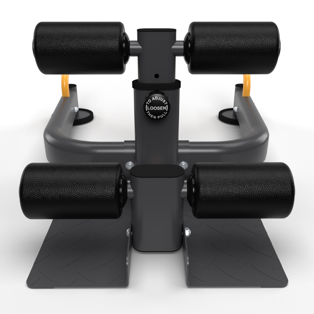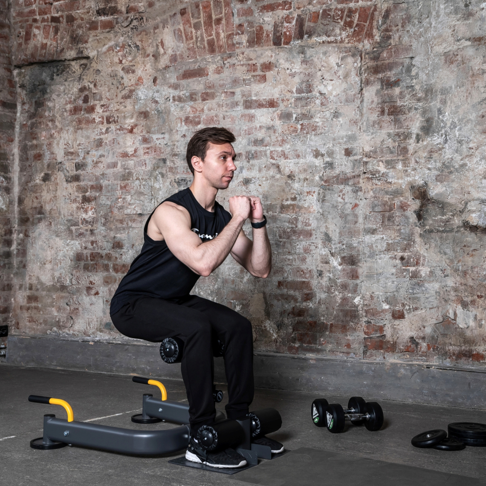 Тренажёр для приседаний STONERISE EasySquat предназначен как для новичков, так и для продвинутых пользователей. Приседания на данном тренажёре меньше нагружают коленные суставы, в результате чего тренажёр для приседаний считается более безопасным, чем обычные приседания и разгибания ног. Упражнения на тренажёре EasySquat, укрепляют квадрицепсы, мышцы кора и сгибатели бедра, а также улучшают баланс. Отжимания Помимо приседаний, с помощью поручней диаметром 25 мм и толщиной 1,5 мм, расположенных в задней части EasySquat, вы сможете выполнять отжимания. Таким образом, вы проработаете несколько групп мышц с помощью одного тренажёра. Максимальная нагрузка на ручки для отжиманий допустима до 150 кг. Их длина составляет 20 см. Регулировка валиков Ограничительные валики длиной 17,5 см регулируются в 7-ми положениях от 35,5 до 52,5 см. Высота между валиками, фиксирующими стопы, и опорной рифлёной платформой составляет 12,5 см, что оптимально для любой спортивной обуви. Надёжная фиксация Фиксирующие и поддерживающие валики находятся друг от друга на расстоянии 18,95 см, а их диаметр составляет 10,5 см. Максимальная нагрузка на валики до 150 кг. Прочное основание Платформа для ног толщиной 3,5 мм способна выдержать вес пользователя до 200 кг. Рифлёное покрытие обеспечит устойчивость во время выполнения приседаний. Прочное основание тренажёра размерами 50 х 100 х 2 мм.