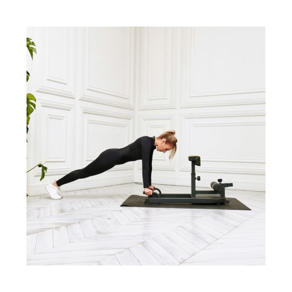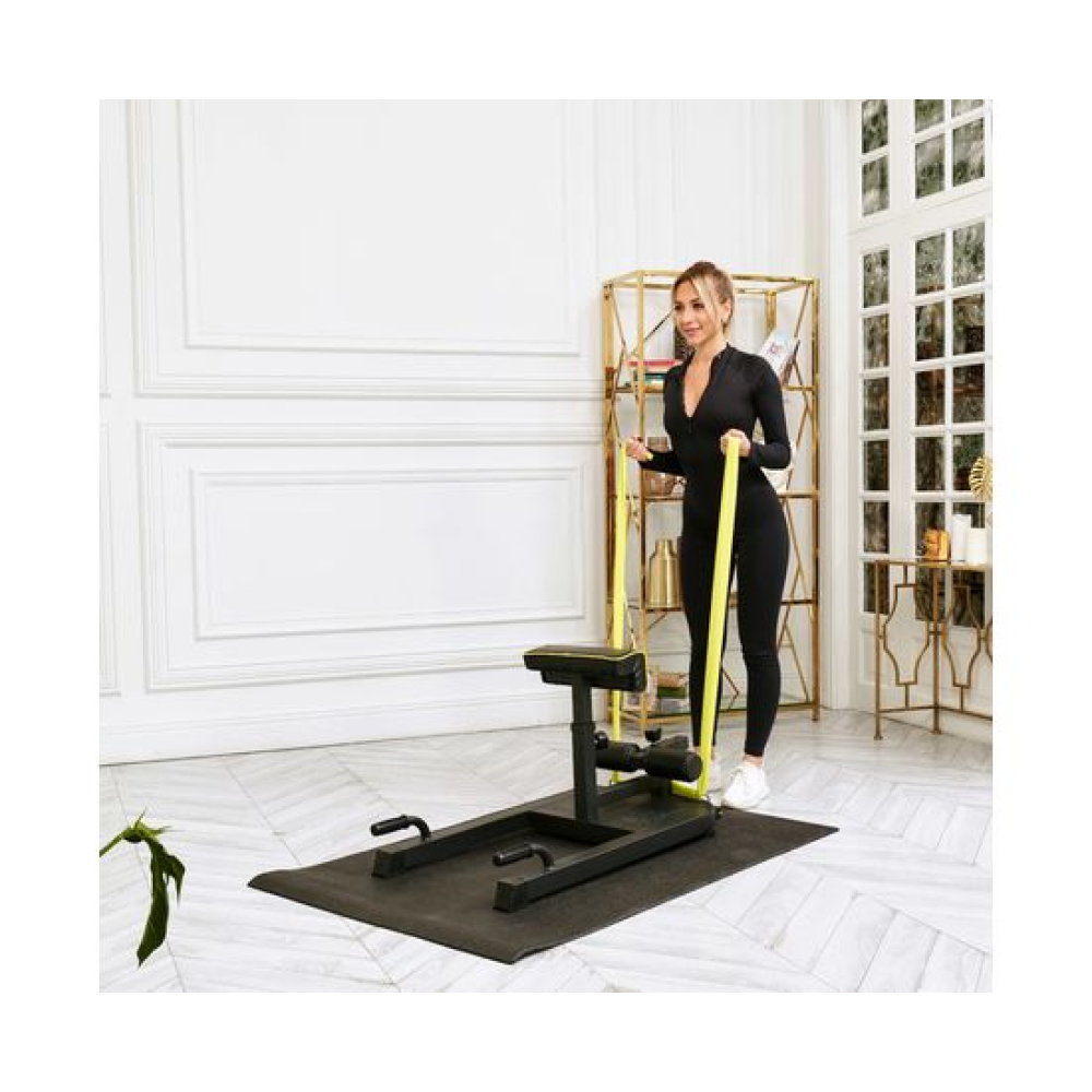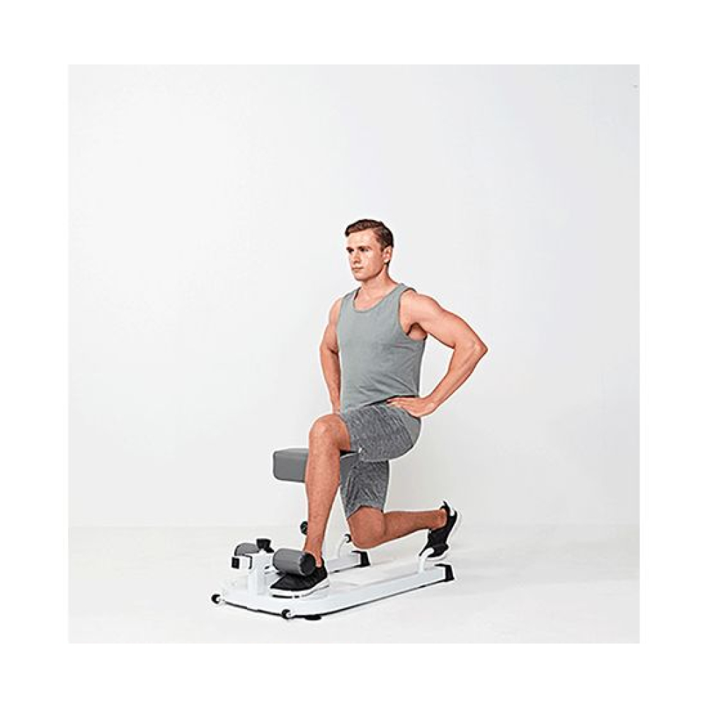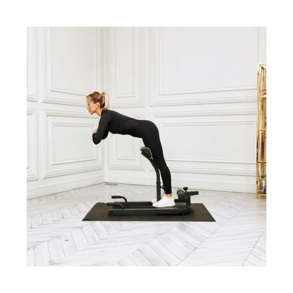 Тренажер для приседаний LEXPA - это многофункциональный тренажер, который поможет укрепить мышцы ног, ягодиц, спины и пресса. С помощью этого тренажера можно выполнять различные упражнения, такие как приседания, гиперэкстензия и отжимания. Тренажёр выдерживает нагрузку до 100 кг.Регулируемые по высоте валики длиной 75 см позволяют настроить тренажер под любой рост и уровень подготовки. Высота валиков регулируется на 4 уровня от 13 до 23 см от пола.В комплекте с тренажером идут две подушки: одна для выполнения приседаний размером 35 х 12 х 10 см с регулировкой высоты на 6 уровнях, а другая для гиперэкстензии размером 35 х 15 х 10 см с регулировкой на 5 уровнях. Высота подушек от пола регулируется от 68 до 75 см. Рифлёная платформа размерами 48 х 38 х 5 см защитит ноги от соскальзывания во время тренировки. Поручни для отжиманий длиной 10 см.Для дополнительной нагрузки в комплекте с тренажёром поставляется эластичная лента яркого салатового цвета. Она крепится за металлические крючки на корпусе.Транспортировочные ролики облегчают перемещение тренажера по комнате, а компактный размер позволяет легко хранить его в любом месте. С помощью тренажера LEXPA можно выполнять множество различных упражнений, таких как приседания с отягощением или без него, гиперэкстензия, отжимания, Sissy-приседания и многое другое.