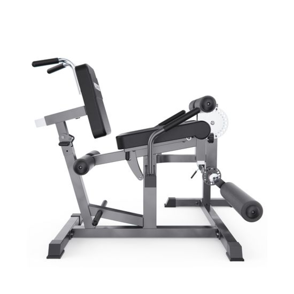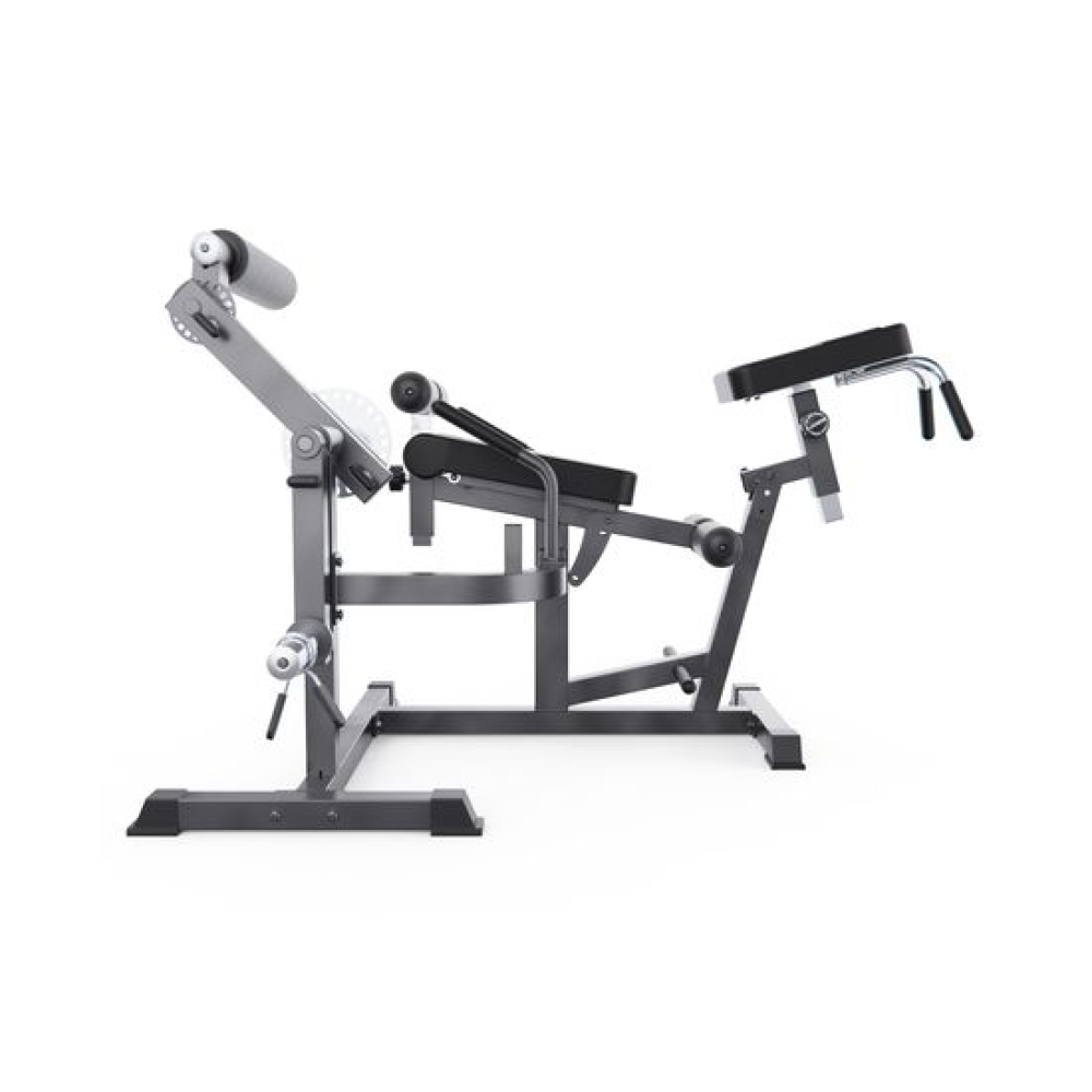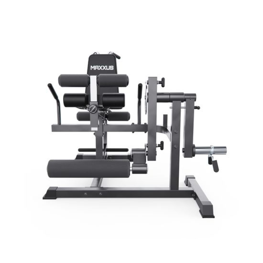 Тренажер для сгибания и разгибания ног MAXXUS — отличное и универсальное решение для домашнего зала. Он подходит для тренировки ног, спины и мышц пресса. Благодаря возможности выполнять разгибания ног, сгибания сидя и лёжа, гиперэкстензию и даже скручивания с отягощением, вы получаете полноценную тренировку нижней части тела. Компактные размеры делают его идеальным для домашнего использования.Вес тренажера — 47 кг, а максимальная допустимая нагрузка — 150 кг. Рама тренажера выполнена из стальной трубы с профилями 70 х 50 х 1,5 мм и 50 х 50 х 1,8 мм. Тренажер оснащен водонепроницаемой обивкой и толстыми валиками для комфортной и долговечной эксплуатации. Диаметр посадочного места под диски — 51 мм (грузы в комплект не входят). В комплект входит пружинный замок для фиксации веса.Индивидуальная настройка тренажера обеспечивает максимальный комфорт и эффективность. Большой диск для регулировки угла наклона руки и ноги имеет 24 уровня, а меньший диск для регулировки голеностопного ролика - 18 уровней. Регулируемые валики (6 уровней), спинка с регулировкой по длине и углу наклона, настраиваемое сиденье позволяют адаптировать тренажер под любые параметры пользователя. Это особенно важно для безопасного выполнения упражнений в домашних условиях.Тренажер для ног MAXXUS сочетает в себе функции сгибания/разгибания ног и римского стула, что делает его универсальным для домашнего фитнеса. Подходит для начинающих и продвинутых пользователей, позволяя эффективно прорабатывать квадрицепсы, подколенные сухожилия, ягодицы и поясницу с отягощением. Прочная конструкция, гибкая настройка и комфорт — всё, что нужно для качественной силовой тренировки дома.
