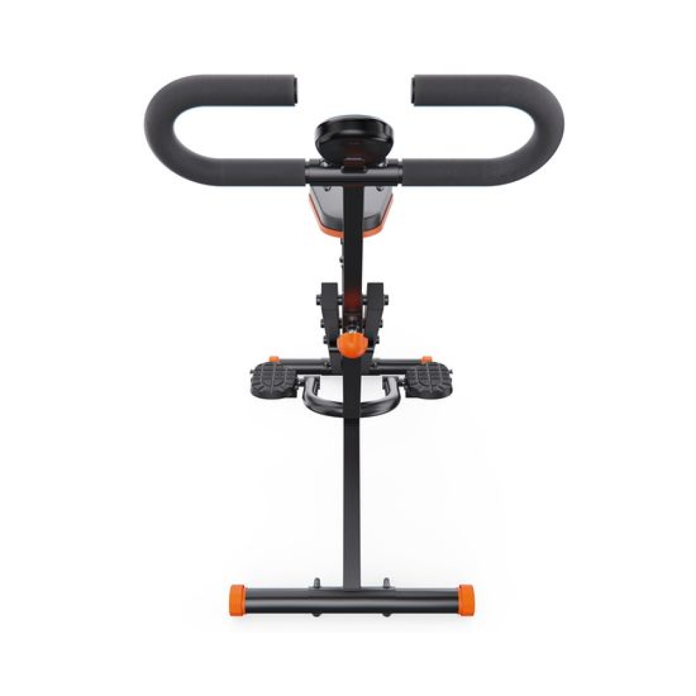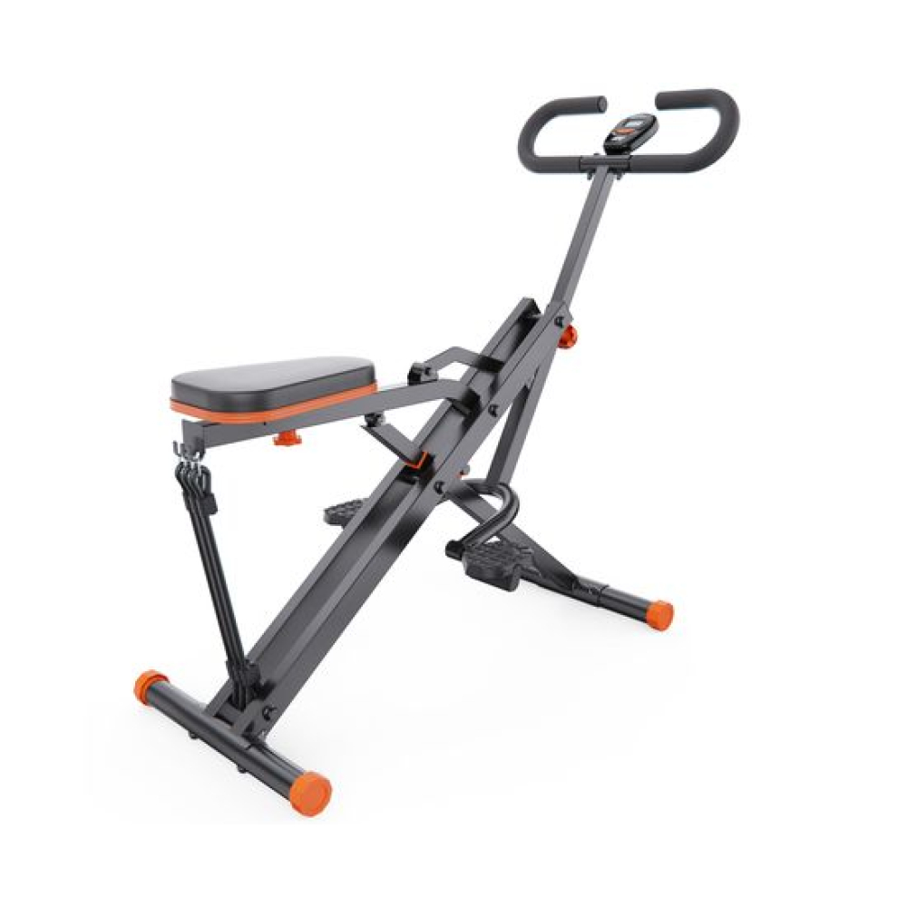 Универсальный тренажёр Rider DFC VT-302/2 для дома — это компактный и функциональный фитнес-тренажёр с встроенным компьютером, идеально подходящий для кардиотренировок, похудения и укрепления мышц всего тела. Его конструкция имитирует езду на лошади (наездник), задействуя мышцы ног, спины, пресса и рук, что делает его отличным решением для домашнего фитнеса.Максимальный вес пользователя — до 120 кг, что говорит о его прочности и надёжности. Сопротивление создаётся с помощью прочных ремней, расположенных между сиденьем и рамой. Для изменения уровня нагрузки можно быстро изменить количество подключённых ремней — это простой и надёжный способ прогрессировать в тренировках без сложных настроек. Механическая регулировка даёт полную свободу в выборе интенсивности.Устройство оснащено регулируемыми по высоте рулем (4 уровня) и горизонтальной регулировкой сиденья (5 уровней), что позволяет подстроить тренажёр под анатомические особенности пользователя. Мягкое эргономичное сиденье из эко кожи обеспечивает комфорт даже при длительных занятиях, а ножки оснащены компенсаторами неровности пола и идеальны для любого помещения.Складная конструкция и встроенные транспортировочные ролики делают тренажёр идеальным выбором для небольшой квартиры. В сложенном виде он занимает минимум пространства (всего 131,3 х 45 х 19,5 см), а в рабочем —Благодаря многофункциональности и простоте использования, тренажёр подойдёт для начинающих и опытных пользователей. Он поможет развить выносливость, сжечь калории, укрепить мышцы кора, бедёр и рук — всё это без лишней нагрузки на суставы.