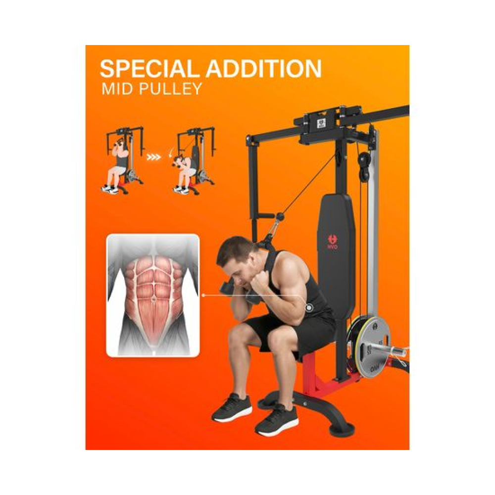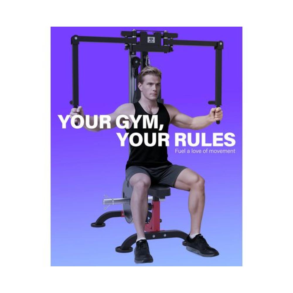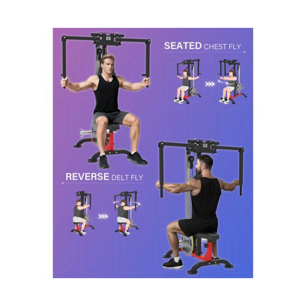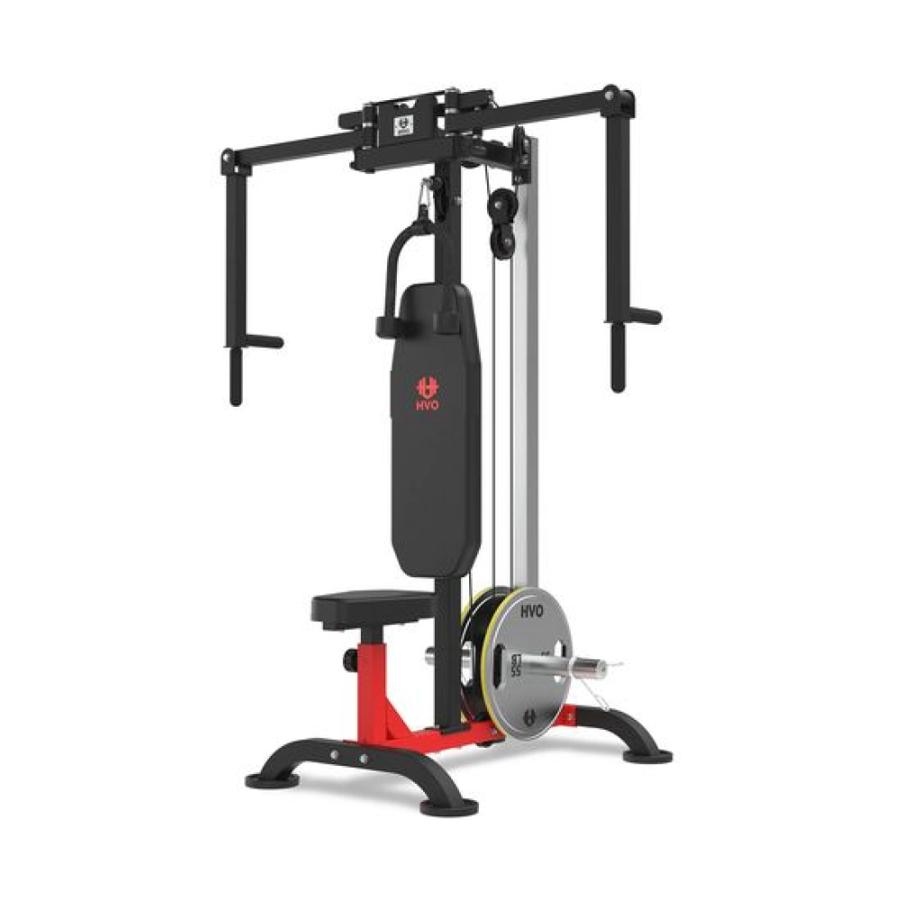 Тренажер сведение/разведение рук, верхняя тяга DFC D2042A— надёжный домашний тренажёр для полноценной силовой тренировки всех групп мышц. Конструкция включает скользящий противовес, тросовые системы для грудного блока и верхней тяги, а также прочные крепёжные элементы.Модель рассчитана на максимальный вес пользователя 130 кг, что делает её подходящей для большинства домашних тренировок. Устройство совместимо с различными типами дисков: для грузовой каретки подходят блины с диаметром отверстия 26, 28 и 30 мм, а для грифа — стандартные 51 мм, обеспечивая универсальность и возможность использования уже имеющихся утяжелителей.Тренажер оснащён утолщённым сиденьем с 4 уровнями регулировки и рукоятками с 6 уровнями регулировки, что позволяет точно подобрать рабочую амплитуду и комфортное положение в зависимости от роста и требований пользователя. В комплект входят трос для бицепса и пружинные зажимы для надёжной фиксации дисков при тренировках.Сиденье и спинка отличаются компактной и удобной формой, обеспечивая комфортную поддержку во время выполнения упражнений и не занимая лишнего пространства. Сиденье и спинка выполнены из ПВХ, регенерированного хлопка и дерева, обеспечивая долговечность и комфорт.Тренажер сведение/разведение рук, верхняя тяга DFC D2042A сочетает функциональность, надёжность и комфорт, позволяя эффективно тренировать мышцы верхней части тела в домашних условиях.Гарантия на детали подверженные естественному износу в процессе эксплуатации — до 6 месяцев с момента установки тренажера при условии регулярного планового ТО. Важно: гарантия не распространяется на преждевременный износ из-за чрезмерной эксплуатации тренажера.