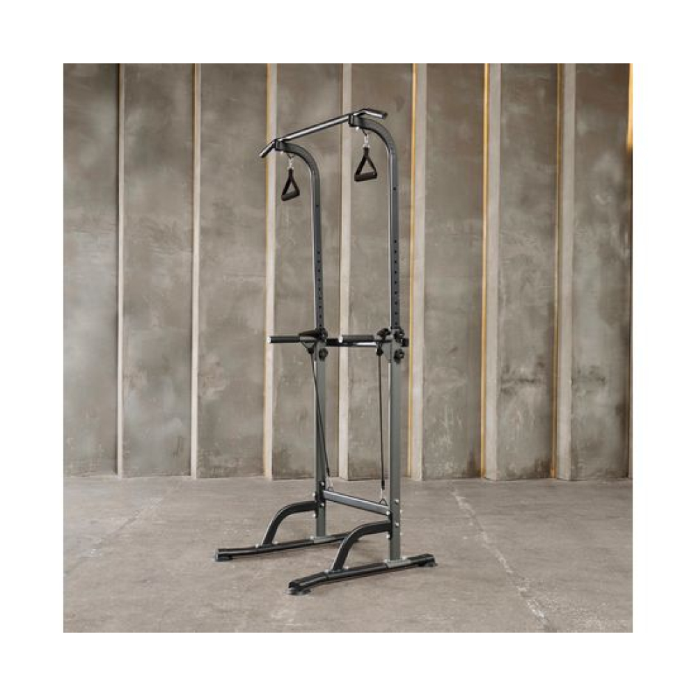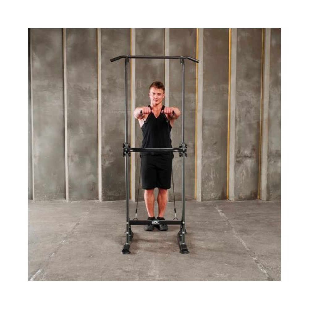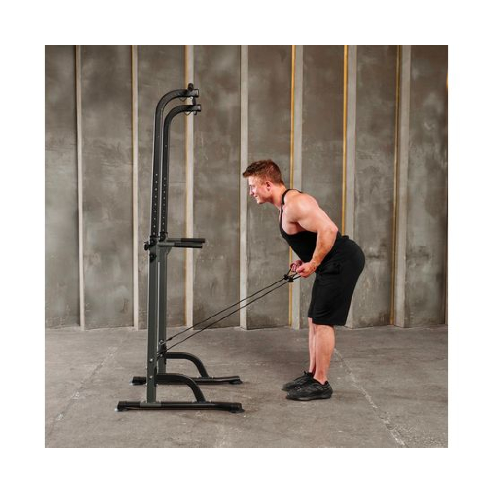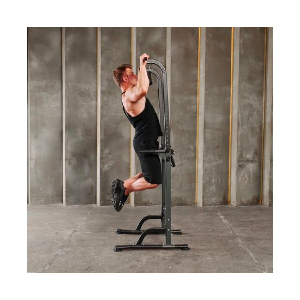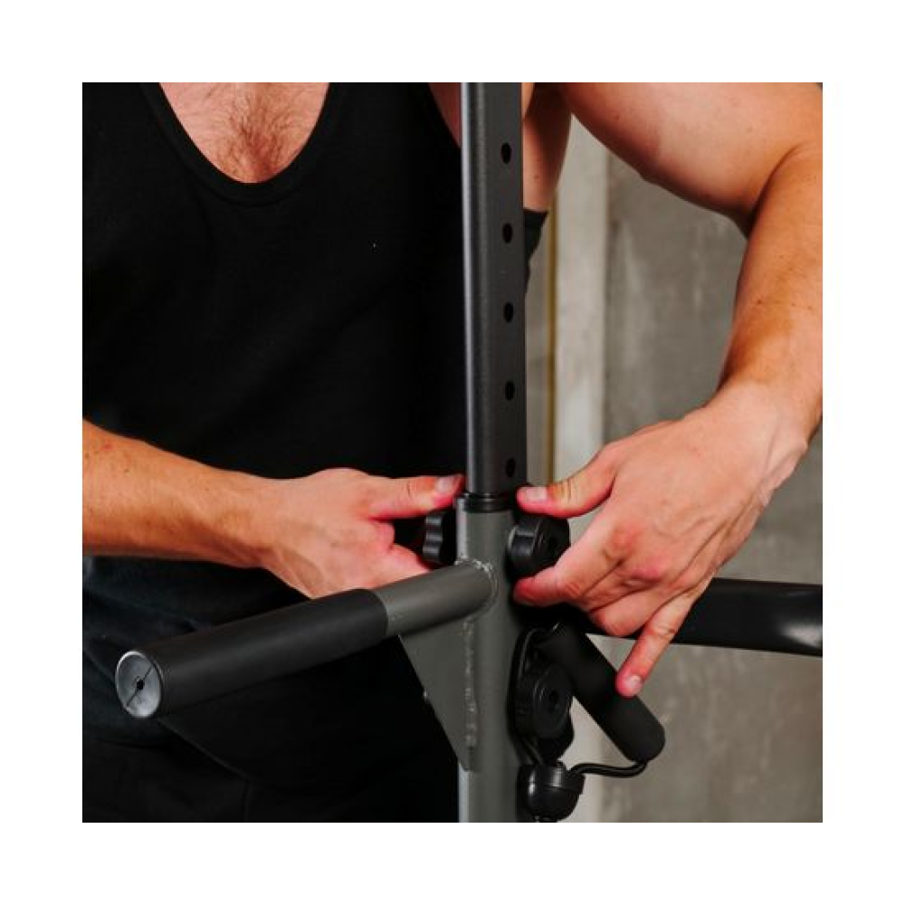 Турник-брусья DFC G007G серого цвета позволяет выполнять упражнения на разные группы мышц. Вес пользователя не должен превышать 120 килограмм.Регулируемая высота турника позволяет заниматься пользователям разного роста в диапазоне от 165 до 210 сантиметров. 10 уровней регулировки обеспечивают точную настройку высоты для максимального комфорта и эффективности тренировок.Профиль рамы изготовлен из прочного стального сплава и имеет размеры 60х30х1,0 мм, что обеспечивает надежность и долговечность конструкции.В комплект поставки входят 2 ручки и 2 эспандера, которые позволяют разнообразить тренировки и увеличить их эффективность. Ручки обеспечивают удобный хват, а эспандеры способствуют укреплению мышц рук, плеч и спины.