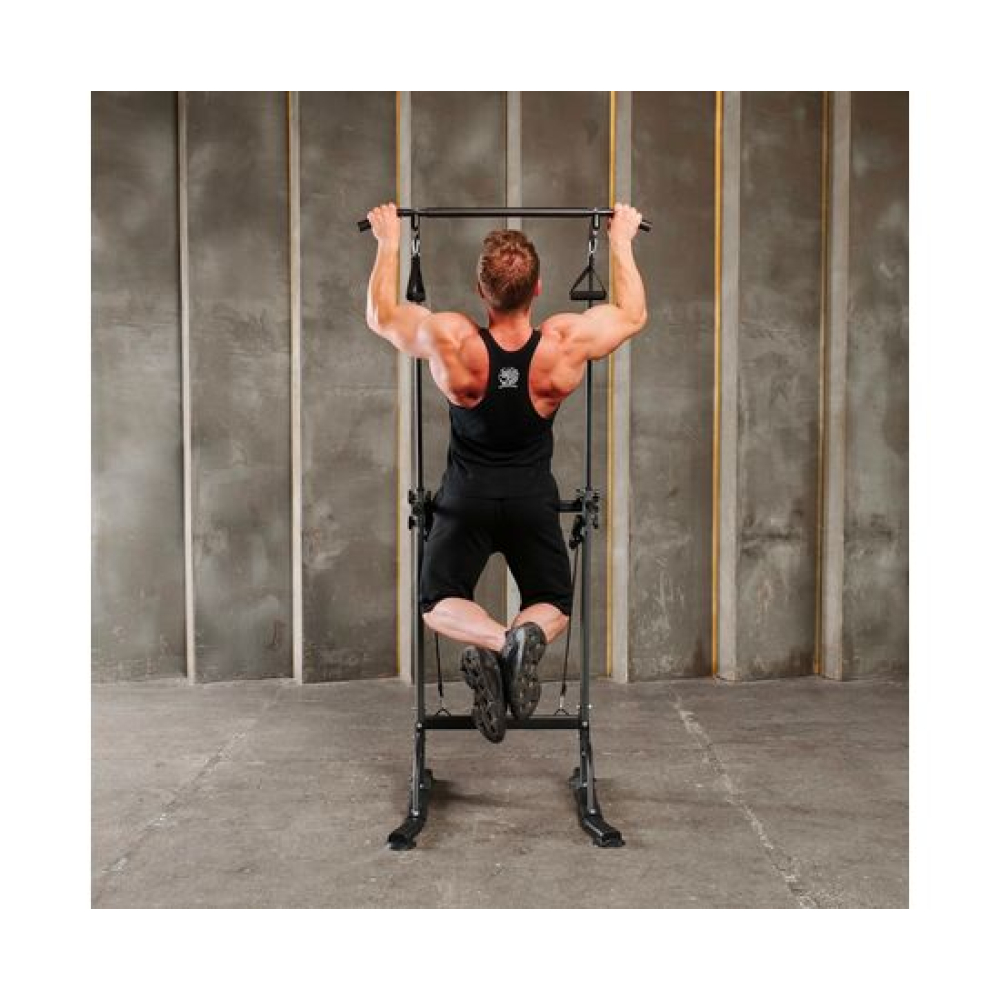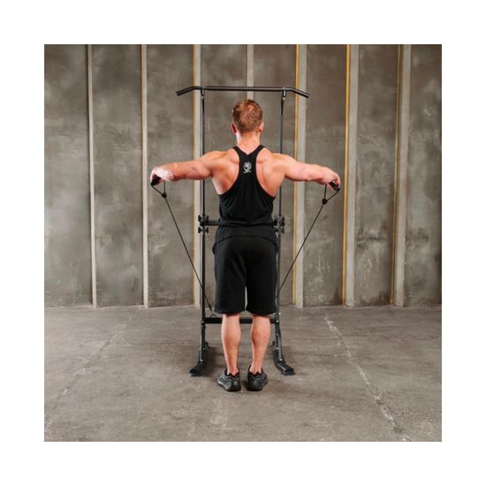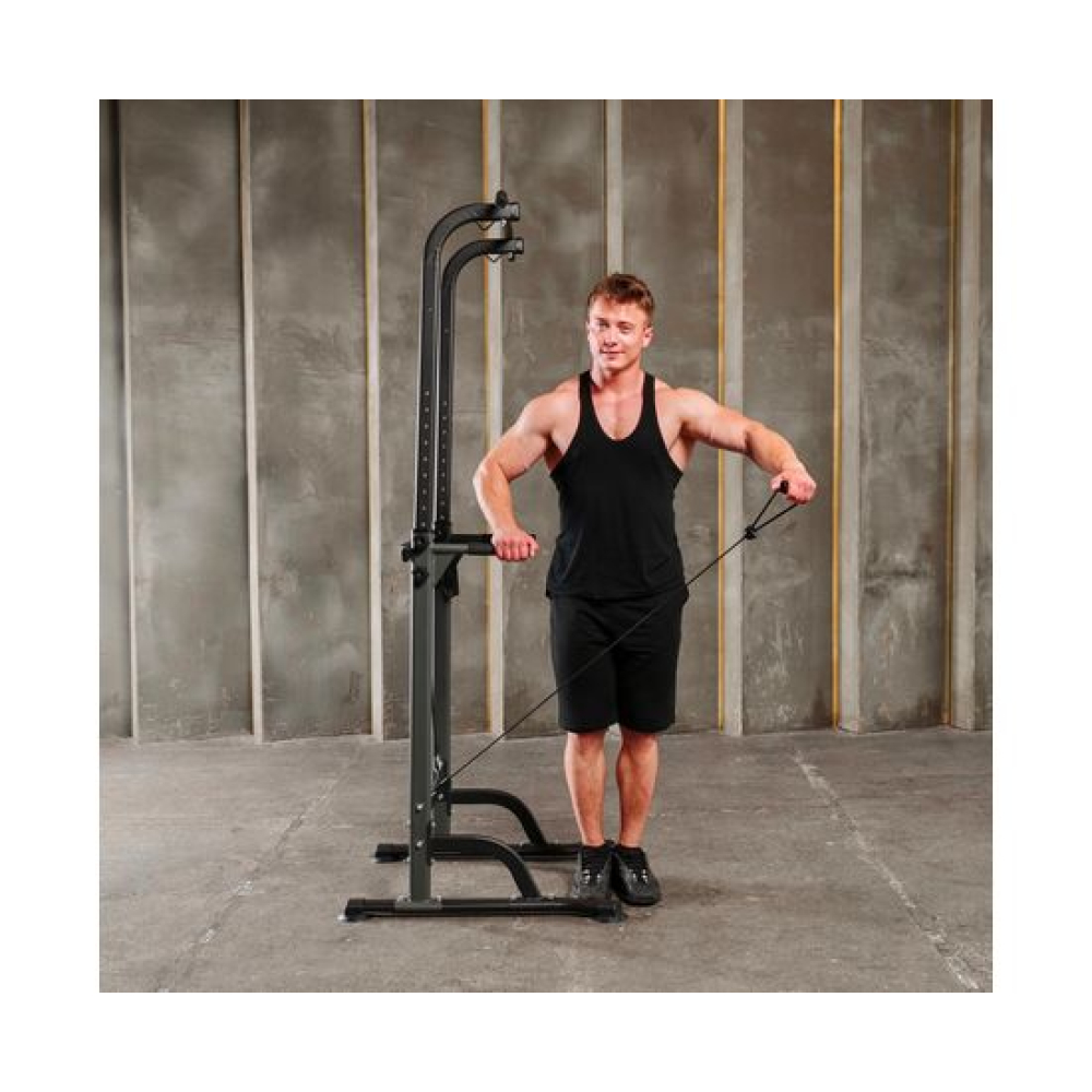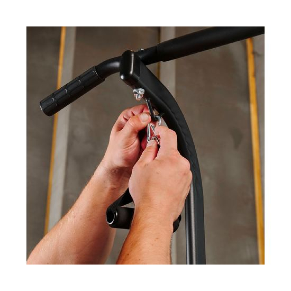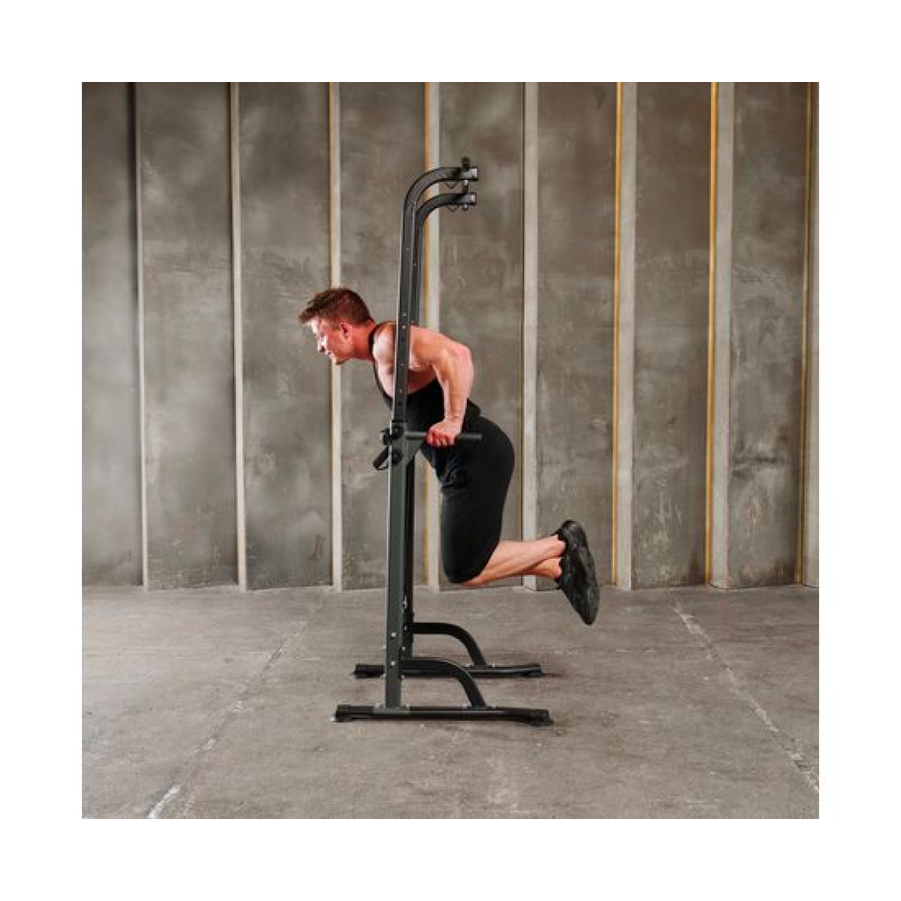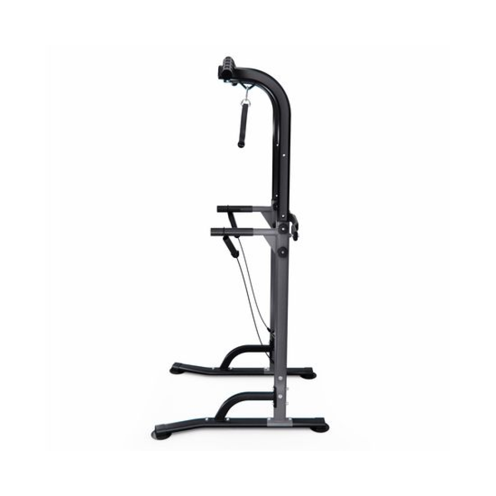 Турник-брусья DFC G007G серого цвета позволяет выполнять упражнения на разные группы мышц. Вес пользователя не должен превышать 120 килограмм.Регулируемая высота турника позволяет заниматься пользователям разного роста в диапазоне от 165 до 210 сантиметров. 10 уровней регулировки обеспечивают точную настройку высоты для максимального комфорта и эффективности тренировок.Профиль рамы изготовлен из прочного стального сплава и имеет размеры 60х30х1,0 мм, что обеспечивает надежность и долговечность конструкции.В комплект поставки входят 2 ручки и 2 эспандера, которые позволяют разнообразить тренировки и увеличить их эффективность. Ручки обеспечивают удобный хват, а эспандеры способствуют укреплению мышц рук, плеч и спины.