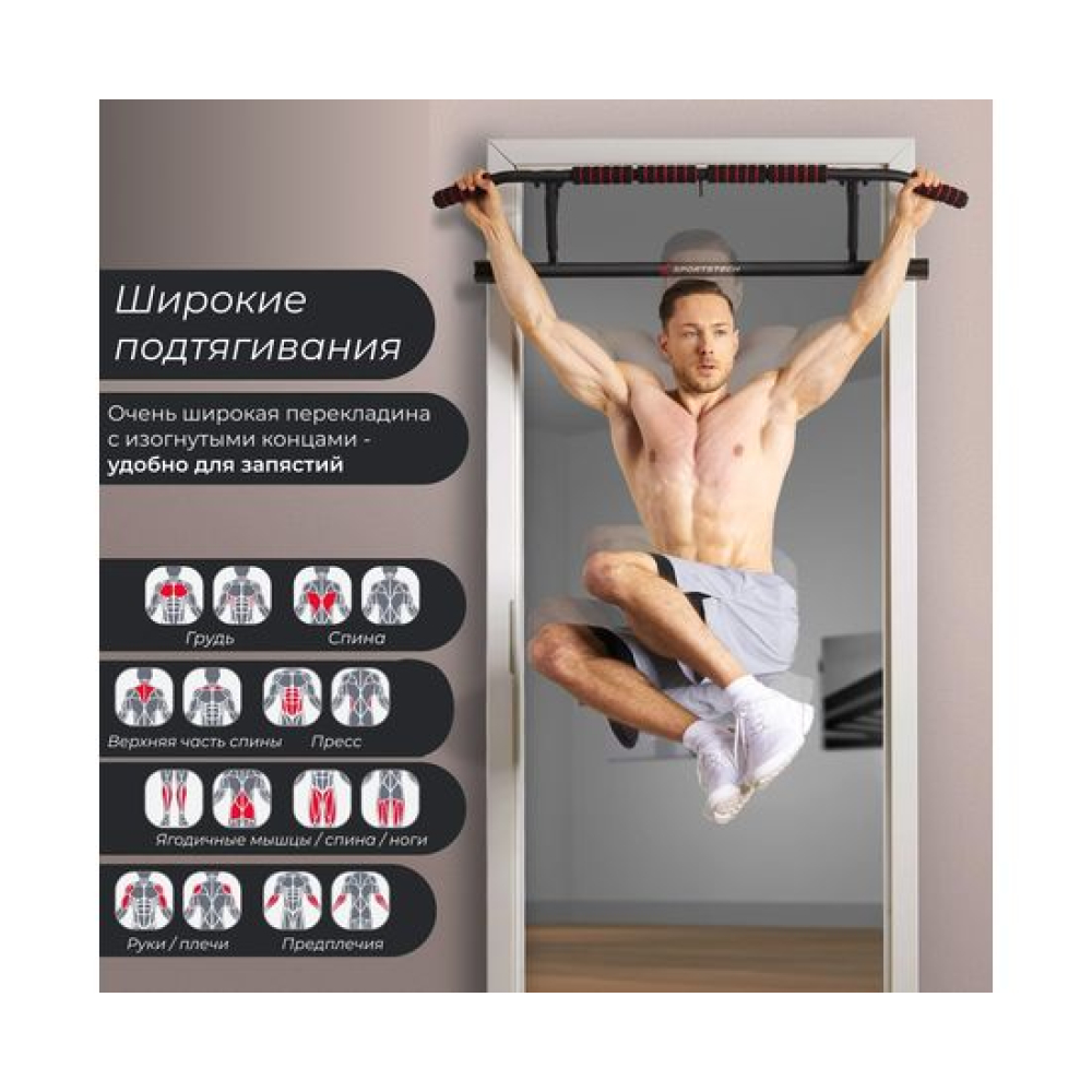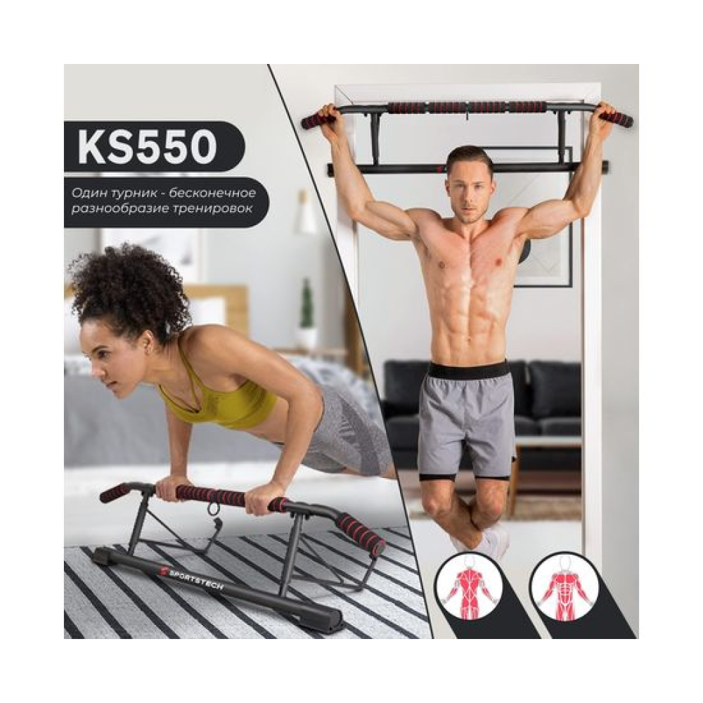 Турник дверной DFC SPORTSTECH KS550 — инновационное и универсальное оборудование для домашних тренировок, сочетающее функциональность, компактность и современные решения.Модель рассчитана на максимальный вес пользователя 130 кг. Конструкция выполнена из прочной высокоуглеродистой стали с элементами из пены и полипропилена, что обеспечивает долговечность и комфорт при регулярных тренировках. Турник оснащён широкой перекладиной с наклонными концами ручек, которые повышают эргономичность, снижают нагрузку на суставы и делают занятия более безопасными и естественными.Благодаря интеллектуальным функциям и продуманной конструкции, турник подходит не только для подтягиваний или отжиманий, но и для использования с дополнительным оборудованием. Встроенная проушина позволяет закрепить петлевой тренажёр, боксерскую грушу, тяговые канаты или эспандеры, что делает тренировки разнообразными и эффективными.Турник дверной DFC SPORTSTECH KS550 — это современный, складной и компактный турник, который объединяет в себе множество возможностей для силовых и функциональных тренировок. Он прост в установке, устойчив в использовании и станет идеальным решением для полноценного спортивного зала прямо у вас дома.Гарантия на детали подверженные естественному износу в процессе эксплуатации — до 6 месяцев с момента установки тренажера при условии регулярного планового ТО. Важно: гарантия не распространяется на преждевременный износ из-за чрезмерной эксплуатации тренажера.