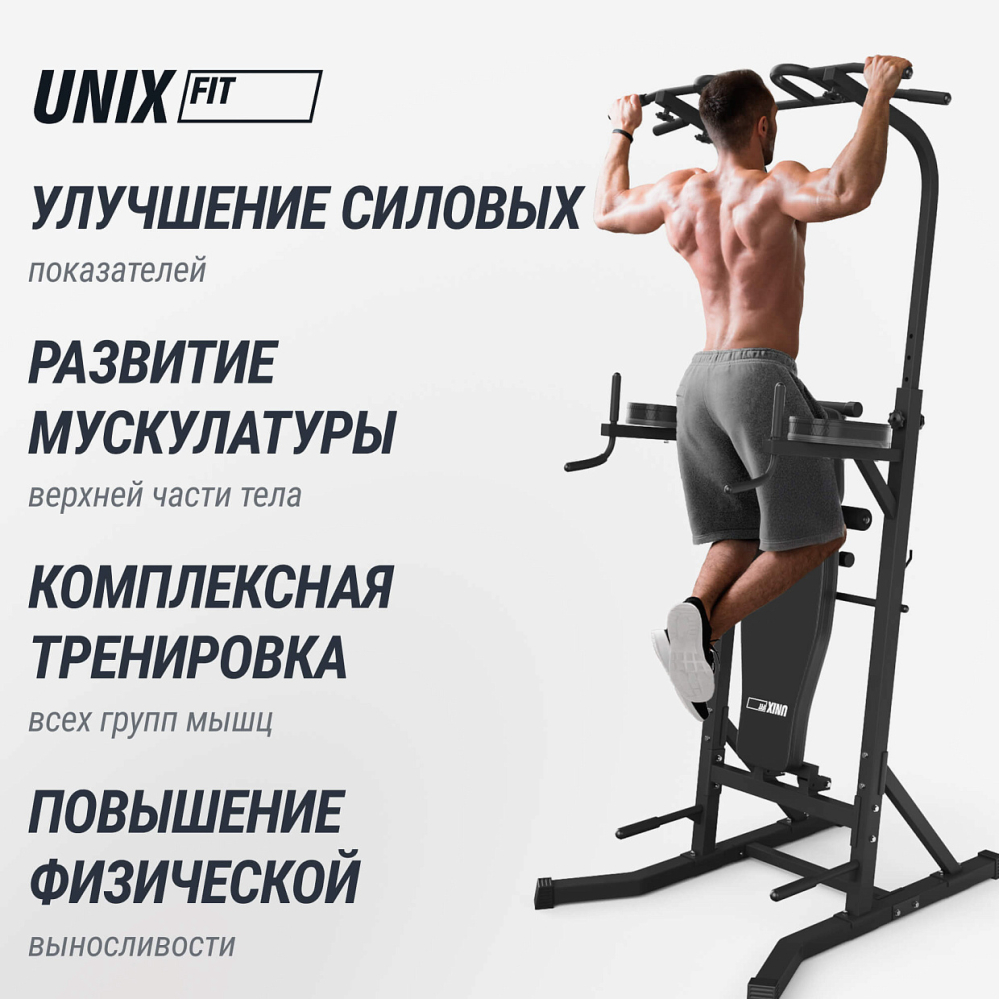 Турник-пресс-брусья со скамьей UNIX Fit POWER TOWER 150P