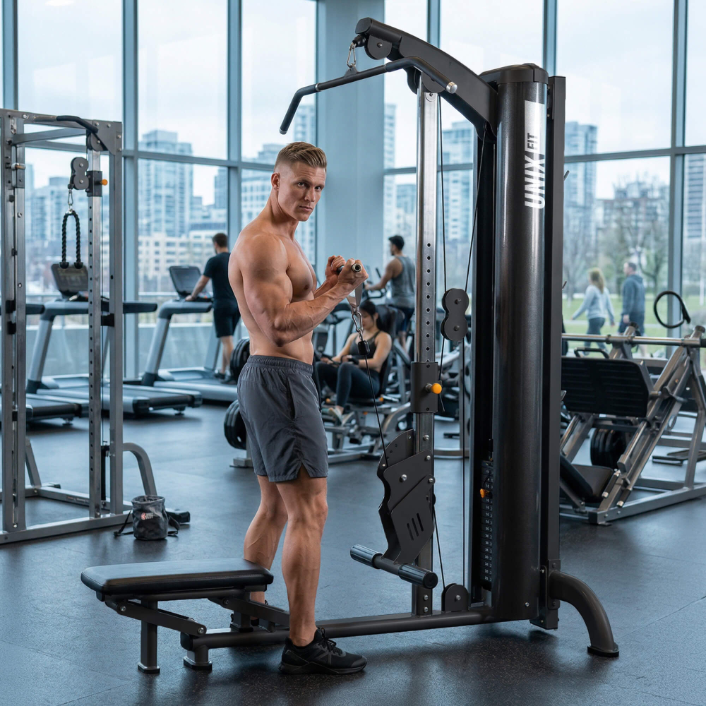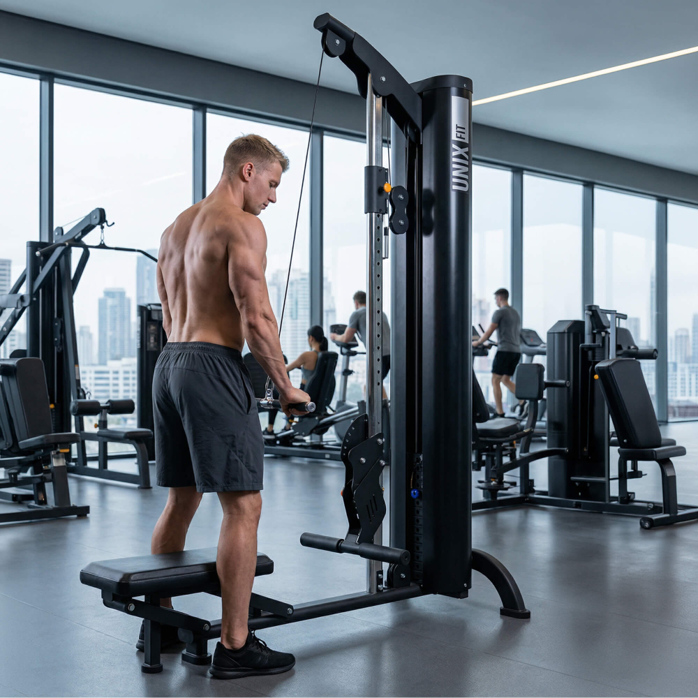 Коммерческий тренажер тяга универсальная вертикальная/горизонтальная UNIX Fit 100 PRO (UC-9901) предназначен для профессиональных занятий спортом в фитнес-клубах. Мультифункциональность конструкции делает это оборудование идеальным выбором для комплексного развития мышечной силы и повышения общей выносливости организма. Этот блочный силовой тренажер позволяет проводить эффективные тренировки нескольких групп мышц благодаря уникальной комбинации вертикальных и горизонтальных (имитация гребли) тяговых механизмов. Профессиональный грузоблочный механизм обеспечивает плавность хода и оптимальное сопротивление, адаптирующееся под любые индивидуальные потребности спортсменов разных уровней подготовки. Конструкция размером 176 х 81 х 215 см (профиль 100х60х3 мм) прекрасно впишется даже в ограниченное пространство зала. Изготовлен спортивный многофункциональный тренажёр из высокопрочной стали с дополнительным прорезиненным покрытием, что гарантирует долгий срок службы и устойчивость к повреждениям. Удобство эксплуатацииПодвижное регулируемое сиденье легко и быстро настроить под нужный тип упражнения. Материал изготовления сиденья — высококачественный пеноматериал повышенной плотности и искусственная кожа «Личи» толщиной 1,3 мм. Индивидуальная настройка под рост и стиль тренировки: можно легко выставить нужную высоту рукоятки под свои параметры и выбранный тип упражнений. Разнообразие хватовШирокий выбор вариантов хвата рукоятей, включая прямой, обратный, широкий и узкий захват, расширяет диапазон возможных упражнений, предоставляя гибкость выбора подходов для проработки различных мышечных зон (бицепсы, трицепсы, ягодицы, икры, грудные мышцы, дельты, бицепс бедра, квадрицепсы, пресс). Эргономичная настройка короткой рукоятки под оптимальную длину, обеспечивает правильную биомеханику движений. Эффективные тренировкиС помощью UNIX Fit 100 PRO UC-9901 посетители вашего клуба смогут качественно и быстро прогрессировать, развивая следующие ключевые аспекты физического состояния:- Укрепление и развитие мышц спины и плечевого пояса;- Улучшение осанки и координации движений;- Повышение силовых показателей и улучшение общего самочувствия;- Поддержка процесса жиросжигания и создание рельефа тела. Данный тренажер для укрепления рук и спины идеально подходит новичкам и опытным спортсменам, обеспечивая постепенный рост нагрузок и вариативность упражнений для поддержания постоянного прогресса. Тяга универсальная вертикальная/горизонтальная 100 PRO станет отличным дополнением любого фитнес-клуба. Его разнообразие функциональных возможностей позволяют создавать комплексные программы тренировок, подходящие людям с разным уровнем физической подготовки. Этот универсальное оборудование гарантированно привлечет внимание посетителей клуба, помогая им достигать поставленных целей быстрее и эффективнее!Инвестируйте в успех своего бизнеса вместе с Unix Fi