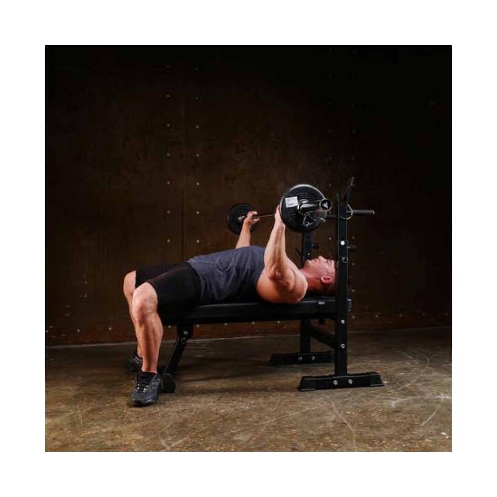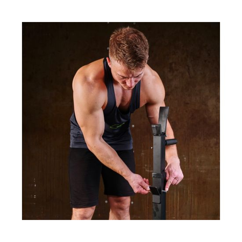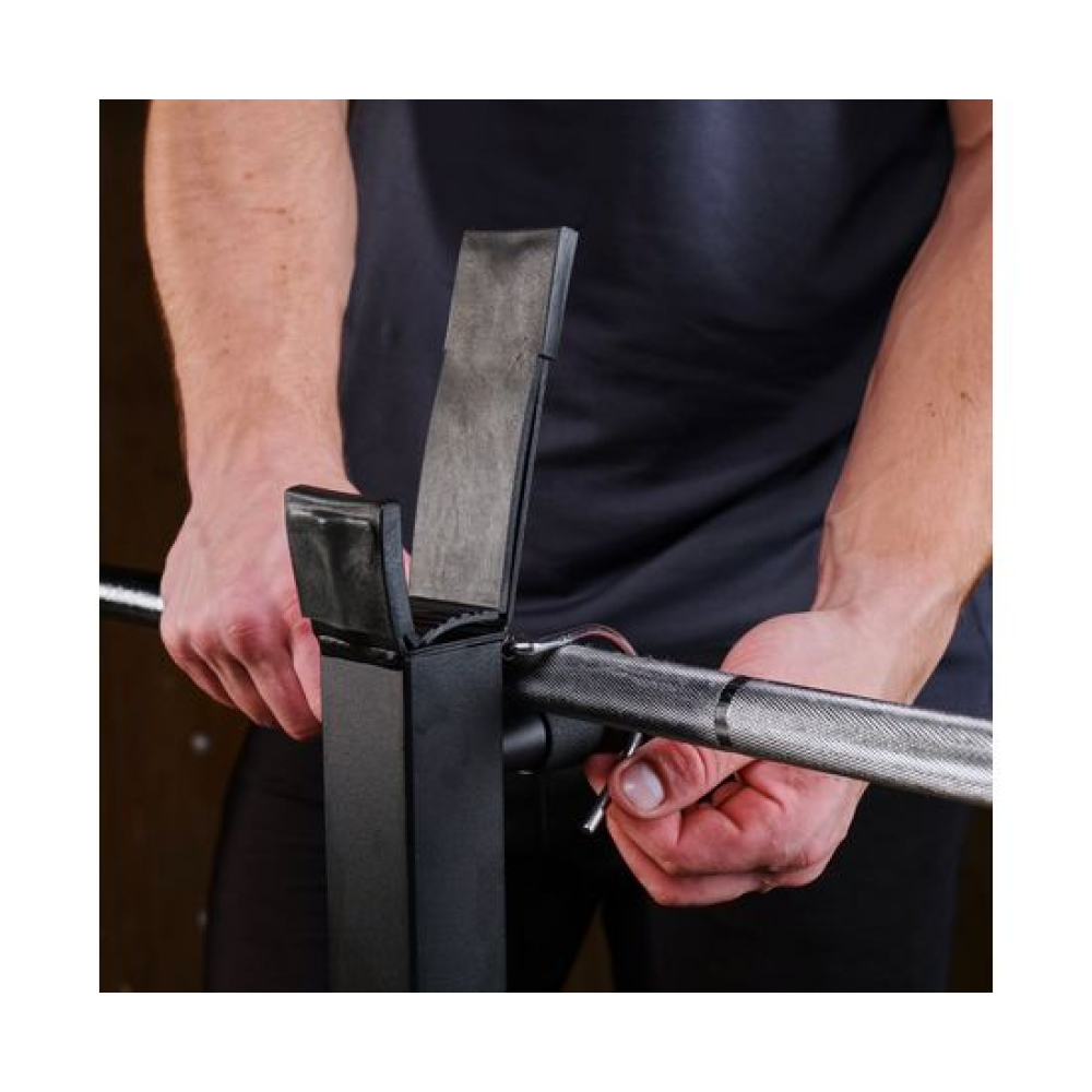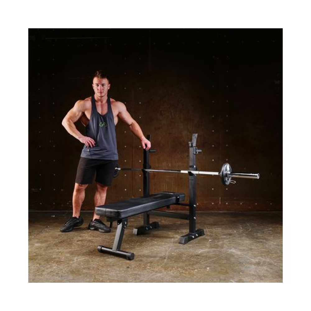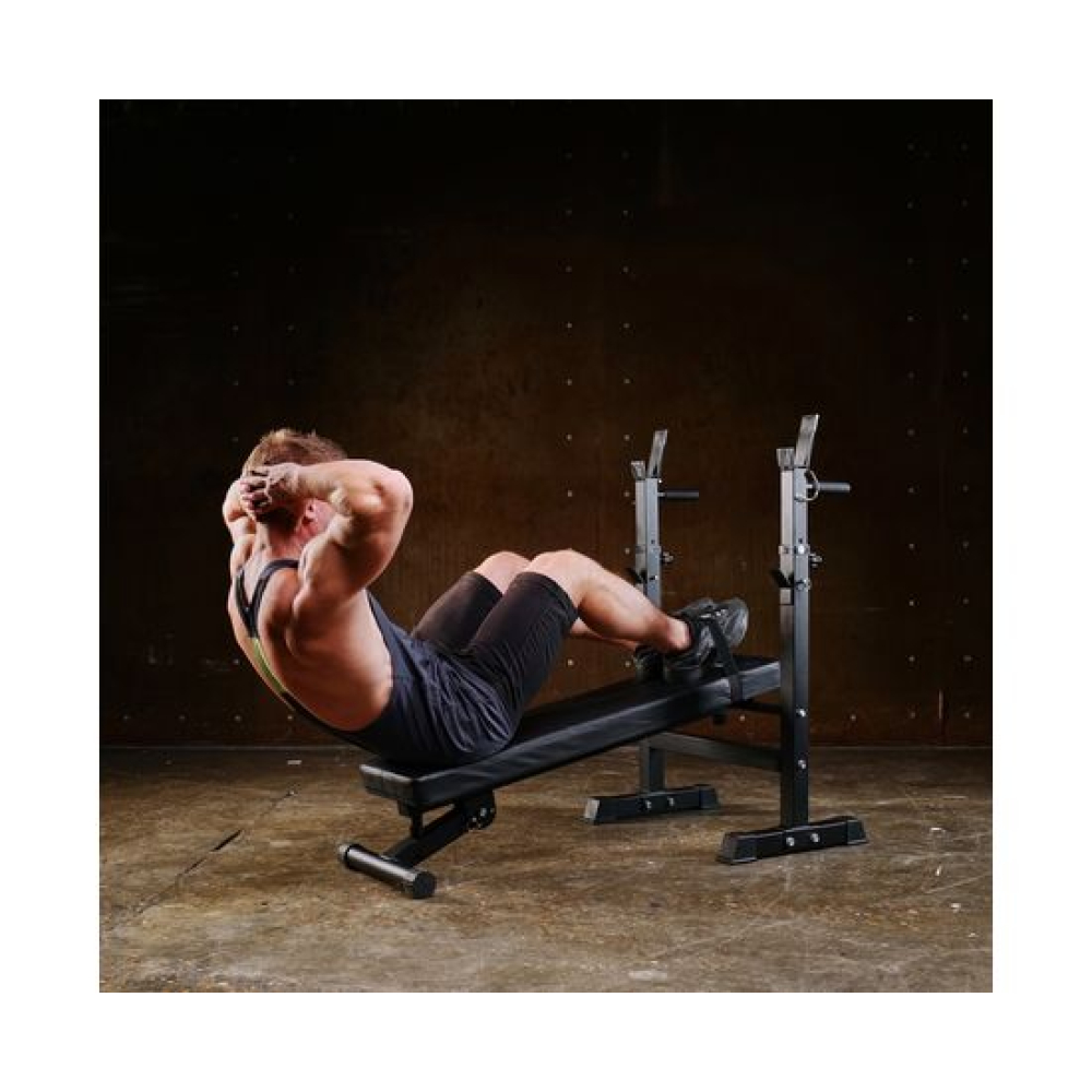 Скамья со стойками под штангу DFC MELKIN — идеальное решение для домашних тренировок! Благодаря складной конструкции и максимальной нагрузке до 200 кг, вы сможете выполнять разнообразные упражнения: на пресс, отжимания на брусьях и подъём штанги. Нагрузка на брусья — 100 кг, а на стойки — 150 кг. Профиль рамы выполнен из высококачественного металла размером 50 x 50 x 1,5 мм.Угол наклона скамьи регулируется на 3 уровня, а в комплекте идёт ремень для фиксации стоп. Благодаря этому ремешку вам будет гораздо комфортнее делать упражнения на пресс такие, как: скручивания и подъём корпуса – ноги будут надёжно зафиксированы ремнём.Регулировка стоек по высоте возможна на 5 уровней с диапазоном от 98 до 118 см от пола до верха стоек. Внутреннее расстояние между стойками составляет 52,5 см, а внешнее – 62,5 см, между брусьями — 54 см, а с внешней стороны – 59,5 см.В конце тренировки скамья компактно складывается, занимая по длине менее 50 см – её можно убрать к стене, либо в шкаф.