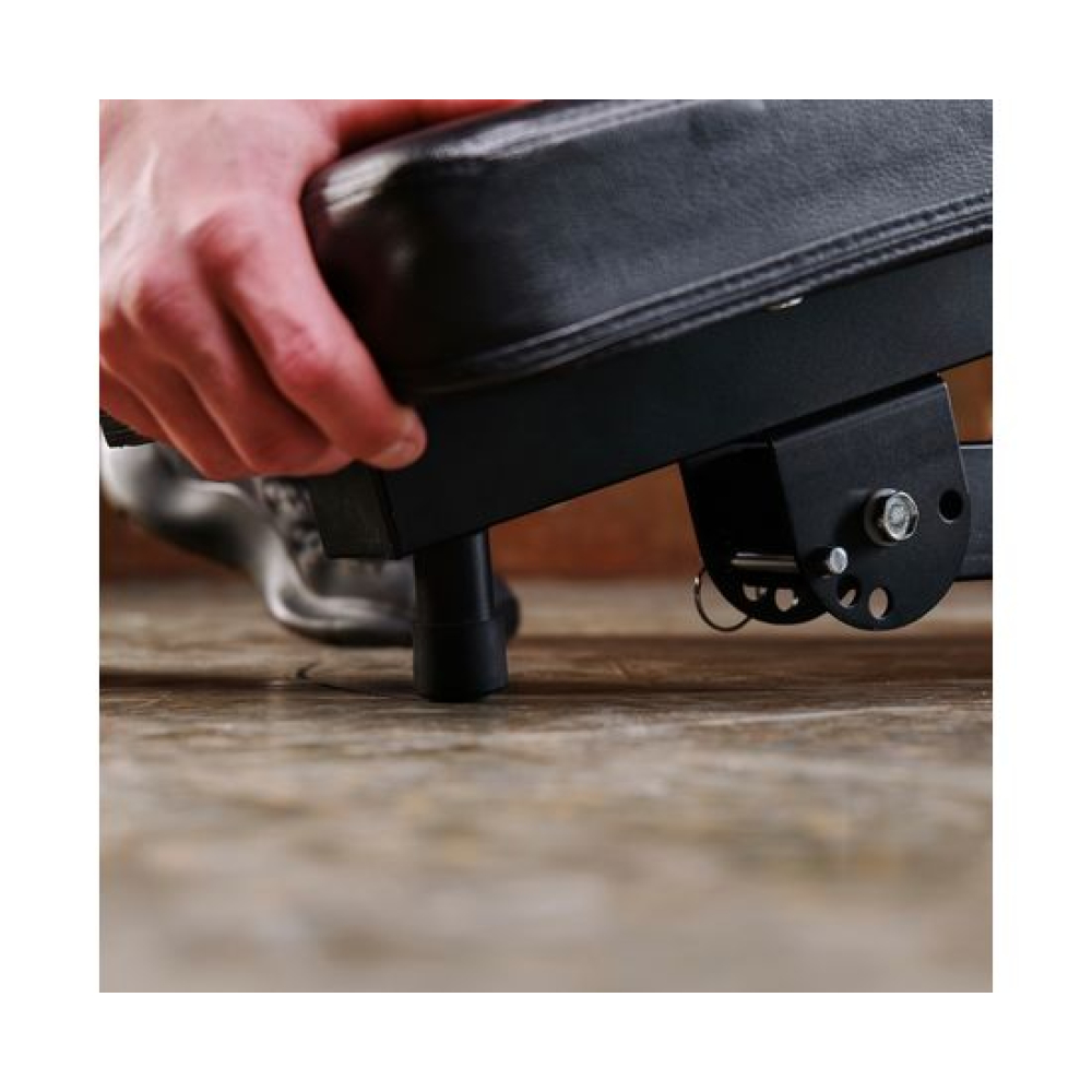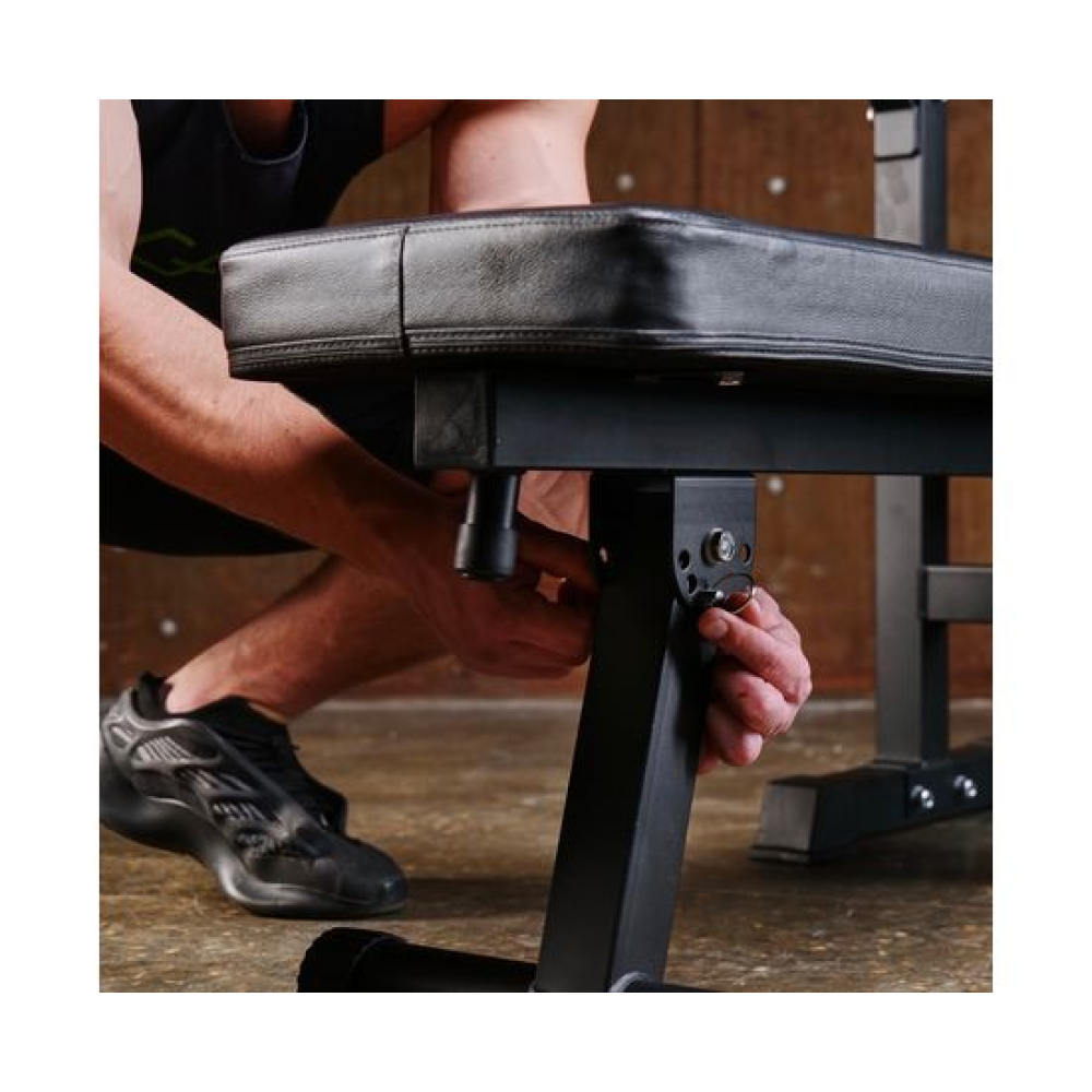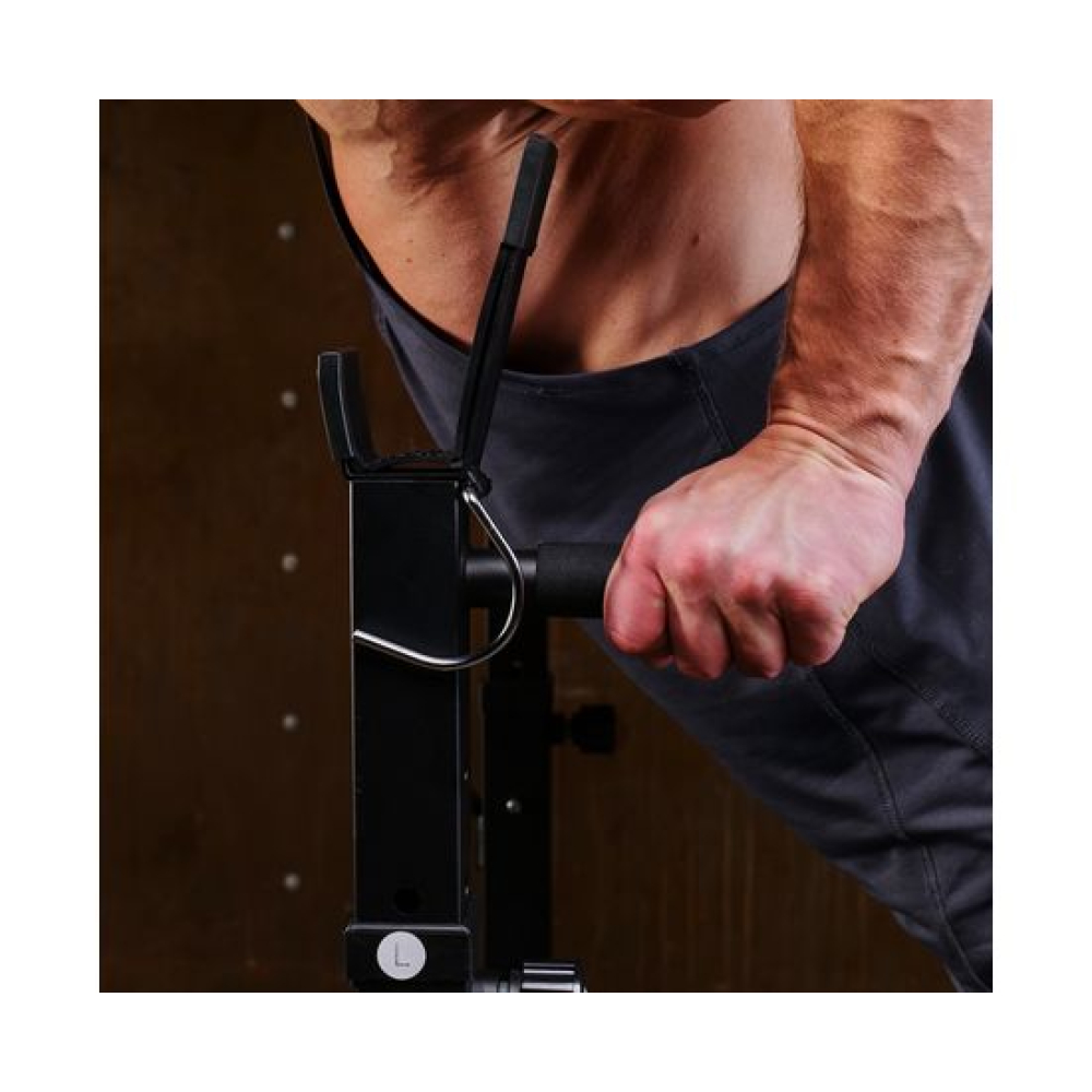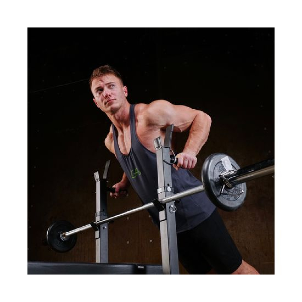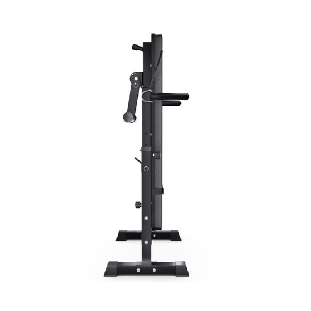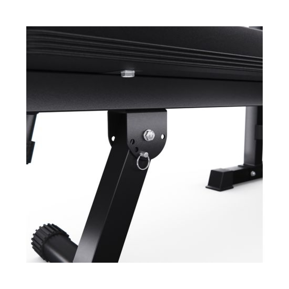 Скамья со стойками под штангу DFC MELKIN — идеальное решение для домашних тренировок! Благодаря складной конструкции и максимальной нагрузке до 200 кг, вы сможете выполнять разнообразные упражнения: на пресс, отжимания на брусьях и подъём штанги. Нагрузка на брусья — 100 кг, а на стойки — 150 кг. Профиль рамы выполнен из высококачественного металла размером 50 x 50 x 1,5 мм.Угол наклона скамьи регулируется на 3 уровня, а в комплекте идёт ремень для фиксации стоп. Благодаря этому ремешку вам будет гораздо комфортнее делать упражнения на пресс такие, как: скручивания и подъём корпуса – ноги будут надёжно зафиксированы ремнём.Регулировка стоек по высоте возможна на 5 уровней с диапазоном от 98 до 118 см от пола до верха стоек. Внутреннее расстояние между стойками составляет 52,5 см, а внешнее – 62,5 см, между брусьями — 54 см, а с внешней стороны – 59,5 см.В конце тренировки скамья компактно складывается, занимая по длине менее 50 см – её можно убрать к стене, либо в шкаф.