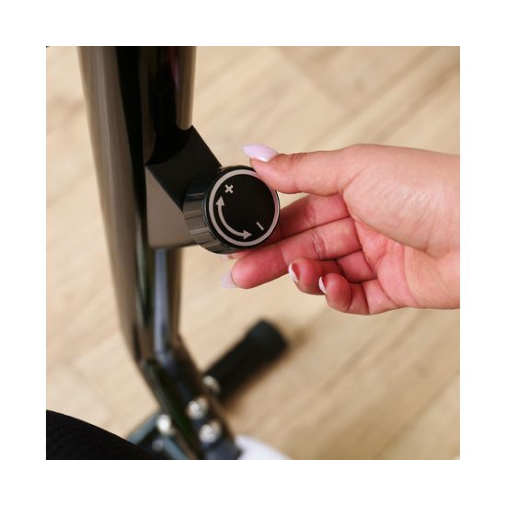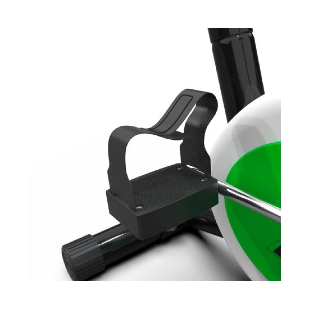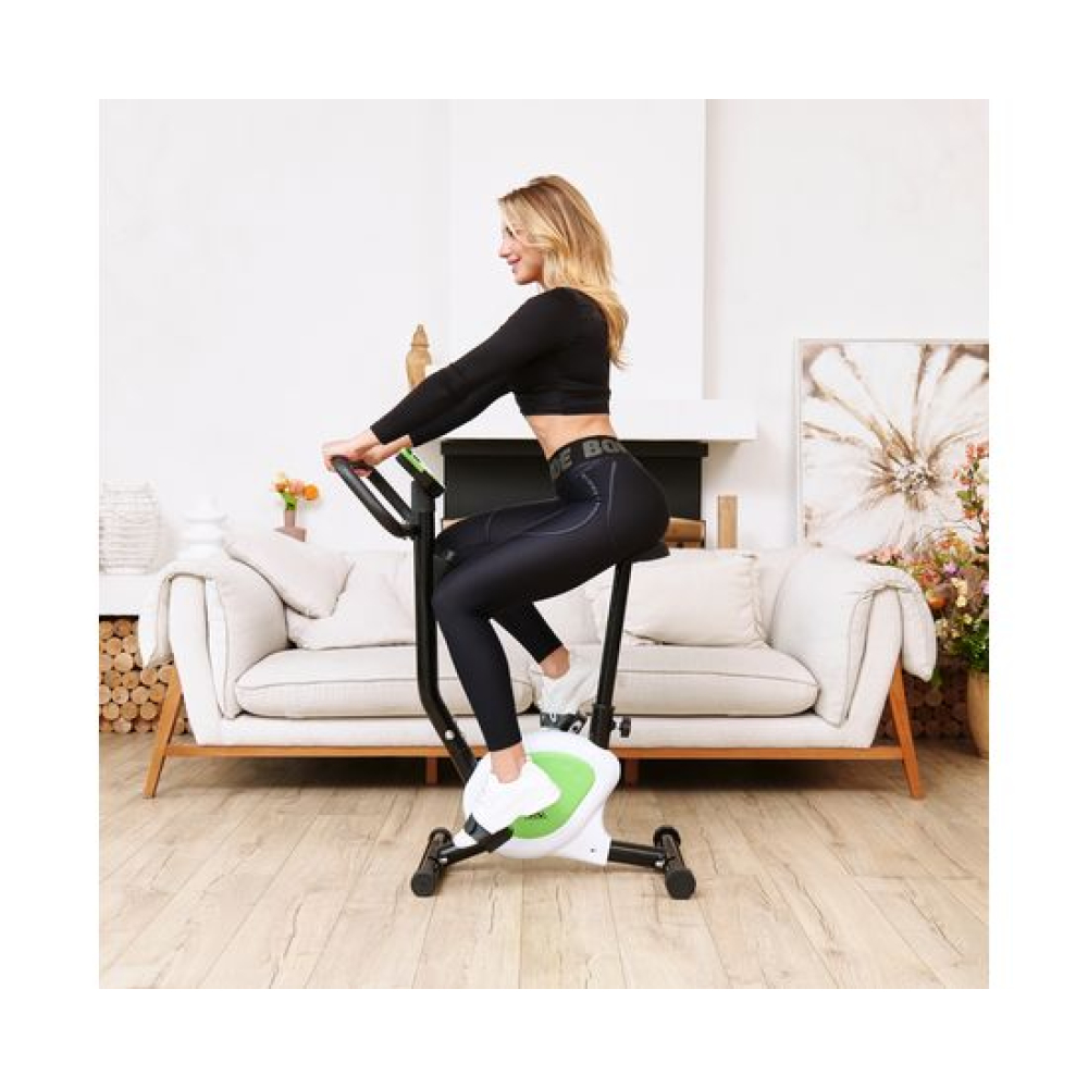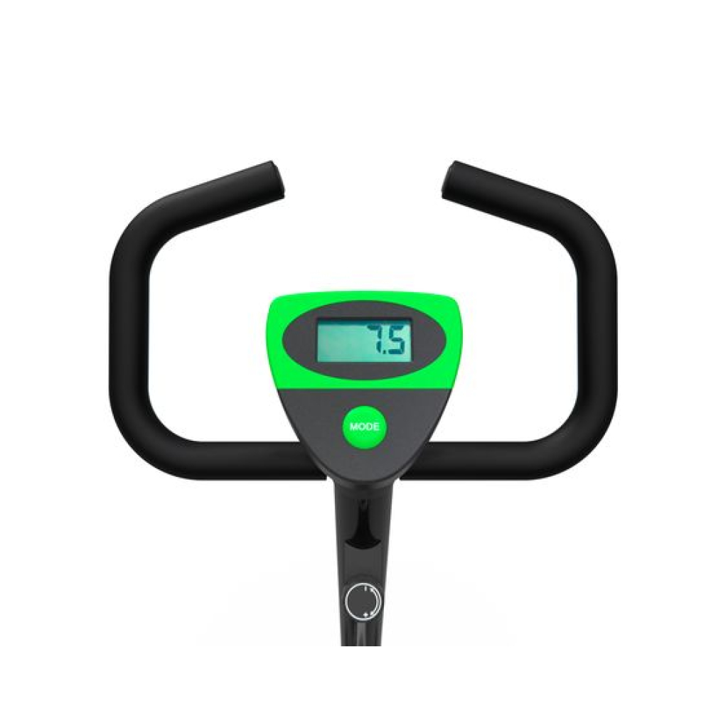 Домашний тренажер начального уровня подготовки для всей семьи. Модель с вертикальной посадкой и ременной системой нагружения. Ручная регулировка уровня нагрузки с помощью ручки на стойке тренажера. У регулятора нет фиксированных положений, выбираете необходимую нагрузку в диапазоне min / max.Большое комфортное сидение регулируется по высоте и позволяет подобрать удобную посадку для тренировки. Педали с регулируемые ремнями.Компьютер с LCD дисплеем и кнопками управления отображает необходимые параметры тренировки: скан, скорость, время, дистанция, калории.На тренажере нет датчиков пульса. Для определения частоты сердечных сокращений (ЧСС) рекомендуем использовать нагрудный кардиопояс с часами - монитором, модель DFC W117 (опция, приобретается отдельно).Модель не требует специальных знаний для самостоятельной сборки.