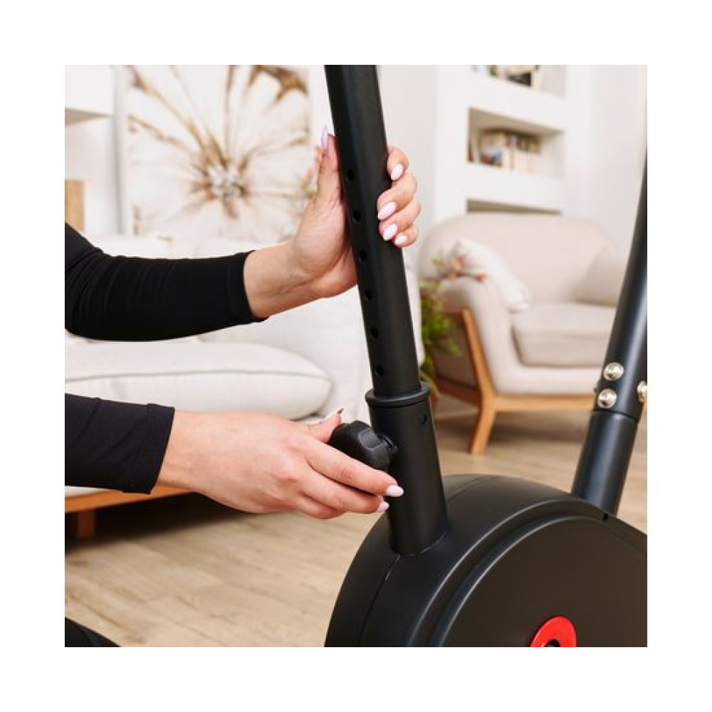 DFC B-300 PRO - это велотренажер для эффективной тренировки дома. Он представляет собой компактный и удобный тренажер, который поможет улучшить состояние сердечно-сосудистой и дыхательной систем. Модель представлена для российского и французского рынков.Велотренажер имеет регулируемое положение сидения по вертикали на 5 уровней. Сенсорные датчики позволяют мгновенно измерять пульс, обеспечивая эффективность тренировок. Электронная система нагружения, встроенные программы, адаптер в комплекте.Благодаря инерционному маховику массой 6 кг с двойным направлением, пользователь может крутить педали в обе стороны. Велосипед имеет 16 уровней нагрузки, а регулировка осуществляется с помощью компьютера. Тренажер обладает 12 предустановленными программами тренировок. Адаптер идет в комплекте. Дополнительными преимуществами тренажера является наличие компенсаторов неровности пола, что позволяет стабилизировать тренажер на любой поверхности. Регулируемые ремни на педалях обеспечивают удобство и безопасность во время тренировок. Кроме того, велотренажер имеет стильную консоль с монохромным дисплеем и синей подсветкой, которая позволяет отслеживать все показатели тренировки. Дисплей показывает такиепараметры, как Время, Скорость, Расстояние, Калории, Обороты в минуту, Пульс, Индекс массы тела и Пробег.Тренировки на велотренажере помогают укрепить мышцы ног, уменьшить вес, повысить выносливость и укрепить сердечно-сосудистую систему. Он является идеальным выбором для тех, кто стремится к здоровому образу жизни и физическому благополучию.