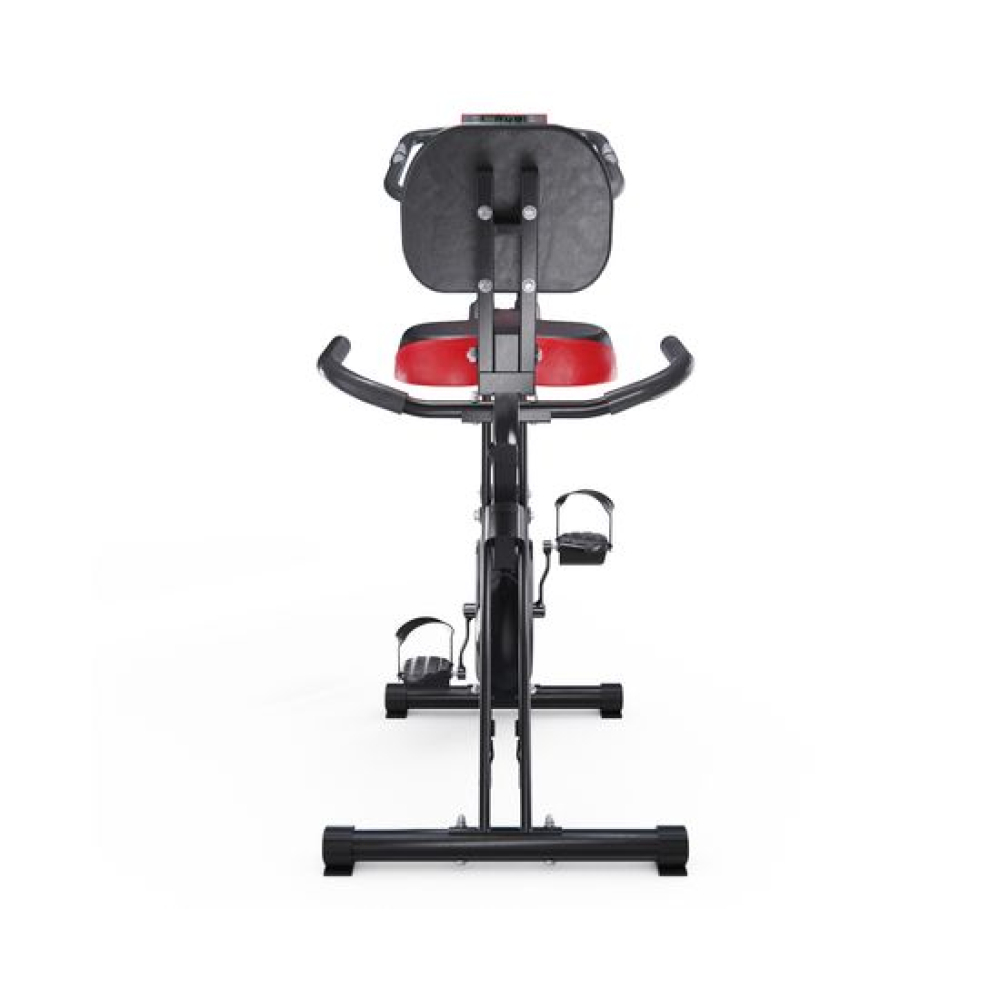 Велотренажёр DFC X-Bike MBB LS623X со спинкой подходит для пользователей весом до 120 килограмм. Он имеет складную конструкцию, что облегчает хранение и транспортировку.С магнитной системой нагрузки и 8 уровнями механической регулировки, вы можете подобрать оптимальный уровень нагрузки для вашей тренировки. Эспандеры для рук включены в комплектацию, чтобы вы могли проработать мышцы верхней части тела.На поручнях находятся сенсорные датчики пульса, которые позволяют контролировать ваш сердечный ритм во время тренировки. Монохромный ЖК-дисплей показывает время, скорость, пройденное расстояние, сожженные калории, одометр и ваш пульс. Для работы дисплея требуются две батарейки типа “AA” или “AAA”, которые не входят в комплект. Батарейки устанавливаются в задний отсек консоли.